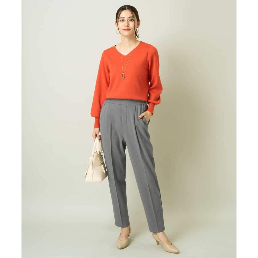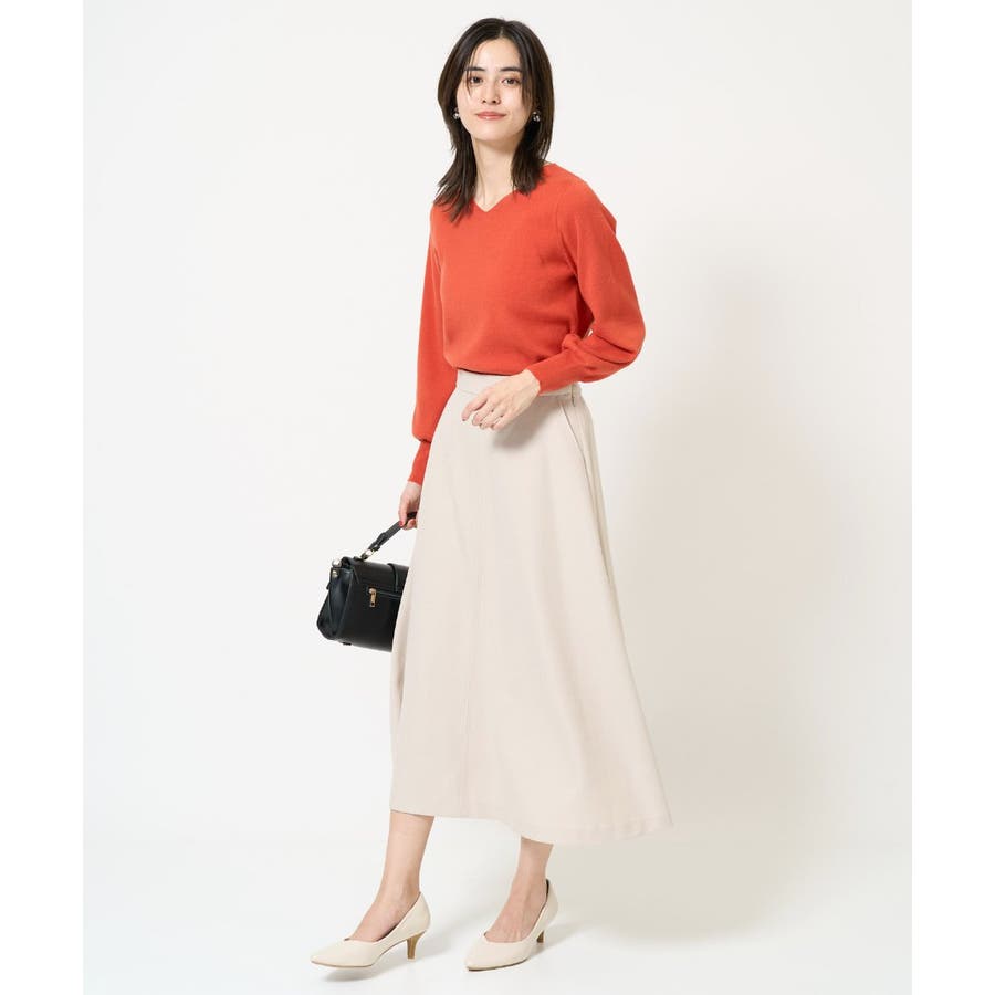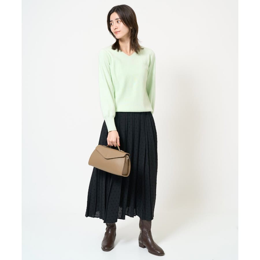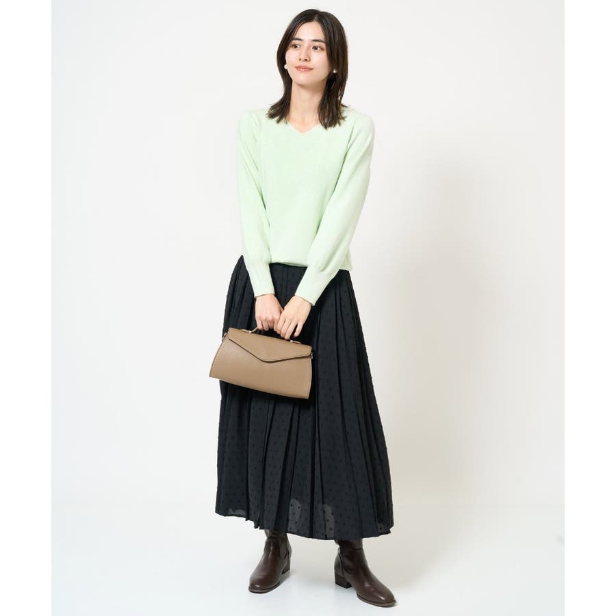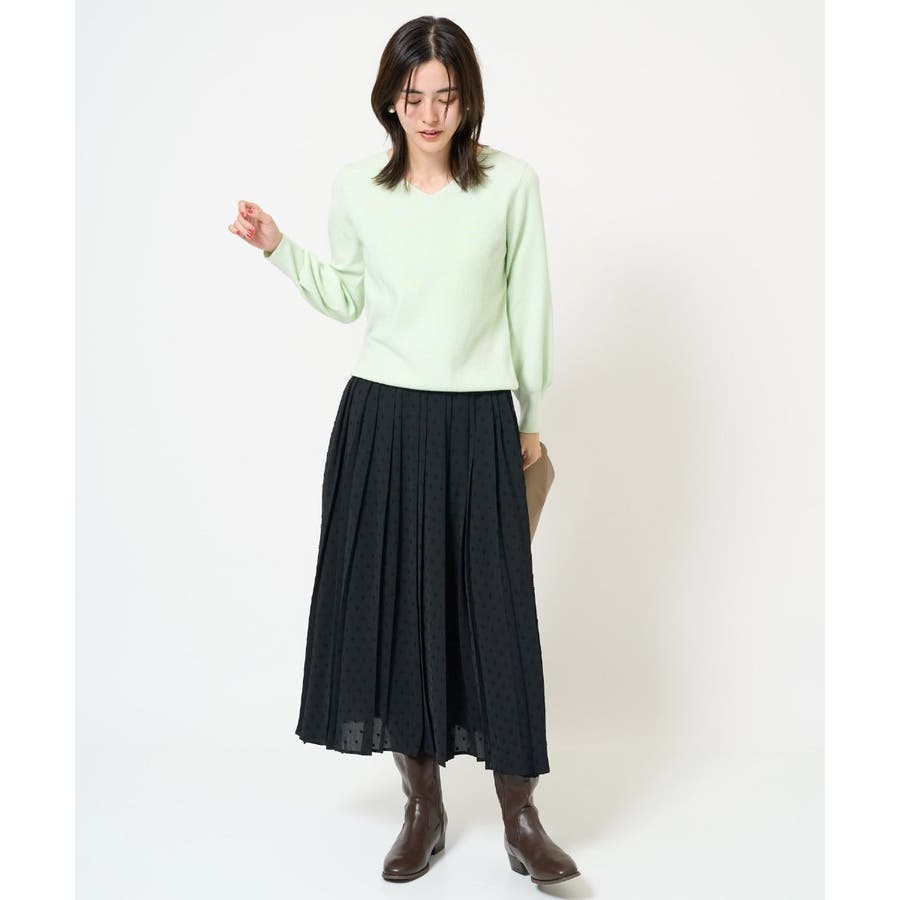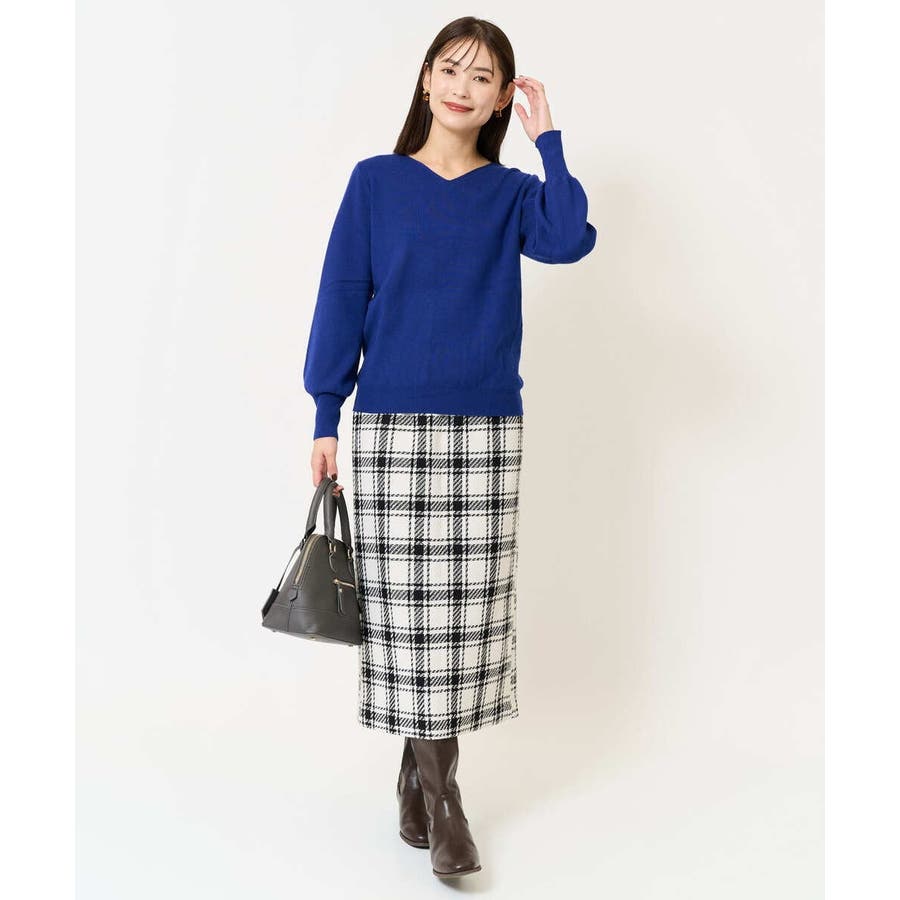 同素材カーディガンやスカートとのアンサンブルスタイルは