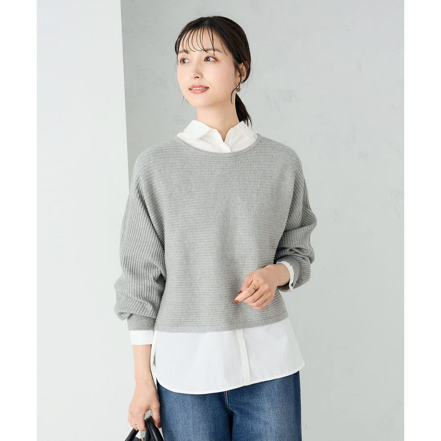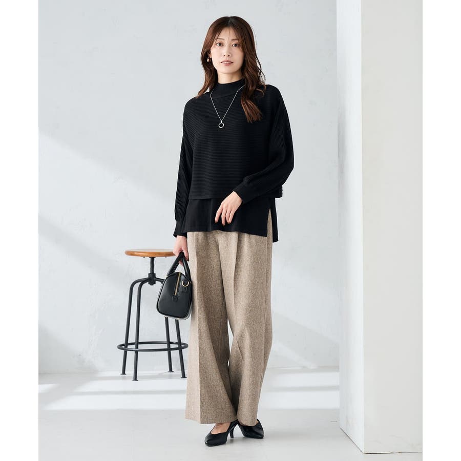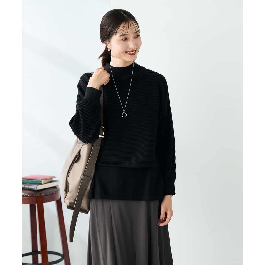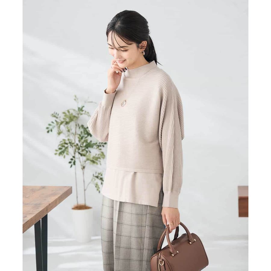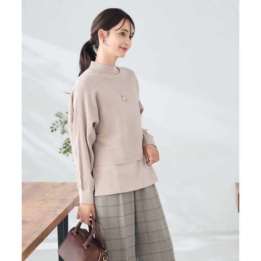 ・フラットな表面感のベストと横畝のプルオーバーのレイヤードで洒落見え