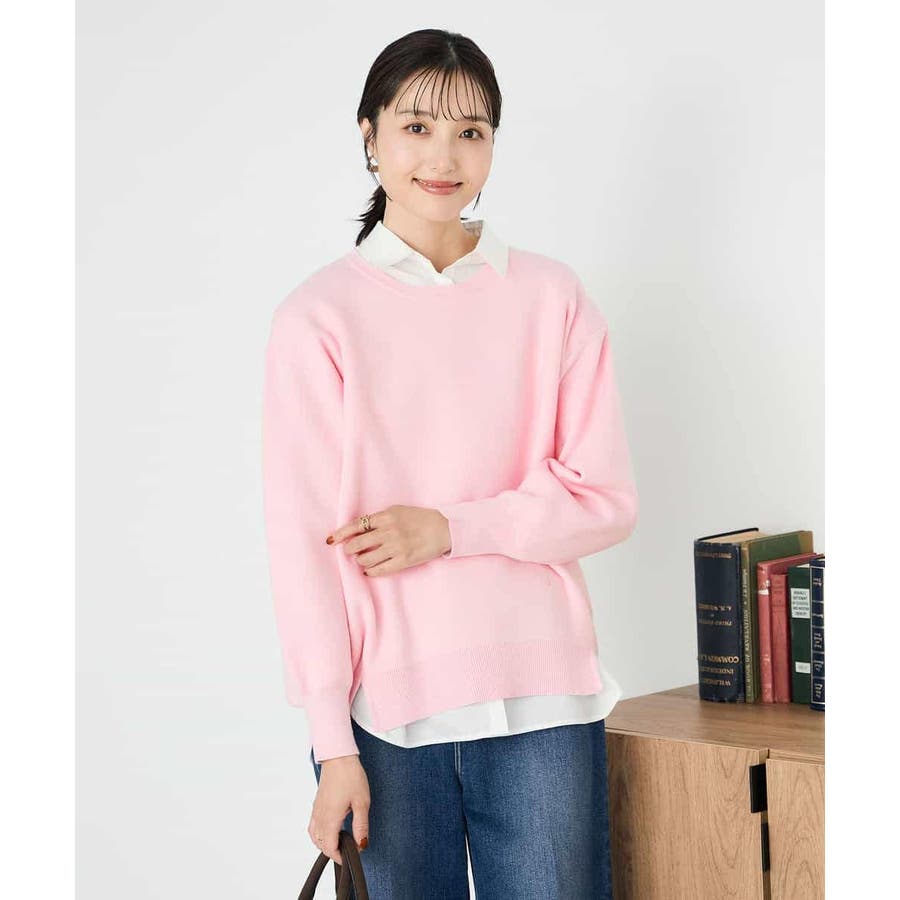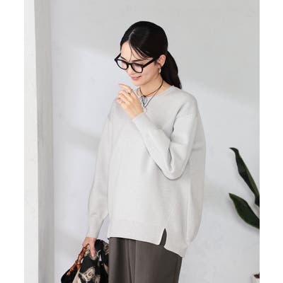 ・脇線を前にふったイレヘムデザインがアクセントになったスウェット見えニット
