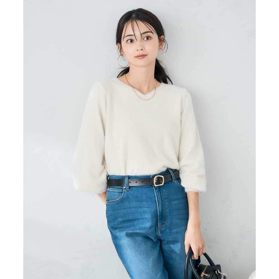 ふわふわ素材×上品ラメで、ボトム問わずきれいめスタイルに仕上がります。