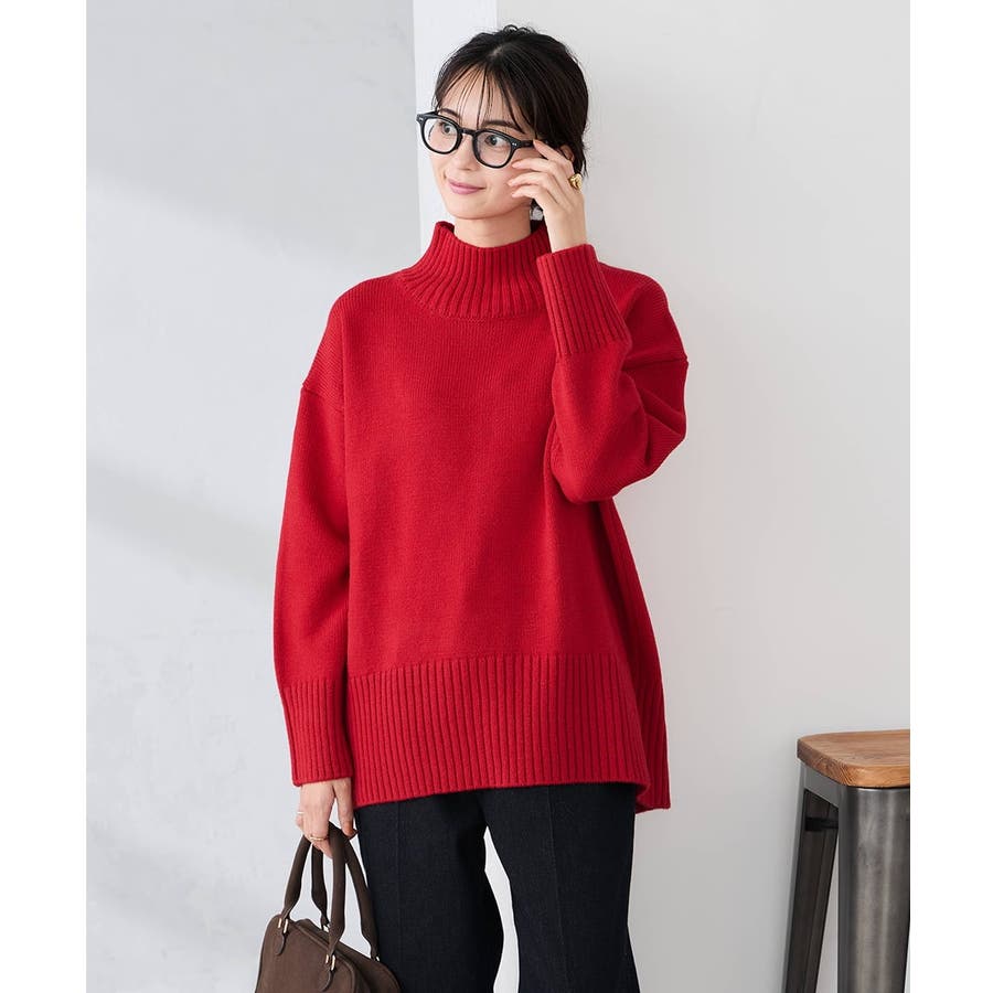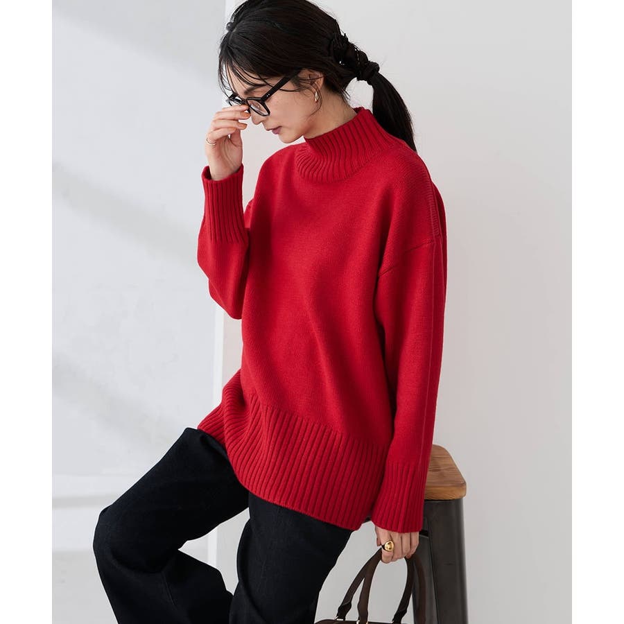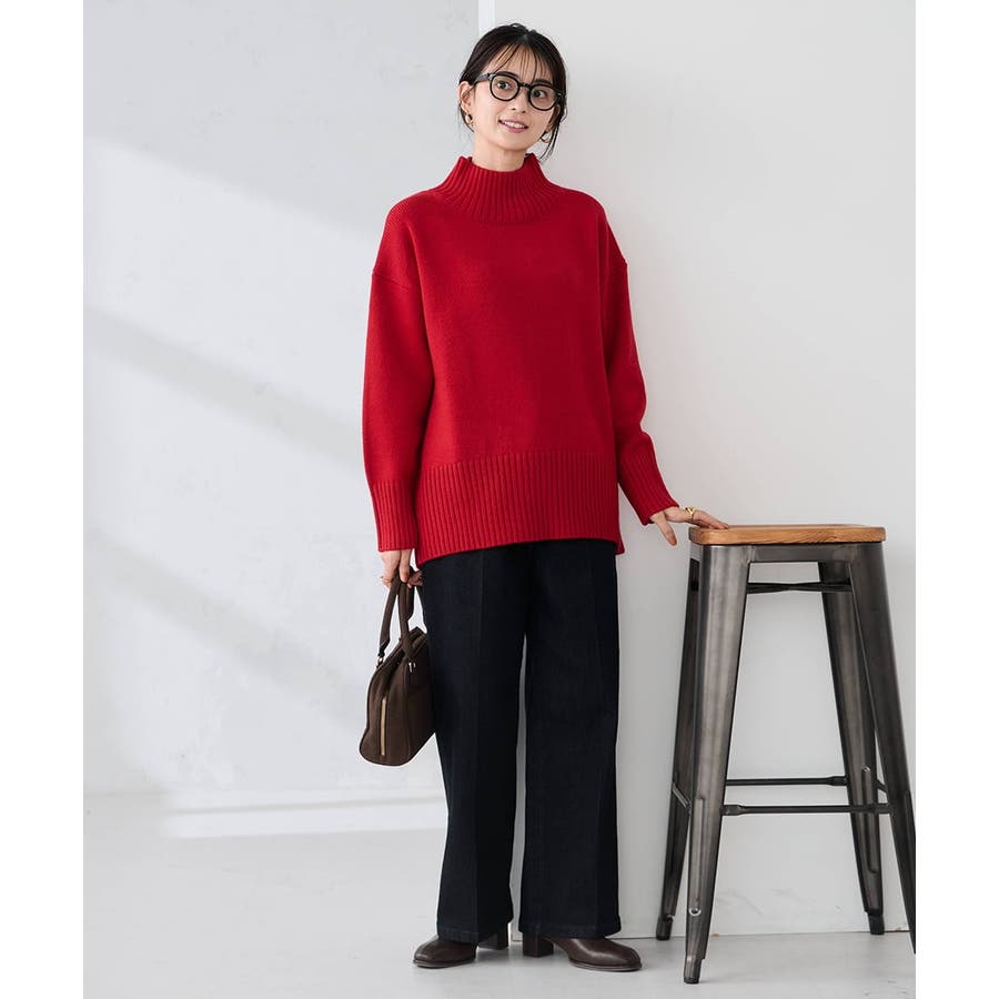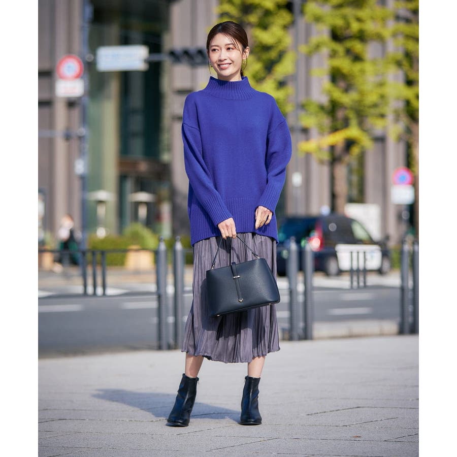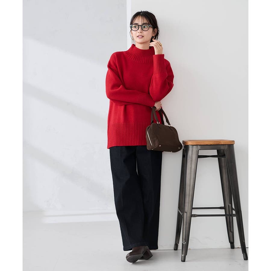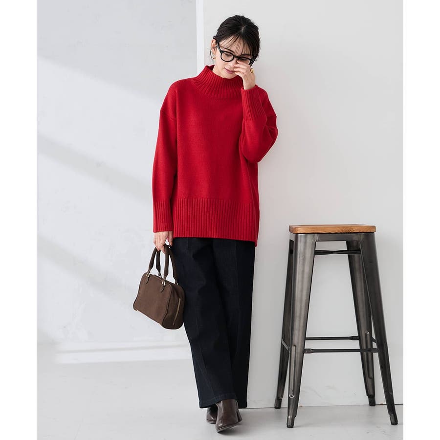 カラーニットはアウターインでも映えて、スタイリングの幅が広がります。