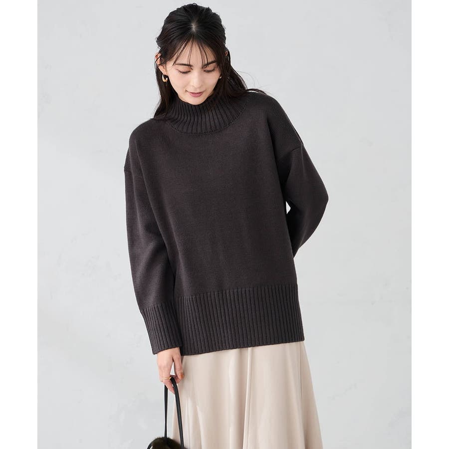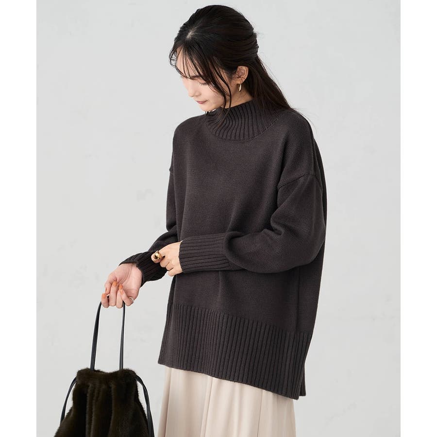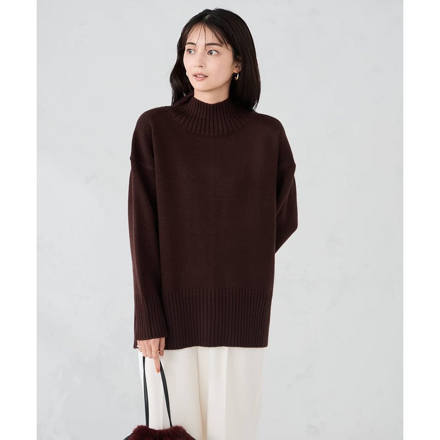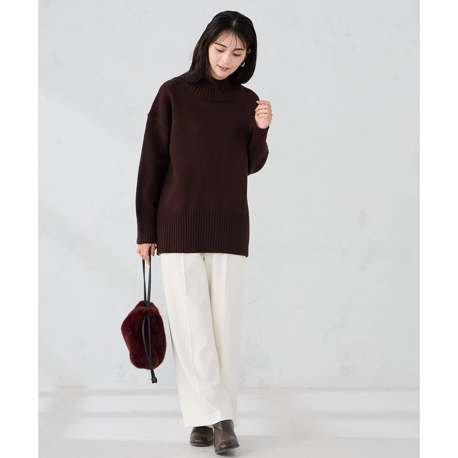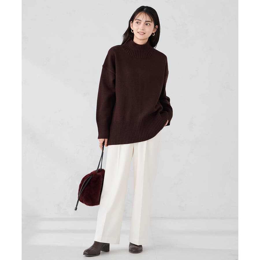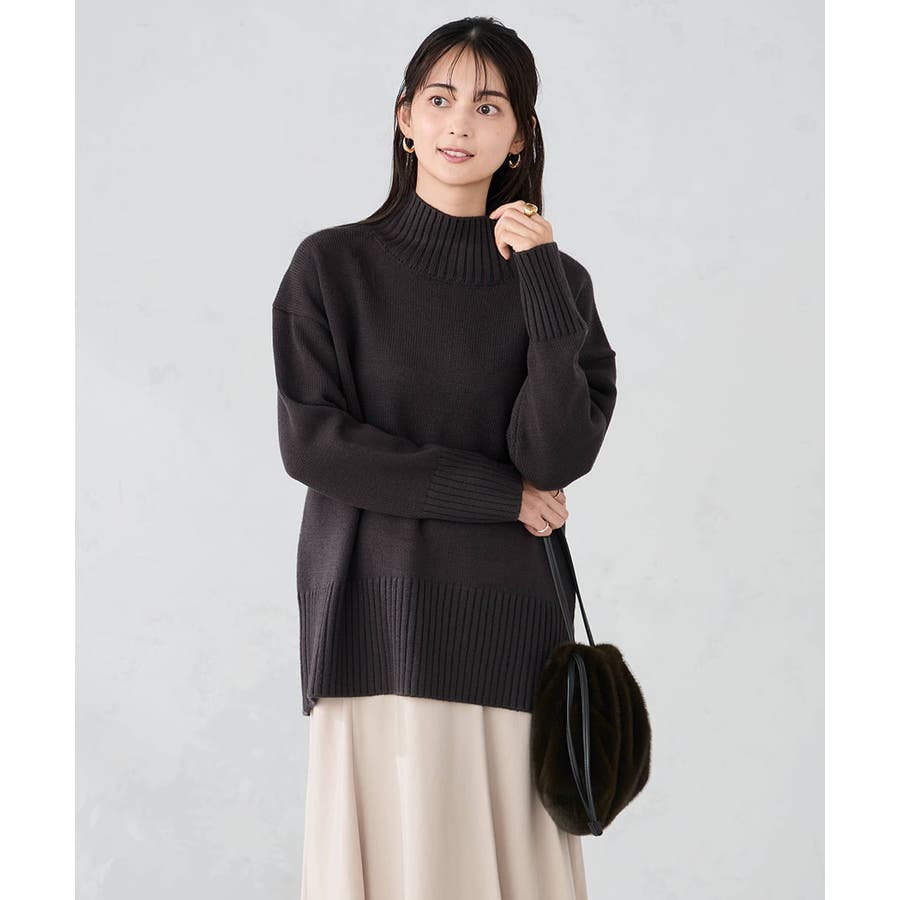 ・首に沿うハイネックは窮屈感が少なく、メイク移りもしにく高さに