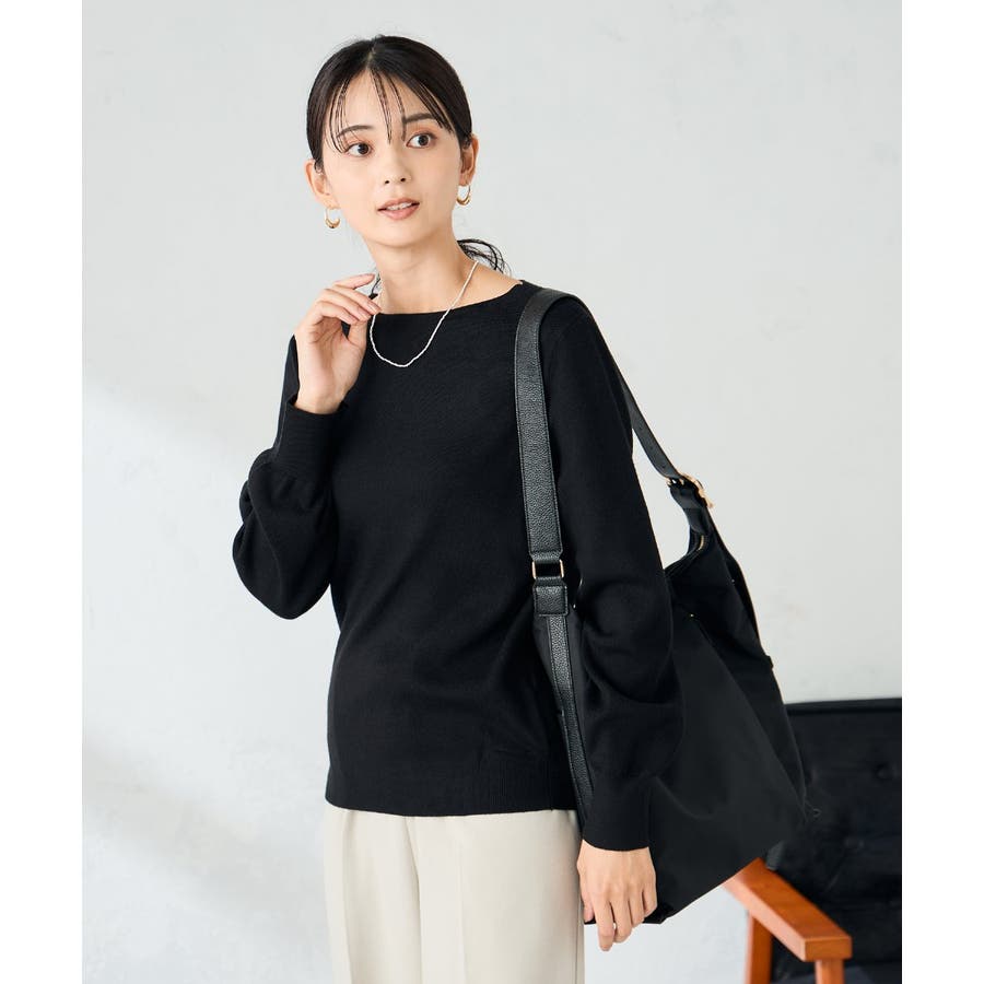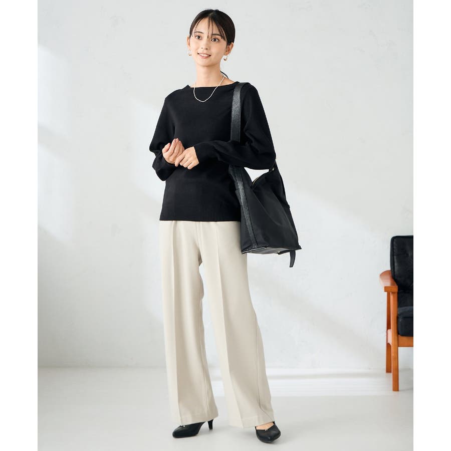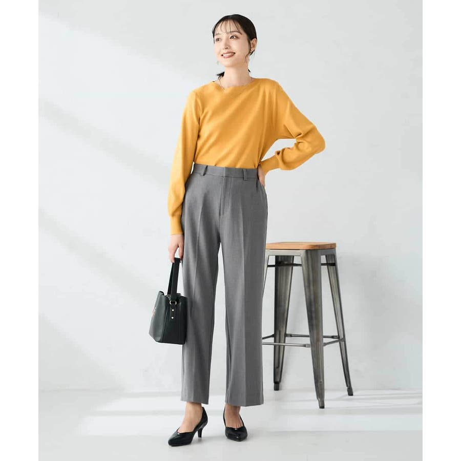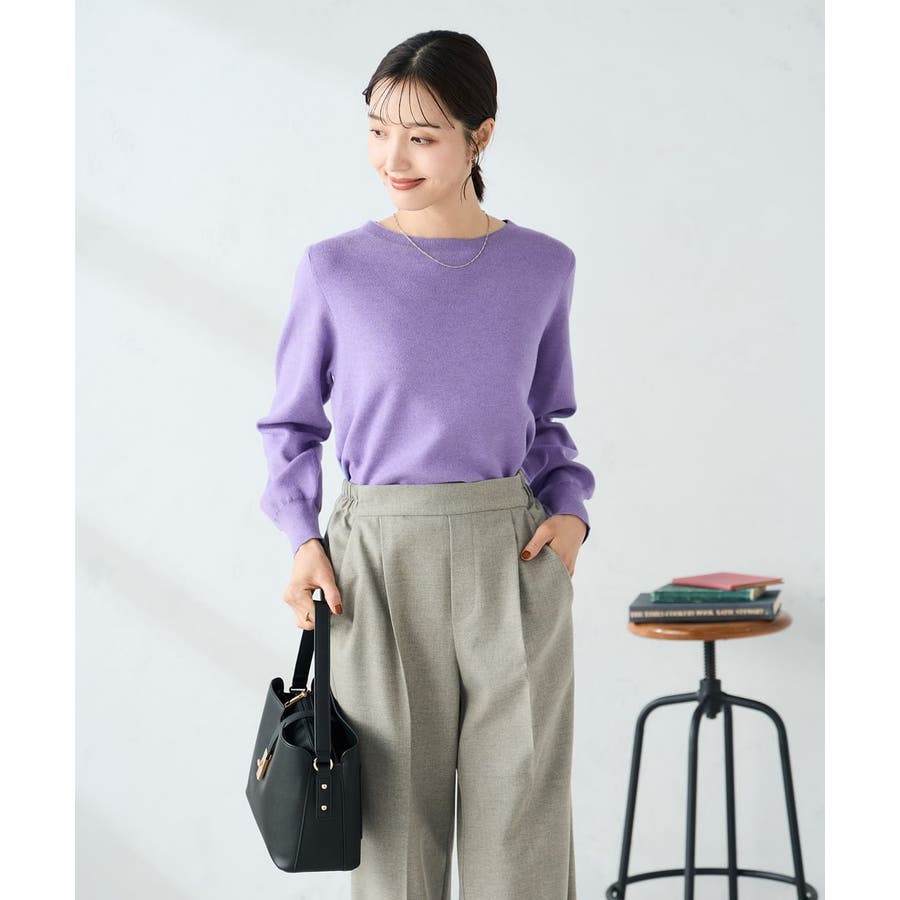 ジャケットのインナーにも着やすく、通勤時も着回せるのがうれしいポイント。