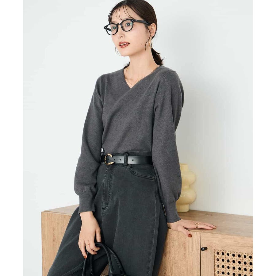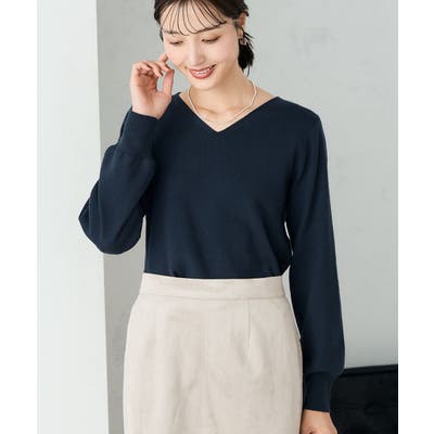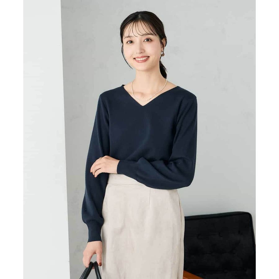 【洗える】Vネック美ラクるパフスリーブニット【WEB限定】