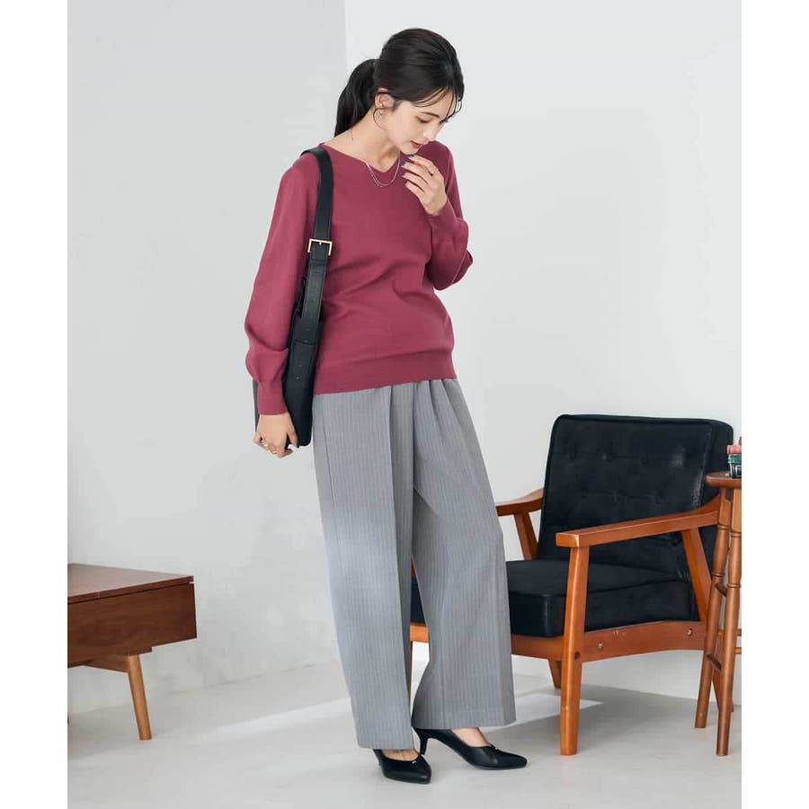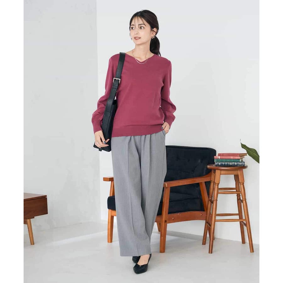ジャケットのインナーにも着やすく、通勤時も着回せるのがうれしいポイント。