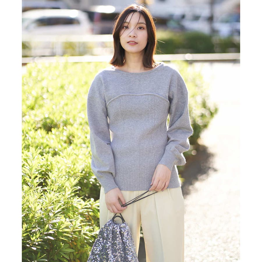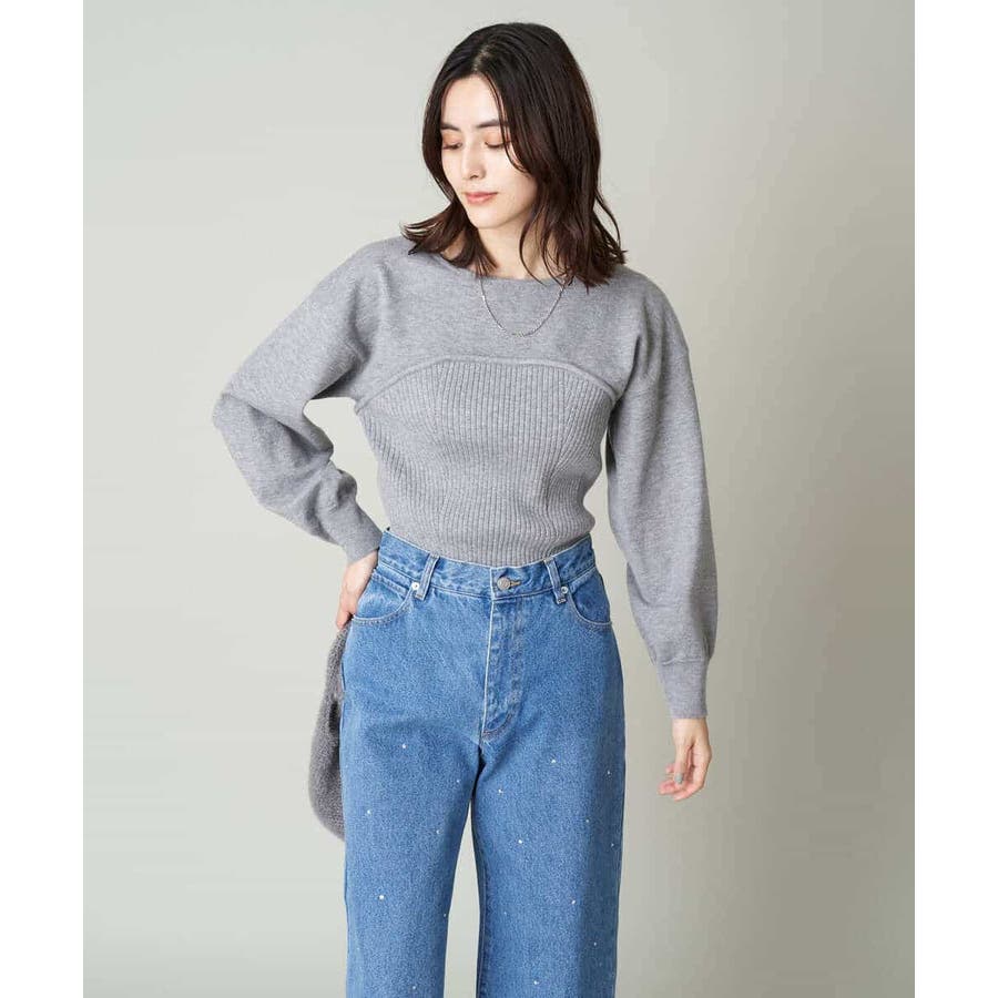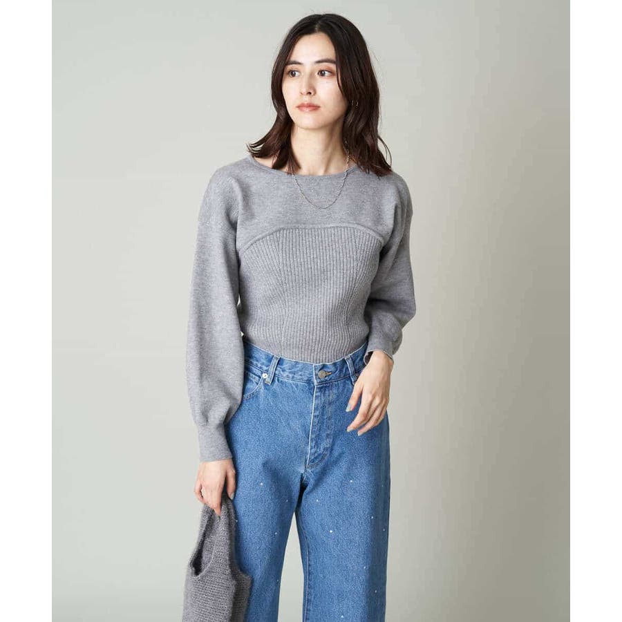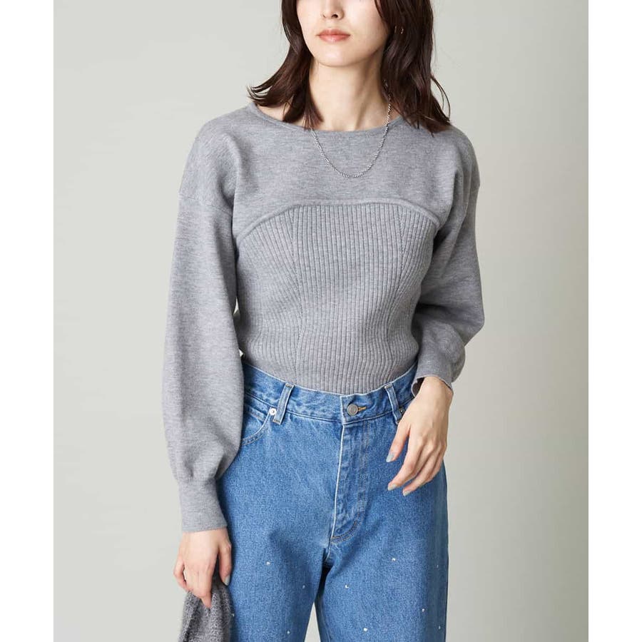 ・ビスチェを重ねたようなデザインのニットプルオーバー