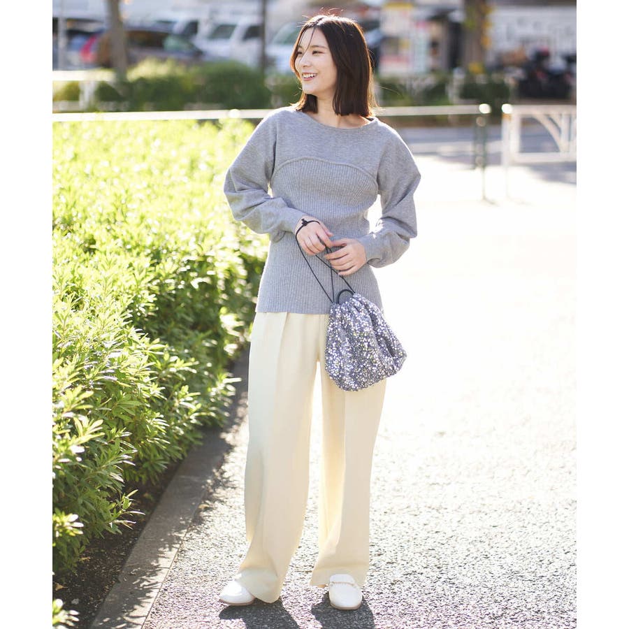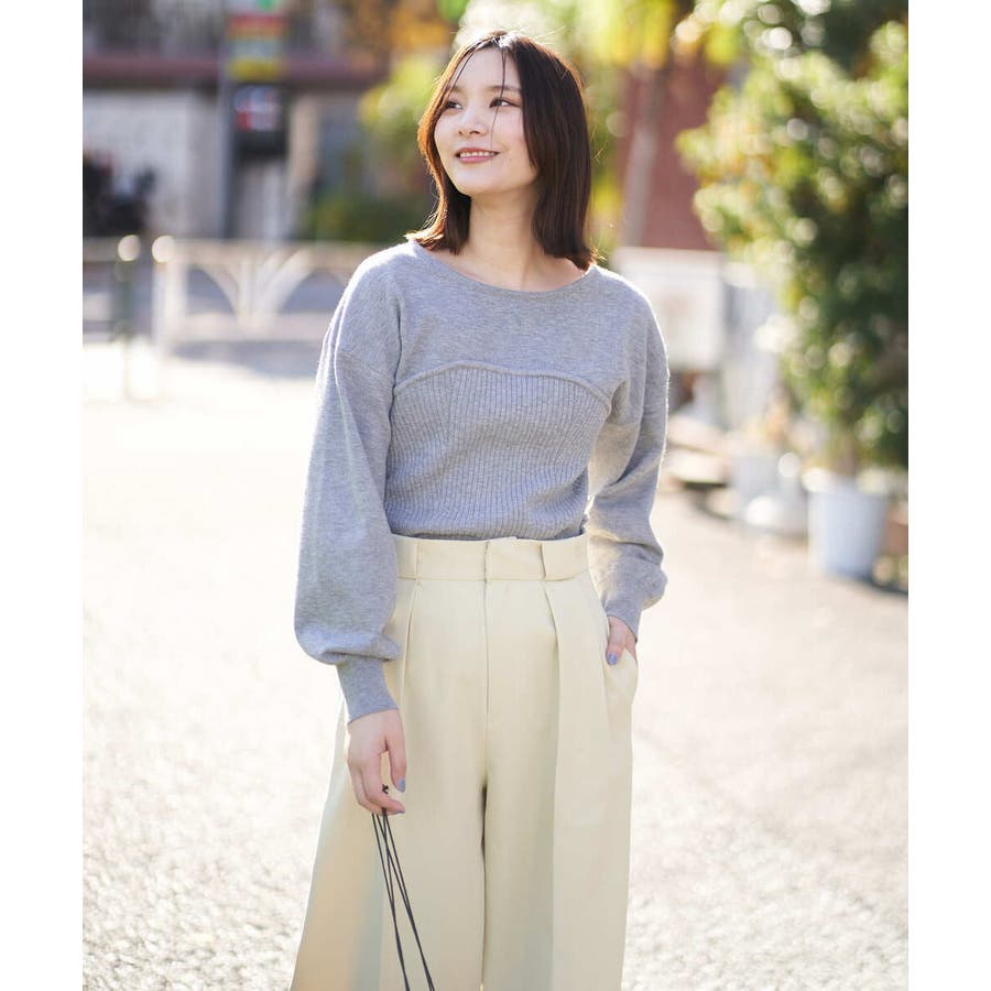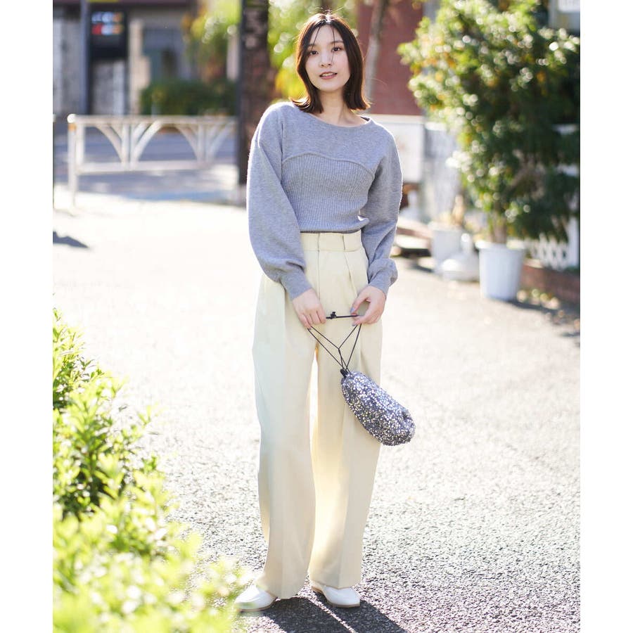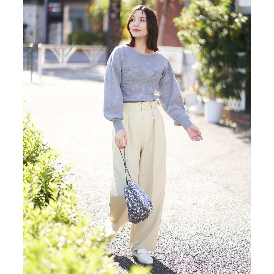 ・ビスチェを重ねたようなデザインのニットプルオーバー