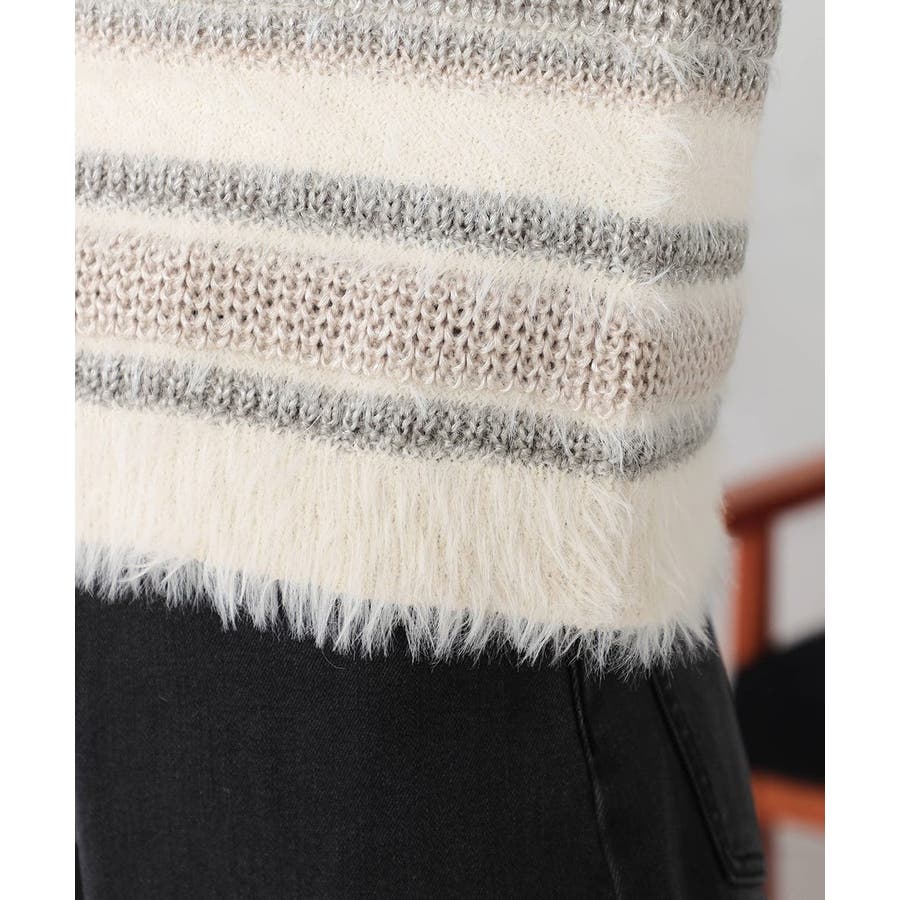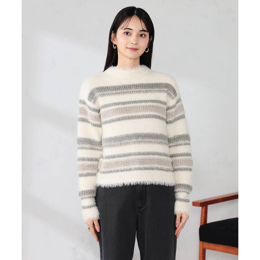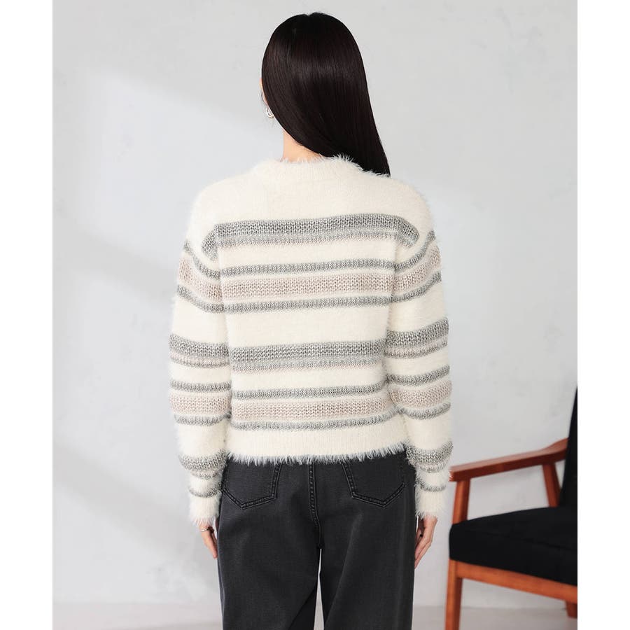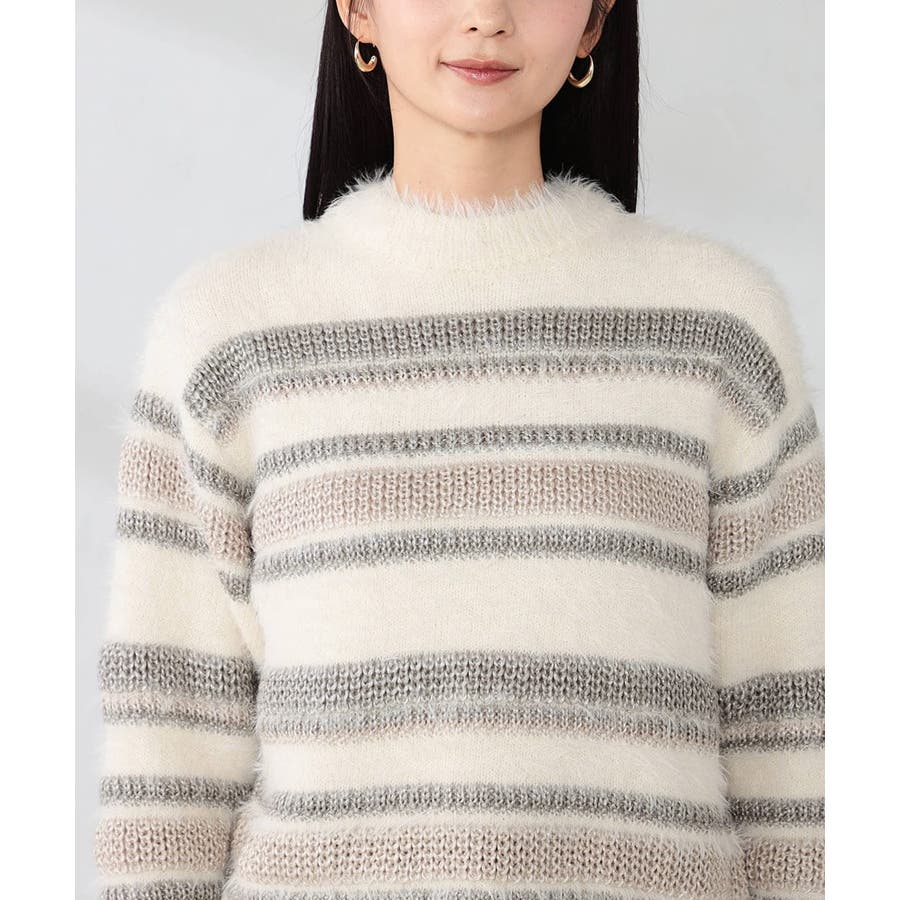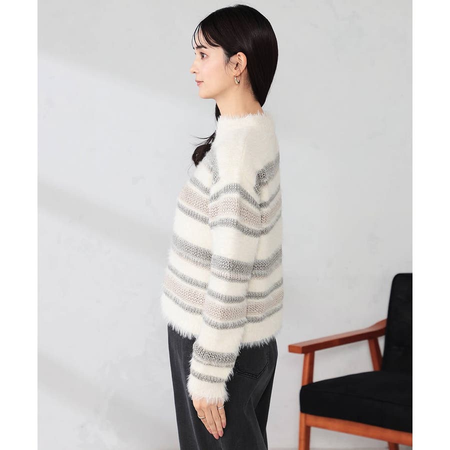 ・柔らかい風合いのフェザーヤーンと光沢感あるリリヤーンを使用した異素材ボーダーニット
