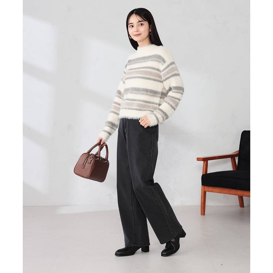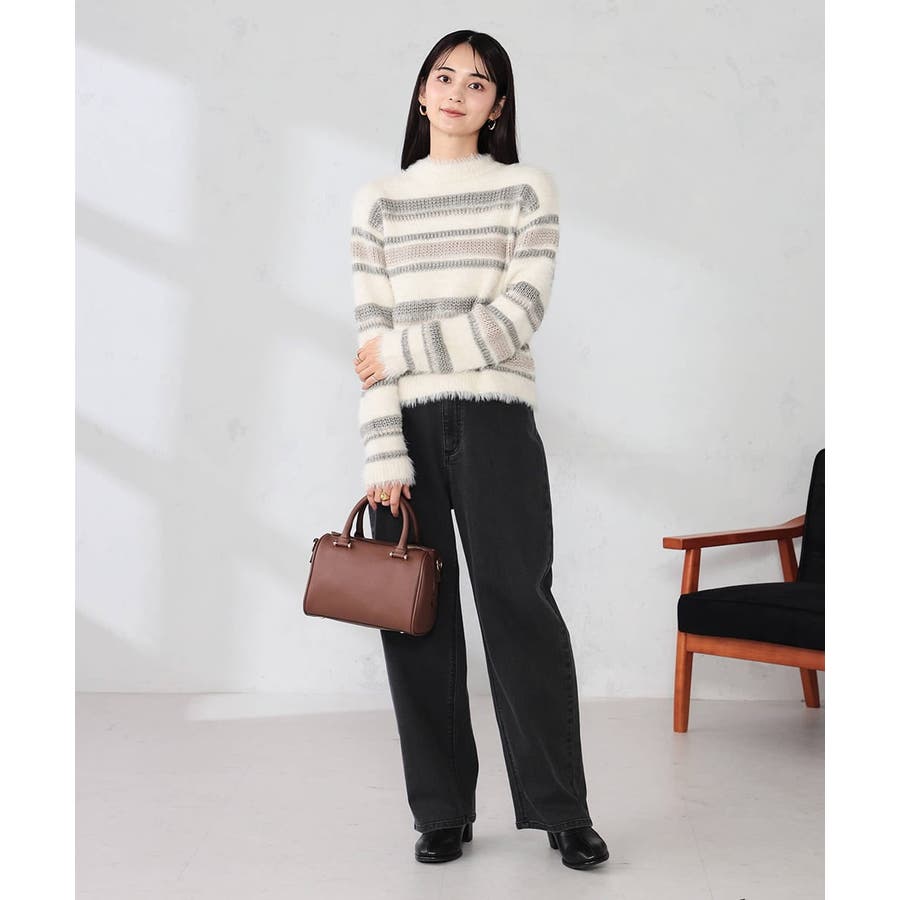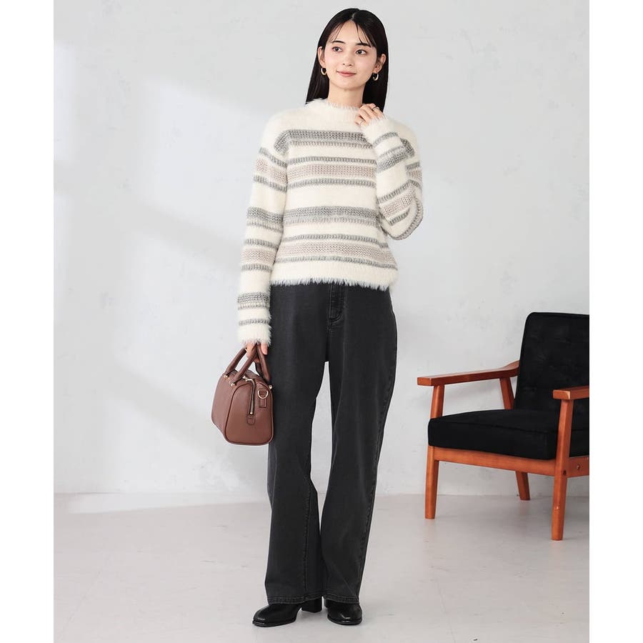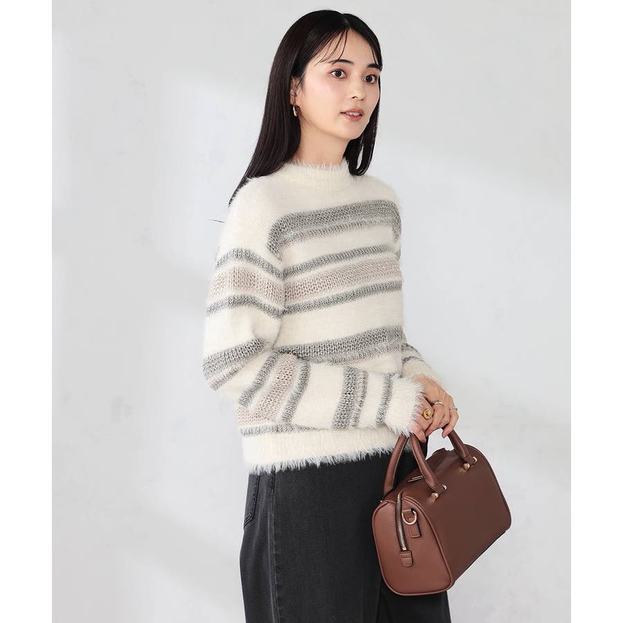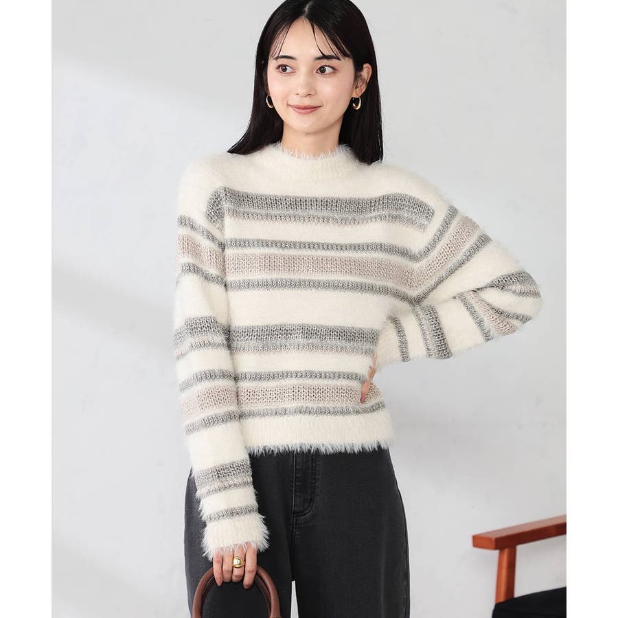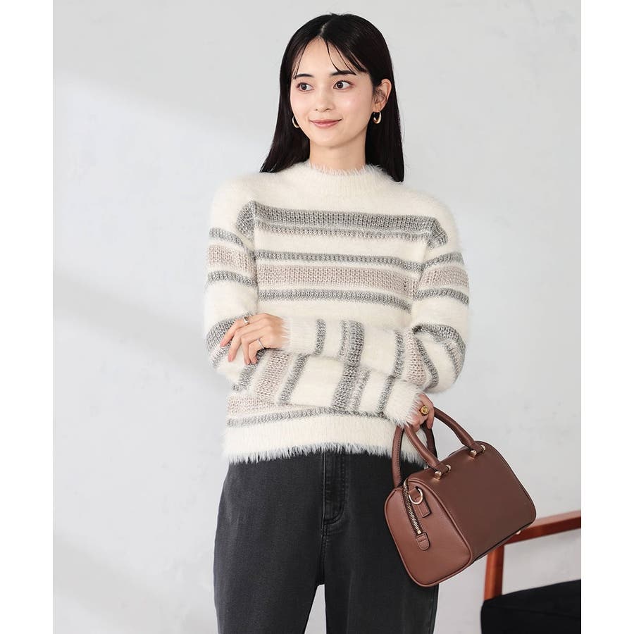 ・柔らかい風合いのフェザーヤーンと光沢感あるリリヤーンを使用した異素材ボーダーニット