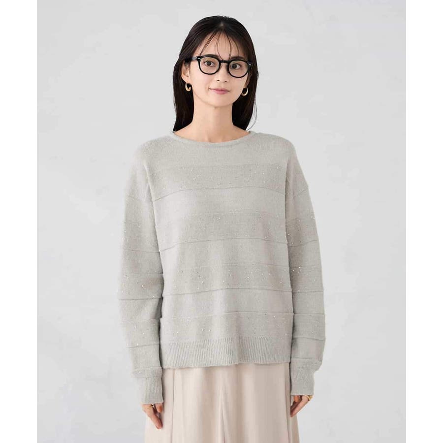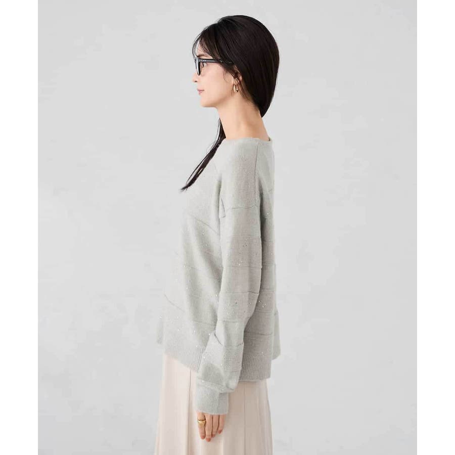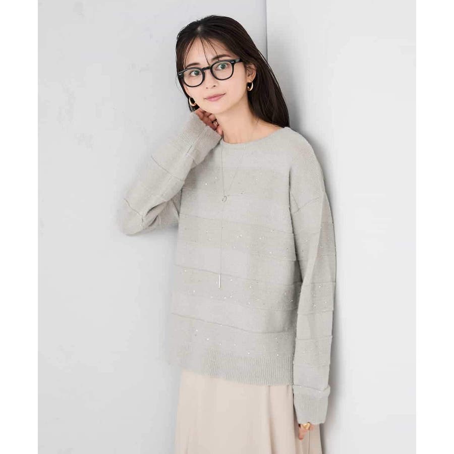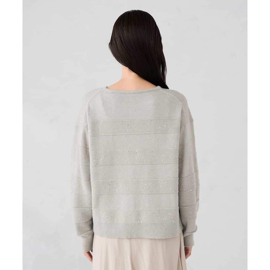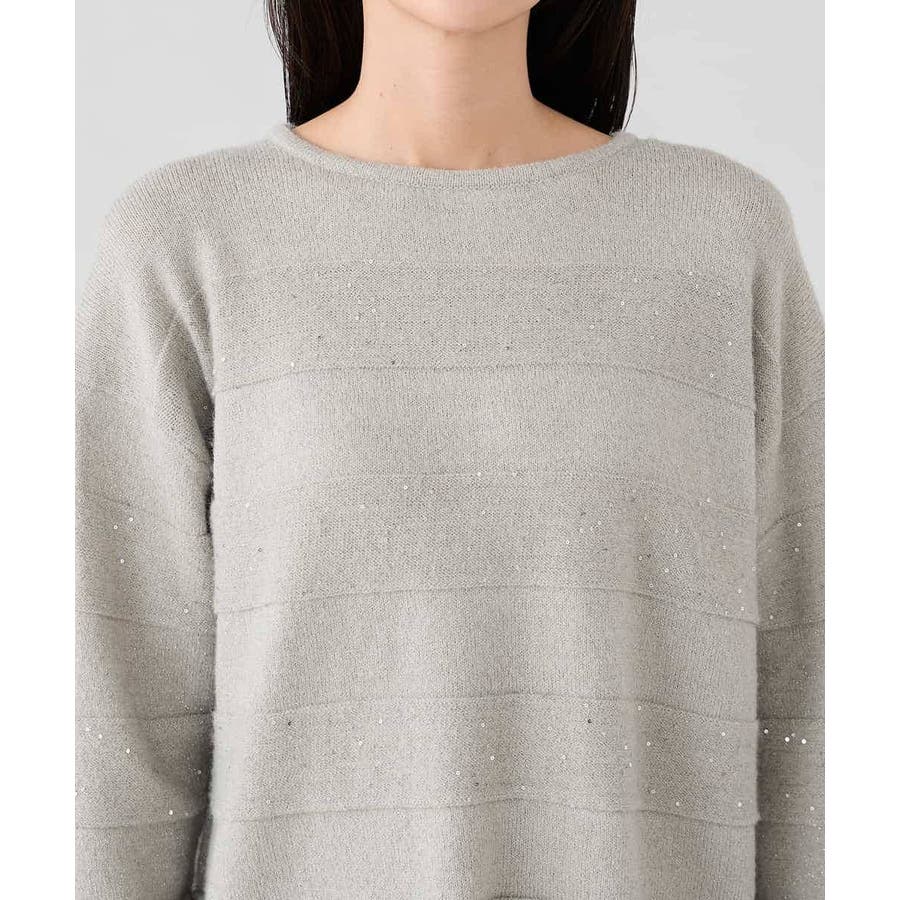 ・風合い良い柔らかなニットに同色のスパンコールでボーダー柄を表現