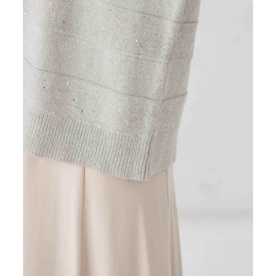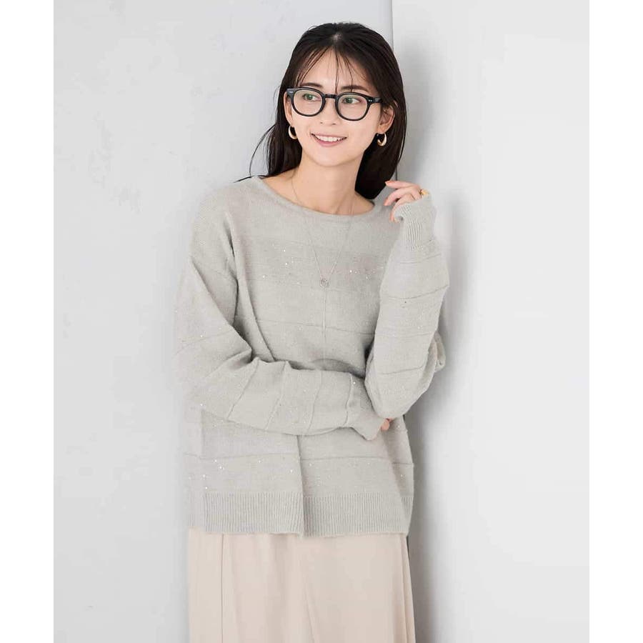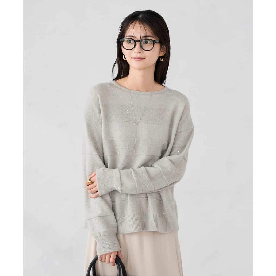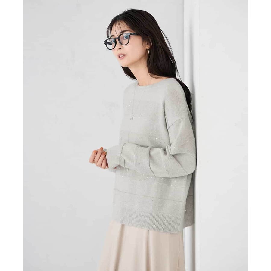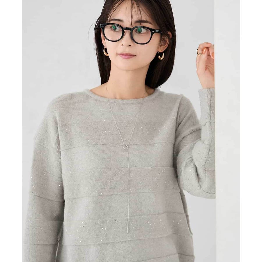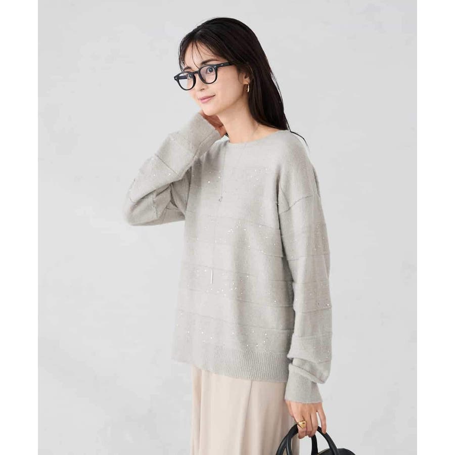 ・風合い良い柔らかなニットに同色のスパンコールでボーダー柄を表現