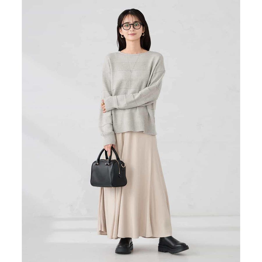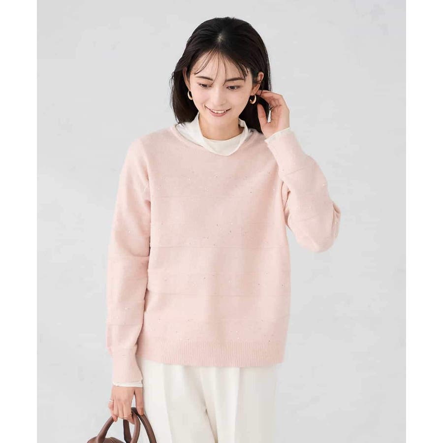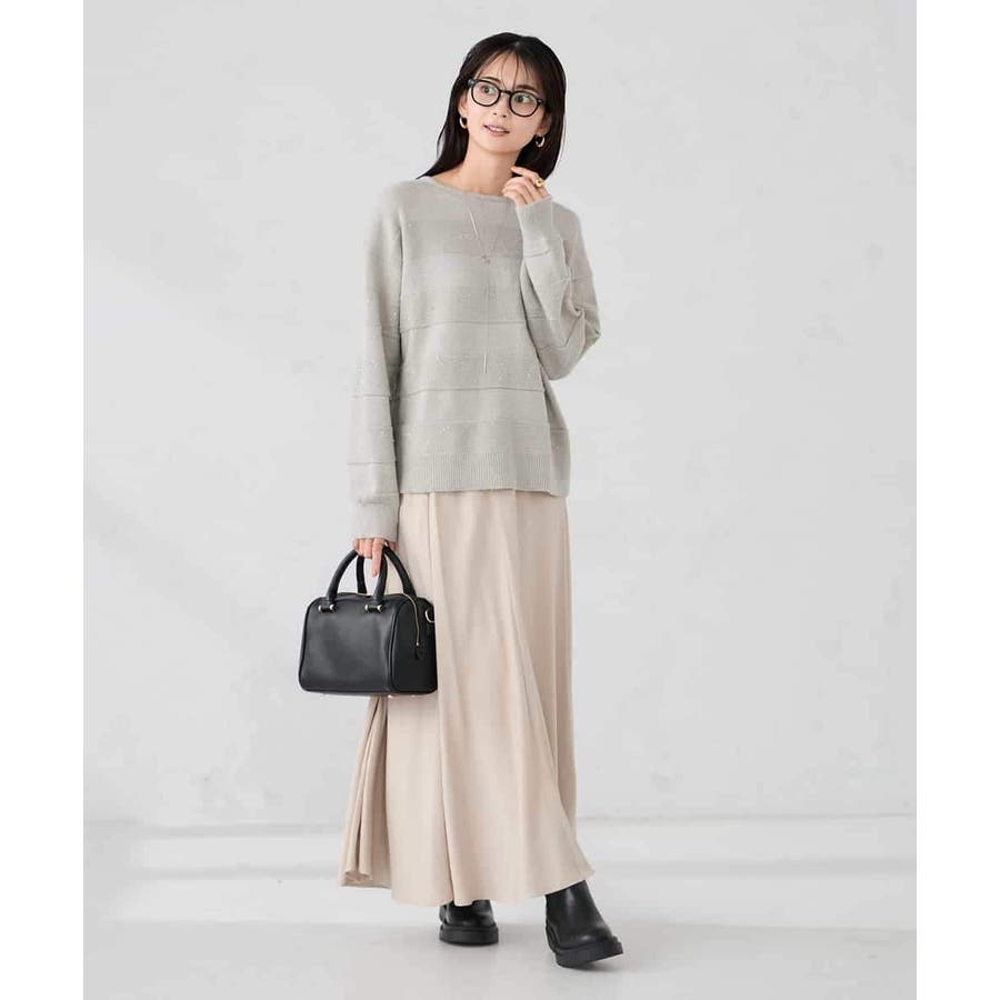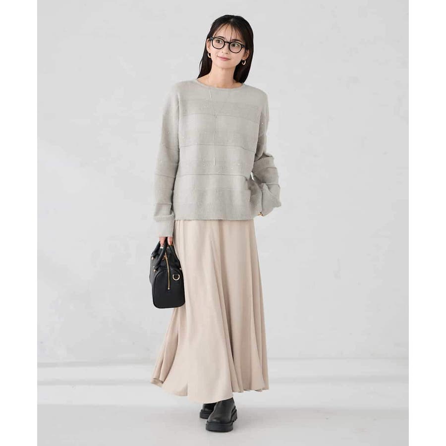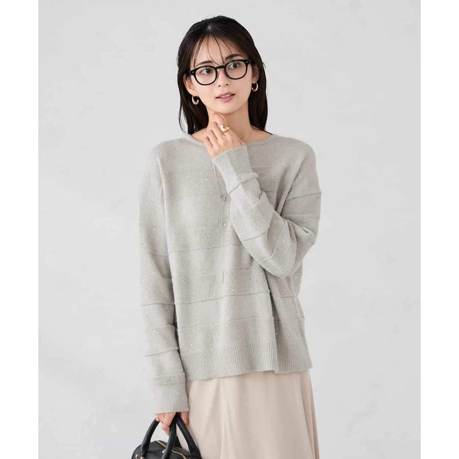 ・風合い良い柔らかなニットに同色のスパンコールでボーダー柄を表現