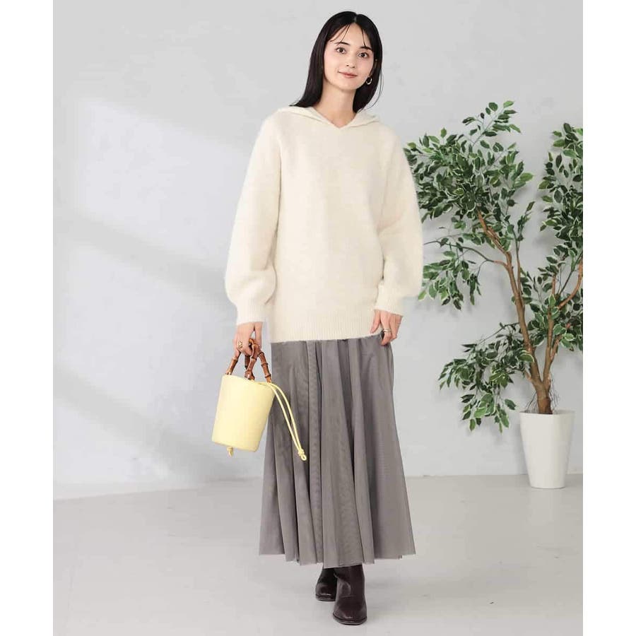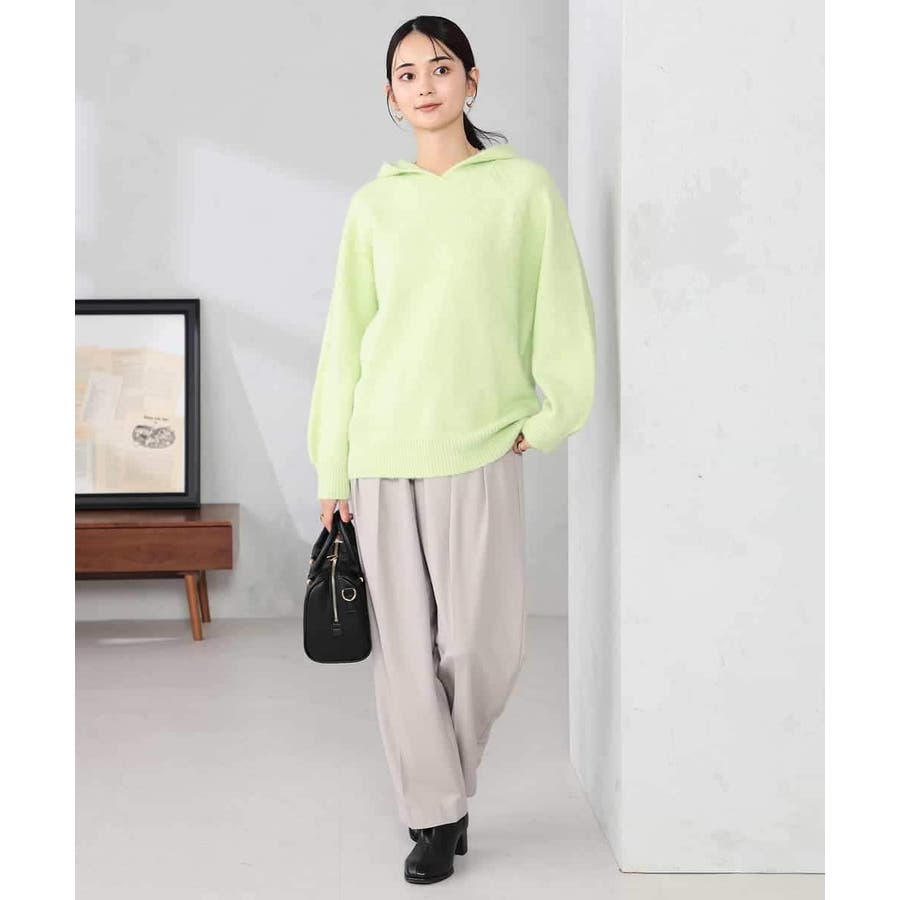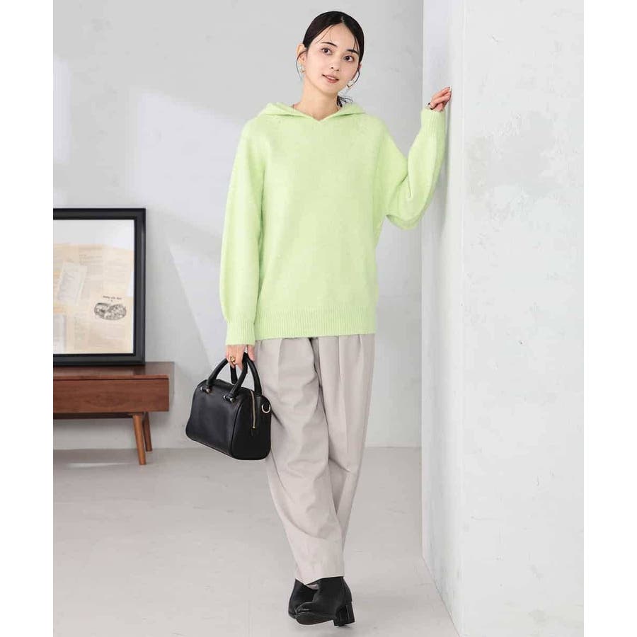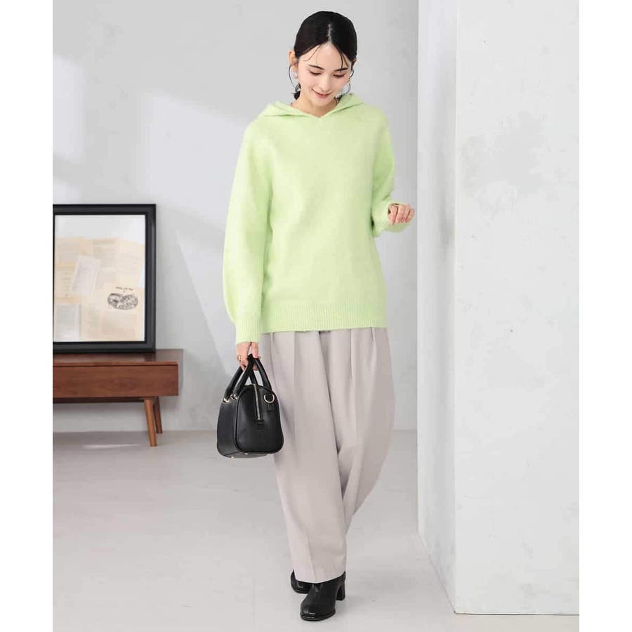・シンプルなフーディープルオーバーもニットで表現することで大人カジュアルな一枚に
