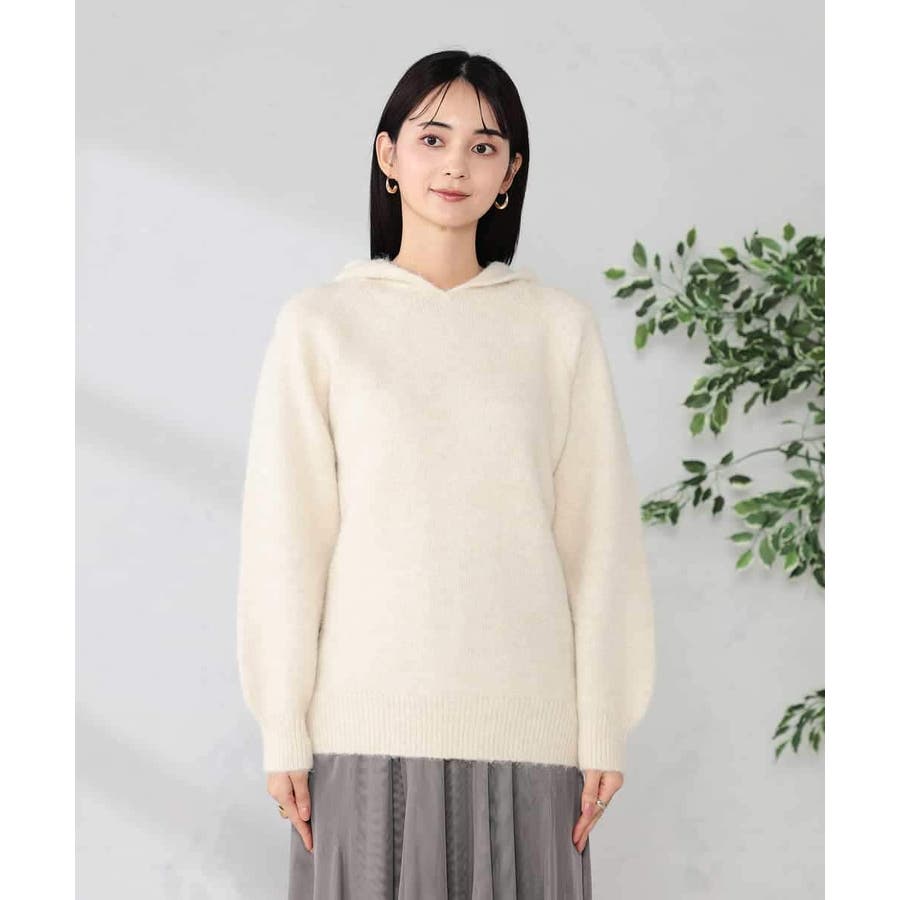 ヘアリーニットフーディー