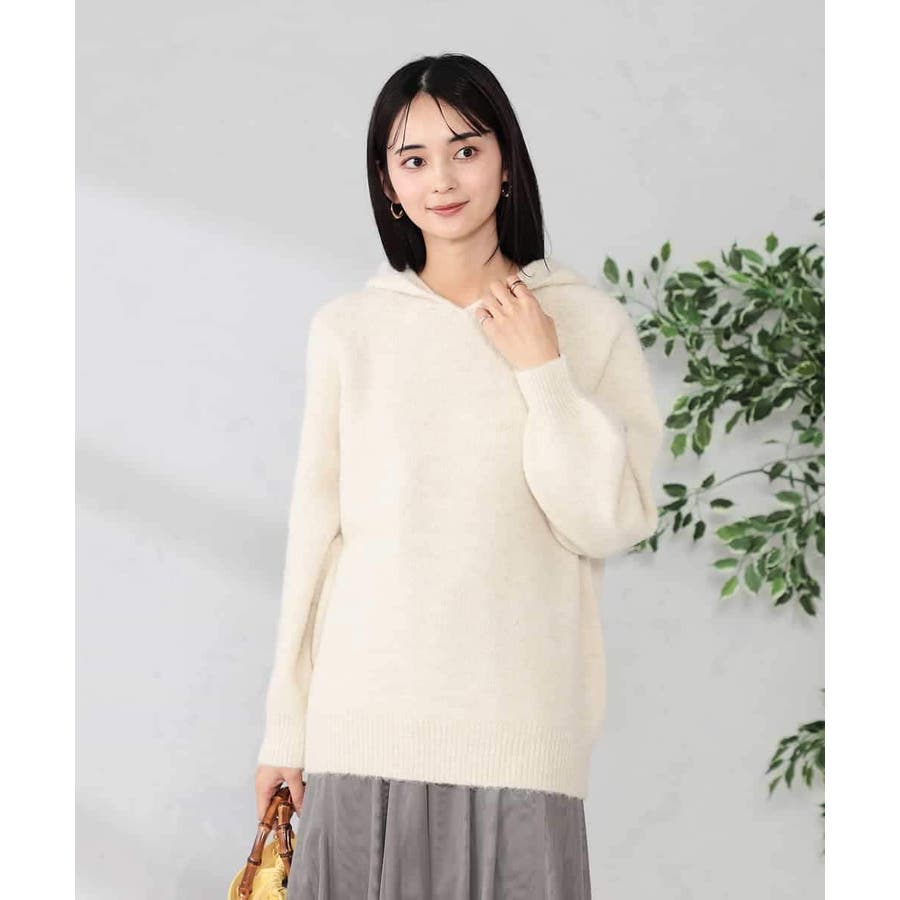 ・柔らかい起毛素材を使用したふわふわニットフーディー