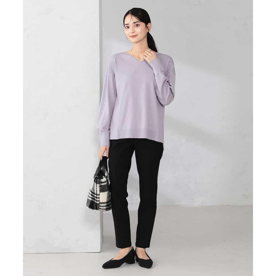 ・サイドに縦リブライン入りで、自然に細見え&体型カバー