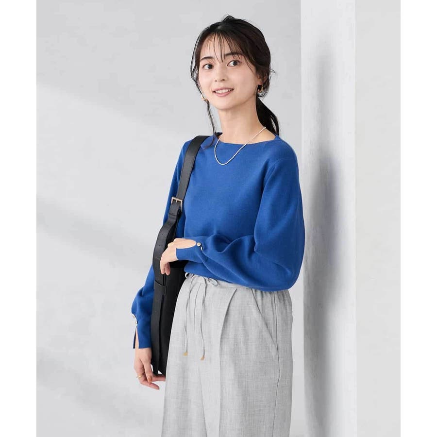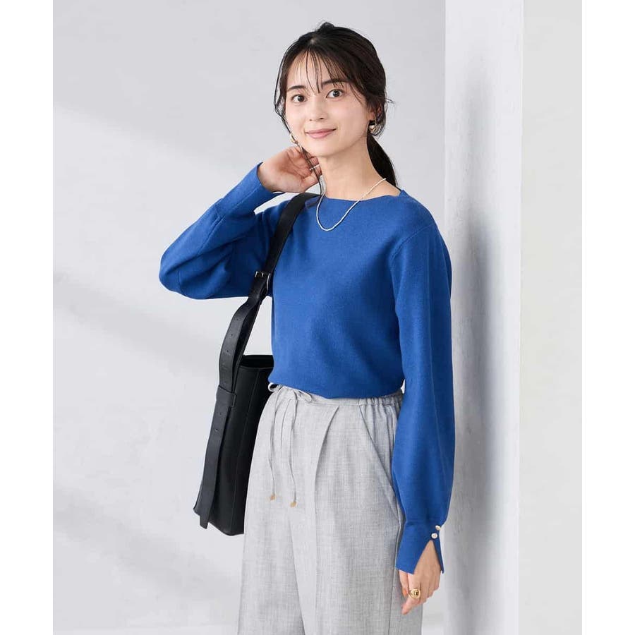 ・シンプルで使いやすい総針ボートネックプルオーバー