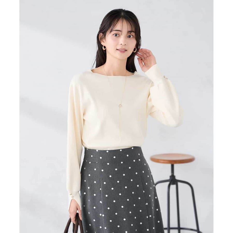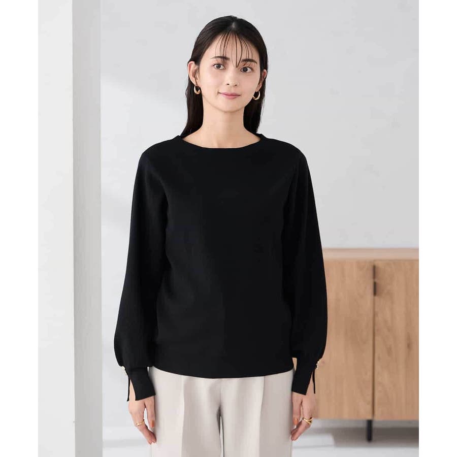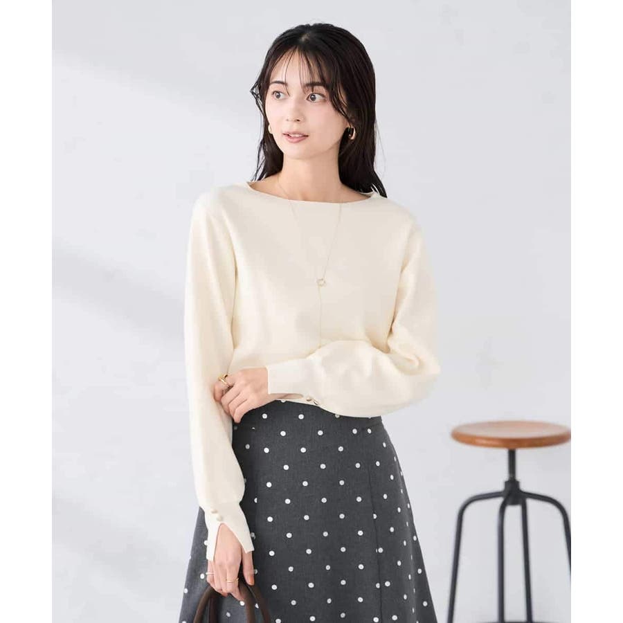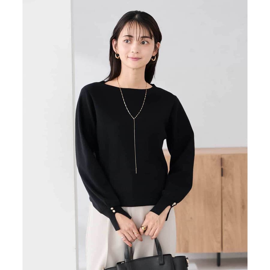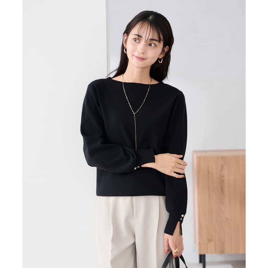 【WEB限定】ゴールドボタンボートネックニット