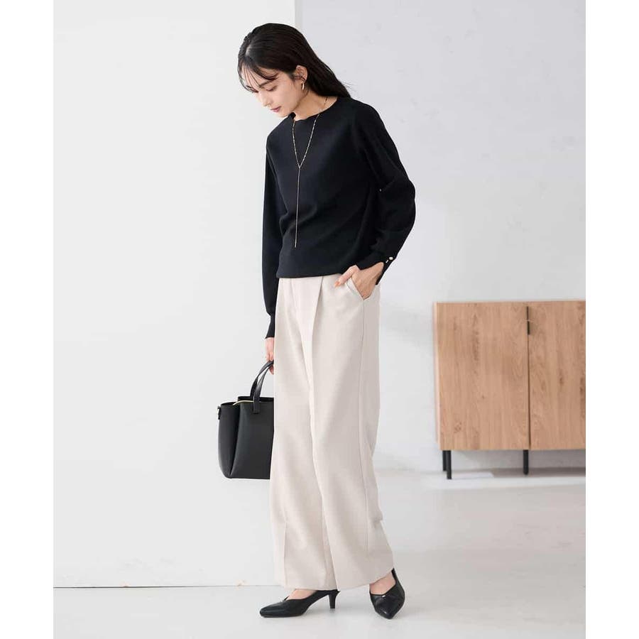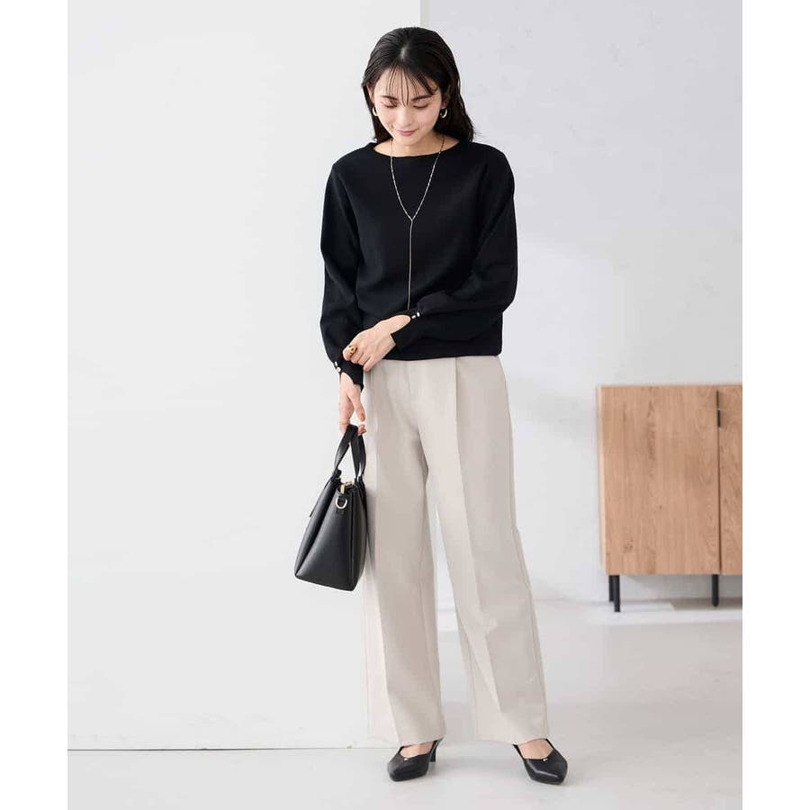 ジャケットのインナーにも着やすく、通勤時も着回せるのがうれしいポイント。