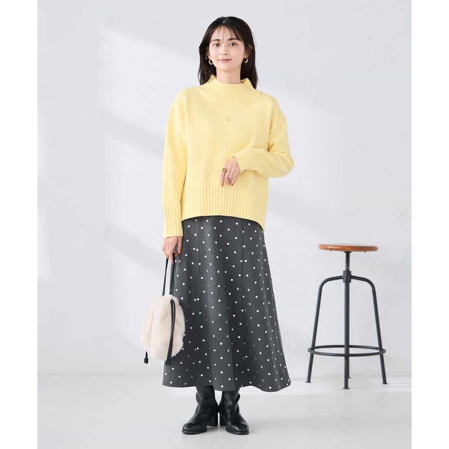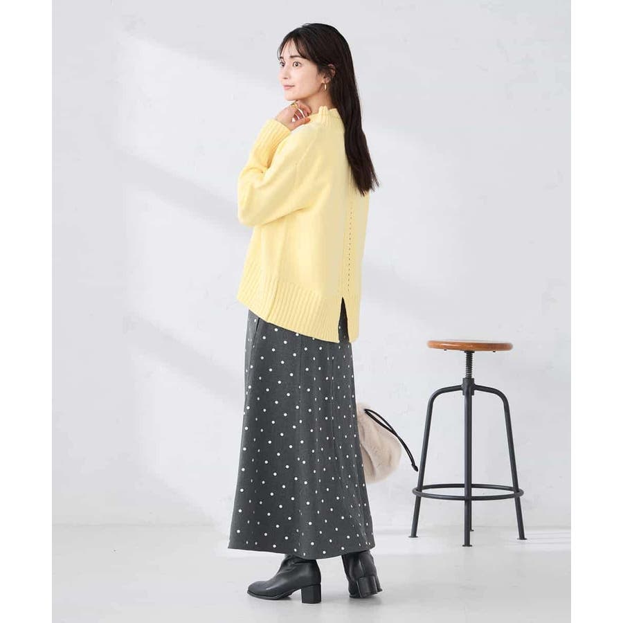 カラーニットはアウターインでも映えて、スタイリングの幅が広がります。