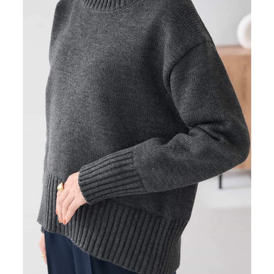 ・首に沿うハイネックは窮屈感が少なく、メイク移りもしにくい高さに