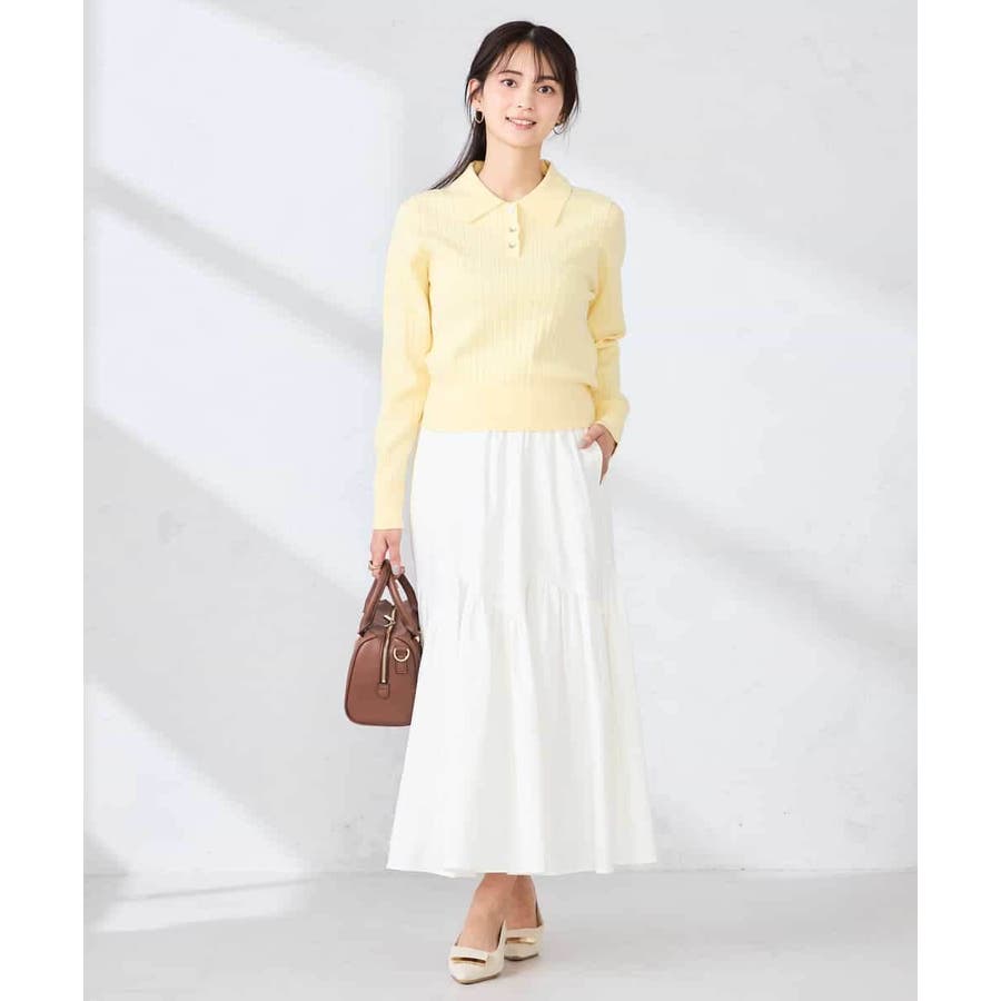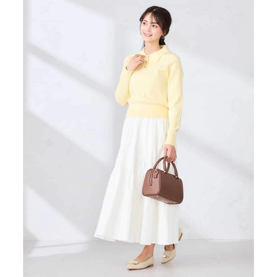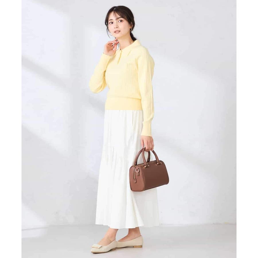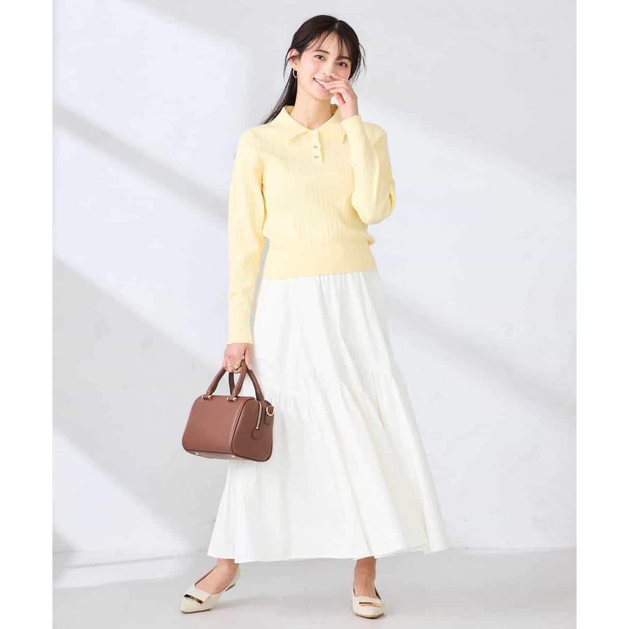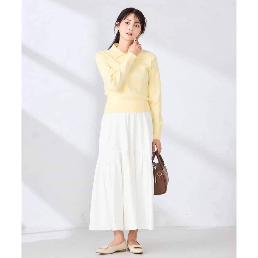 コンパクトなシルエットのニットは、スカート合わせはもちろん