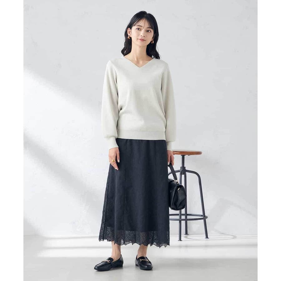 ・a.v.v定番のVネックプルオーバーに繊細なラメを施した一枚