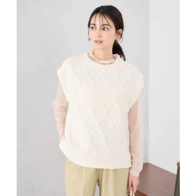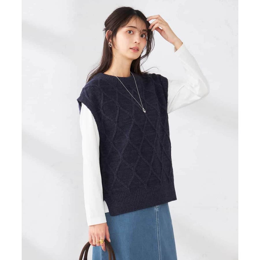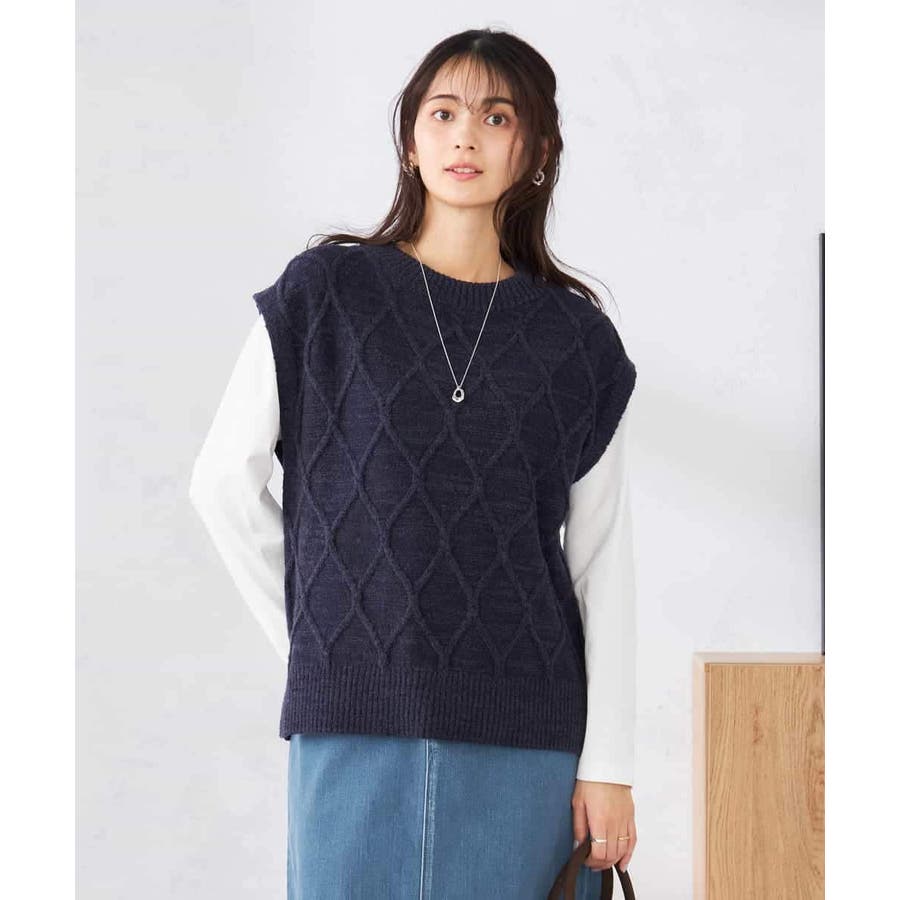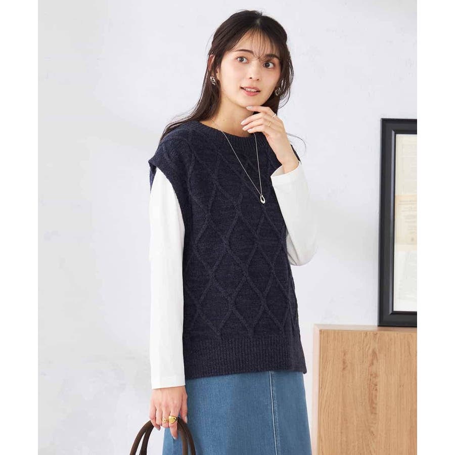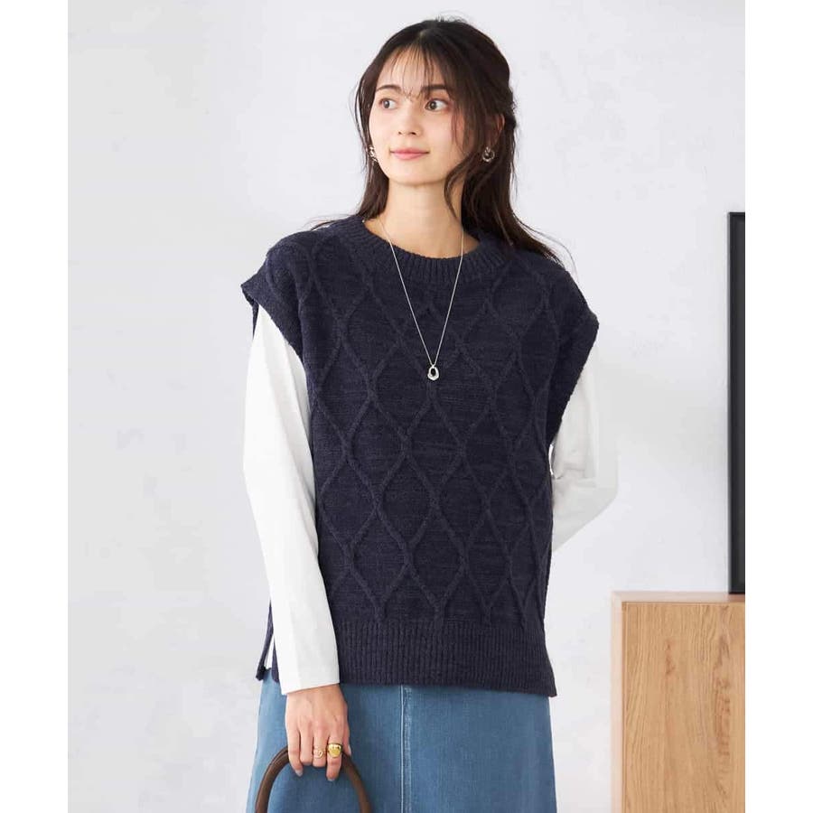 ・アラン柄にケーブル編を全体に入れたニットベスト