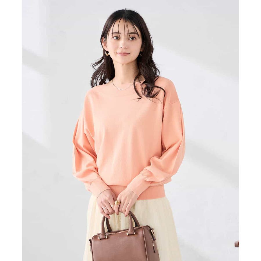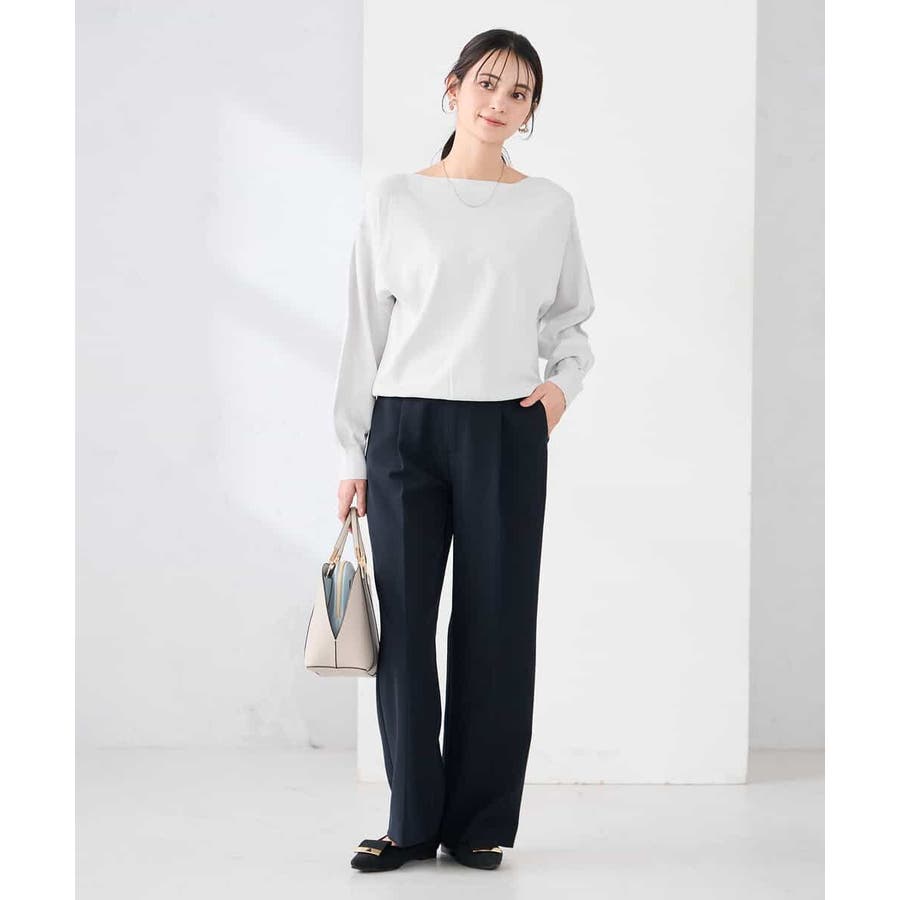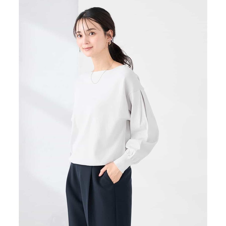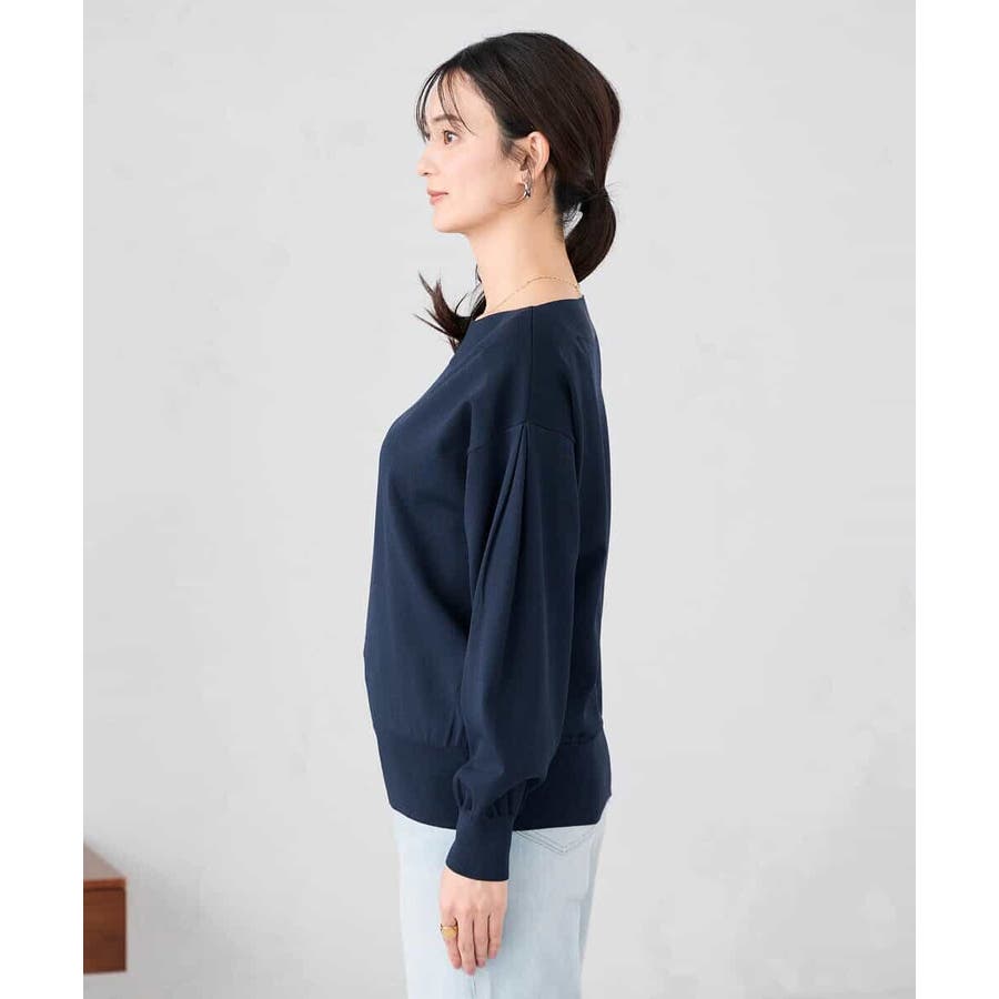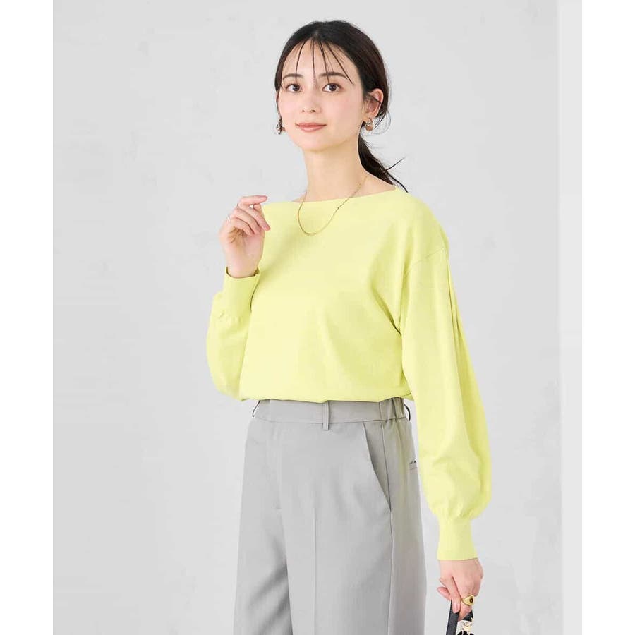 【洗える/UVカット】ボートネック袖タックニット