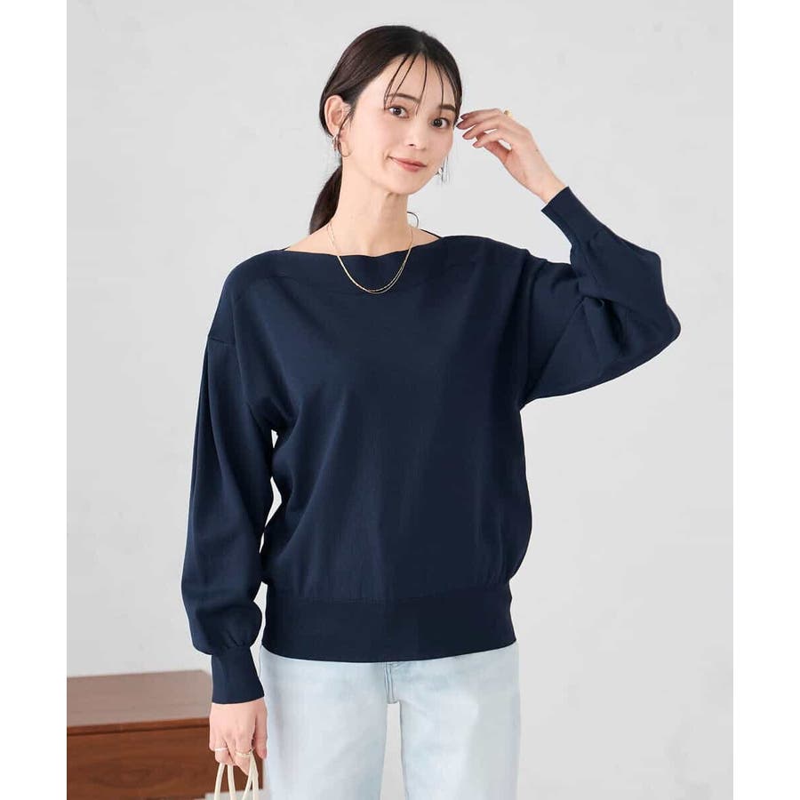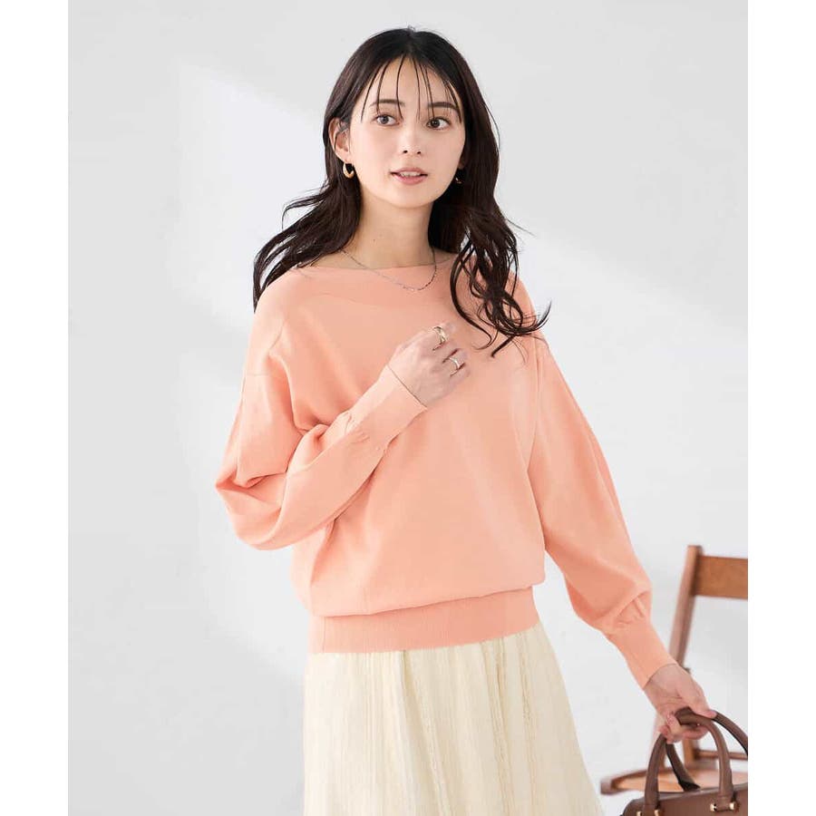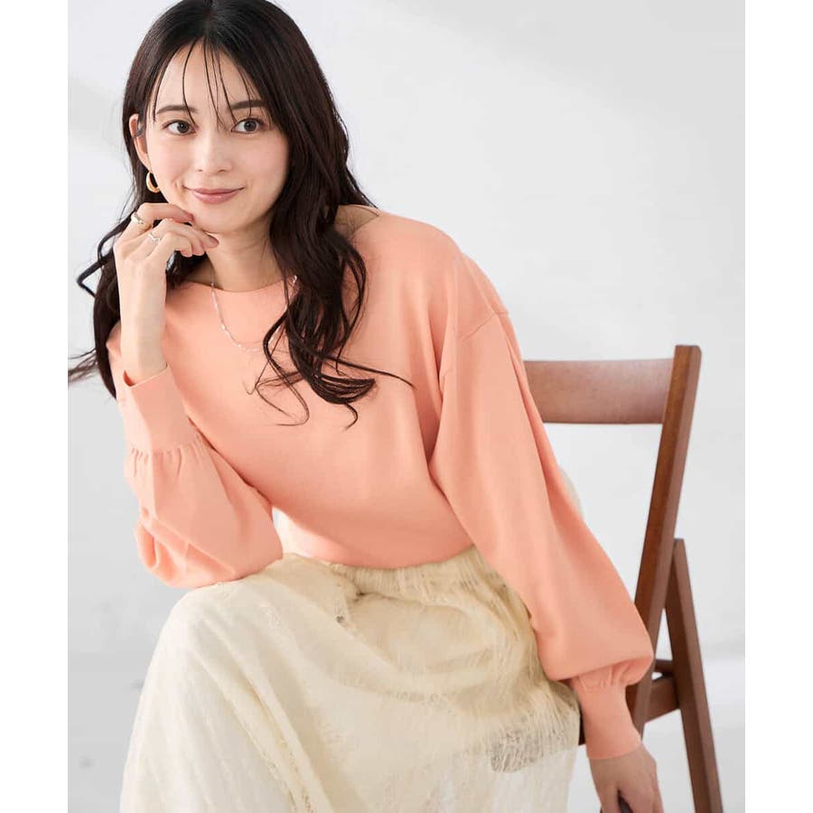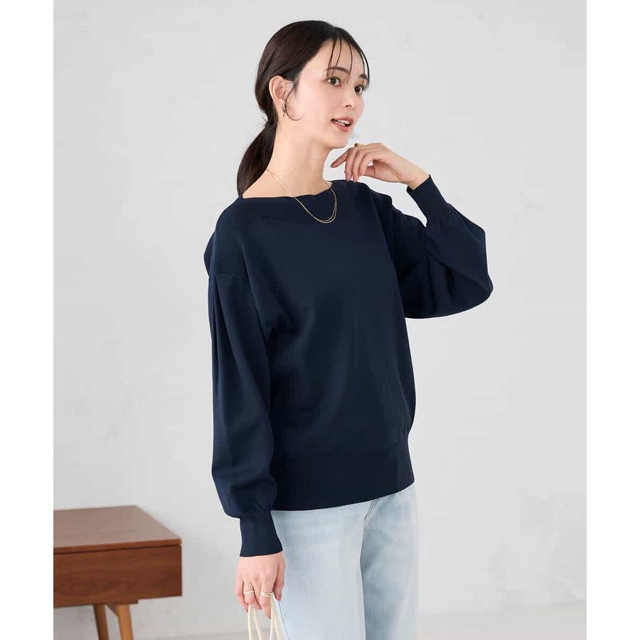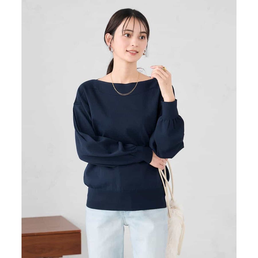 ◆WEB限定:ボートネックパフスリーブニット: