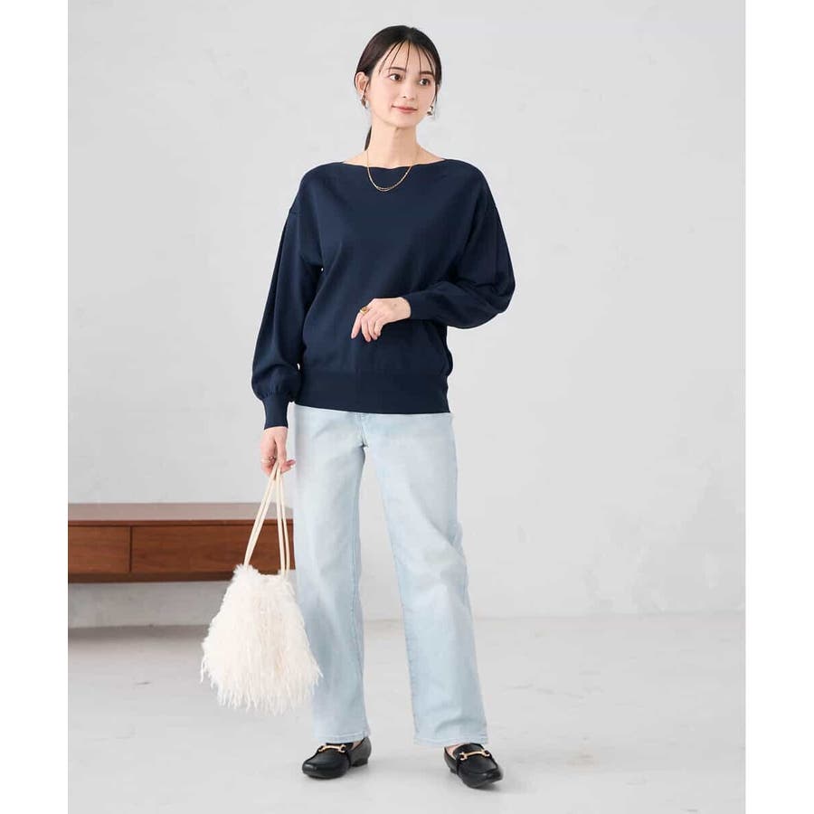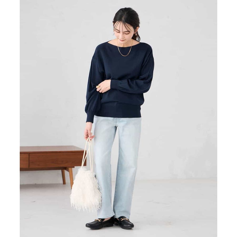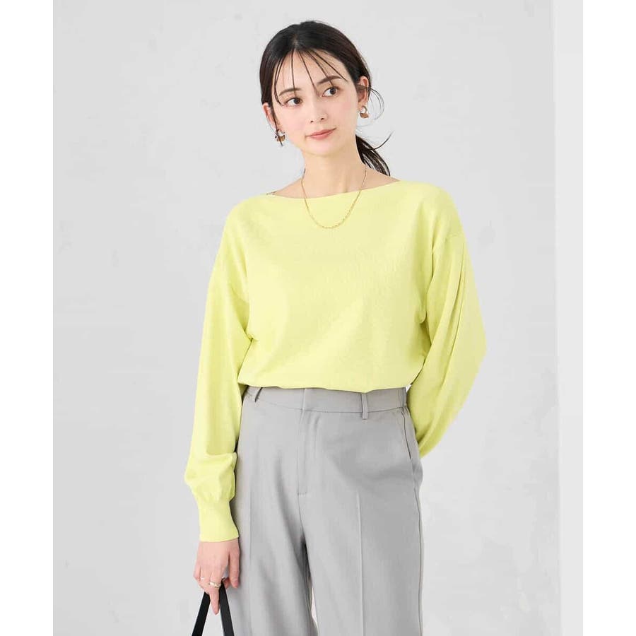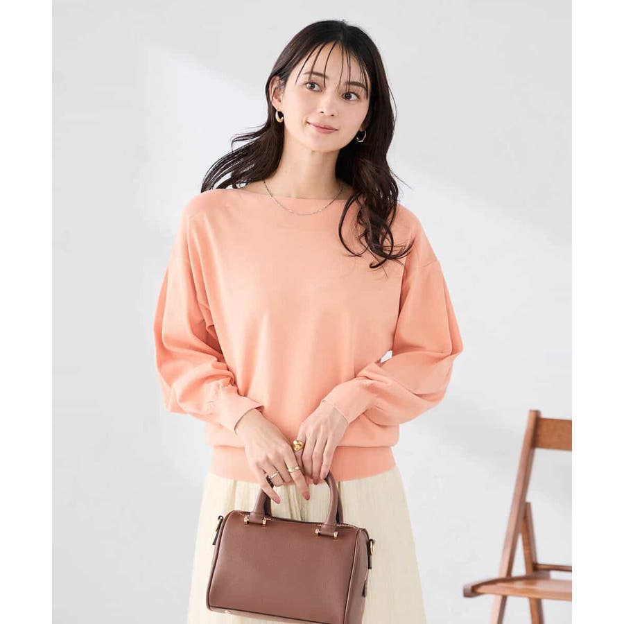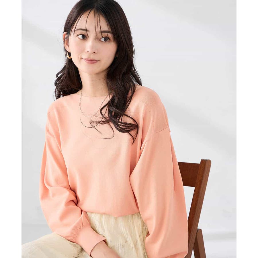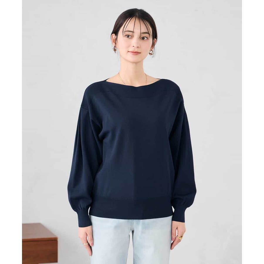 ◆WEB限定:ボートネックパフスリーブニット:
