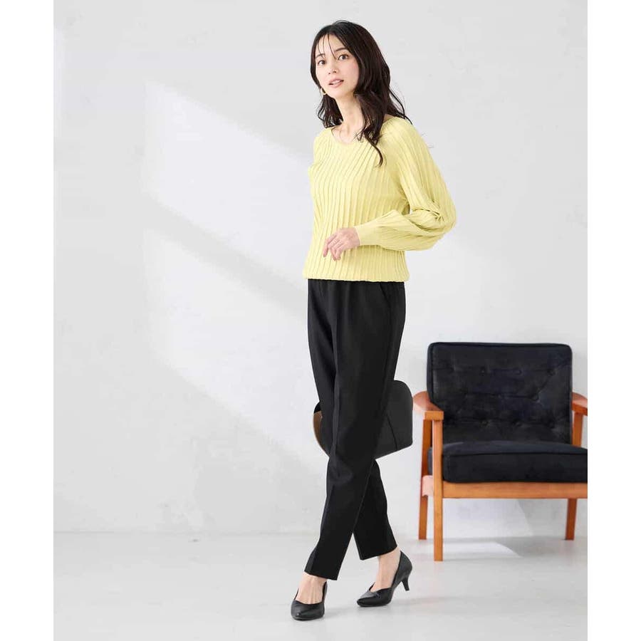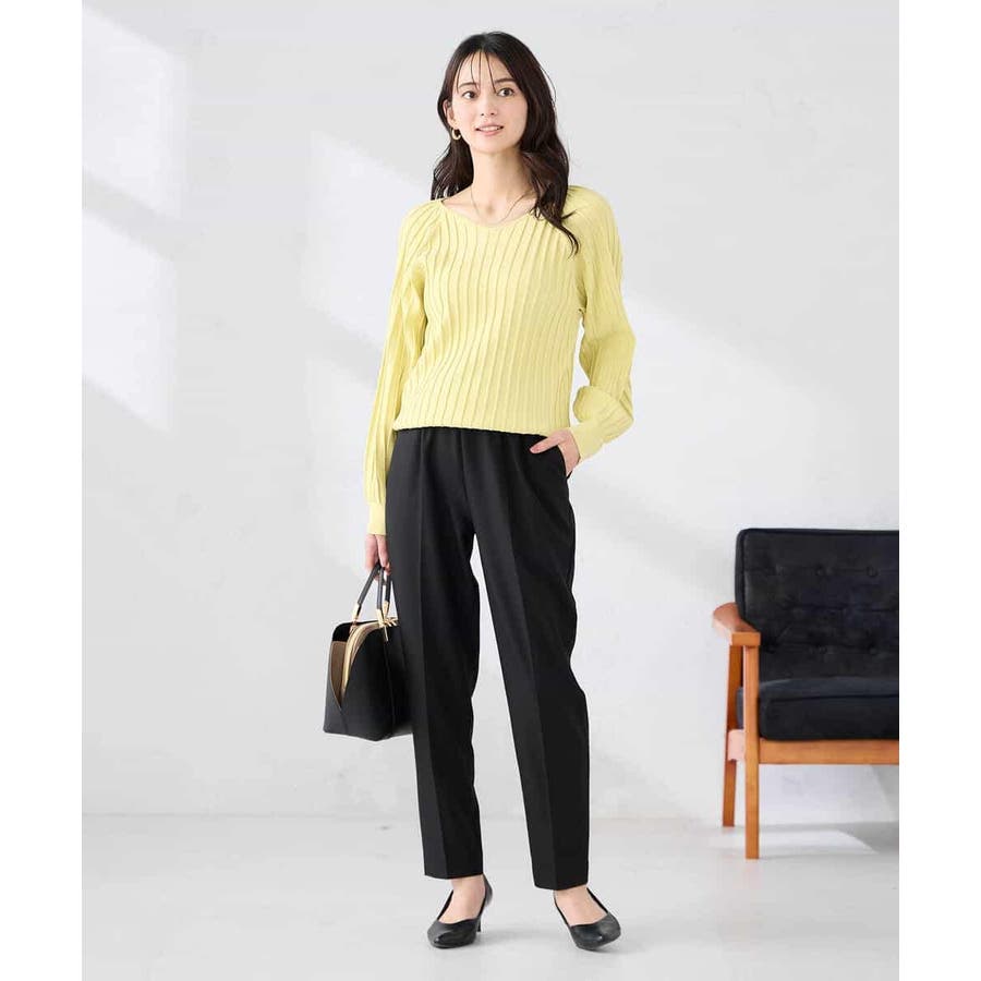 ジャケットのインナーにも着やすく、通勤時も着回せるのがうれしいポイント。