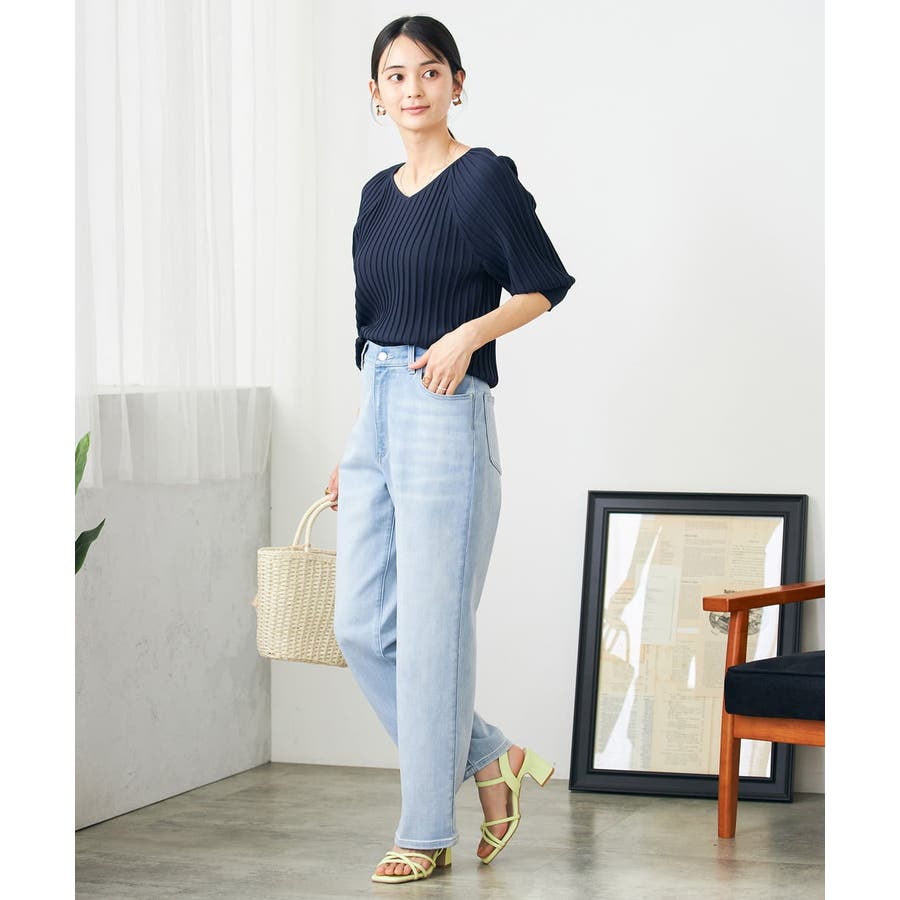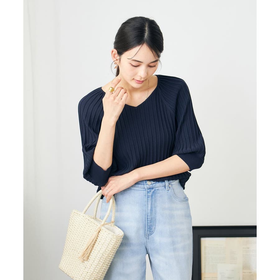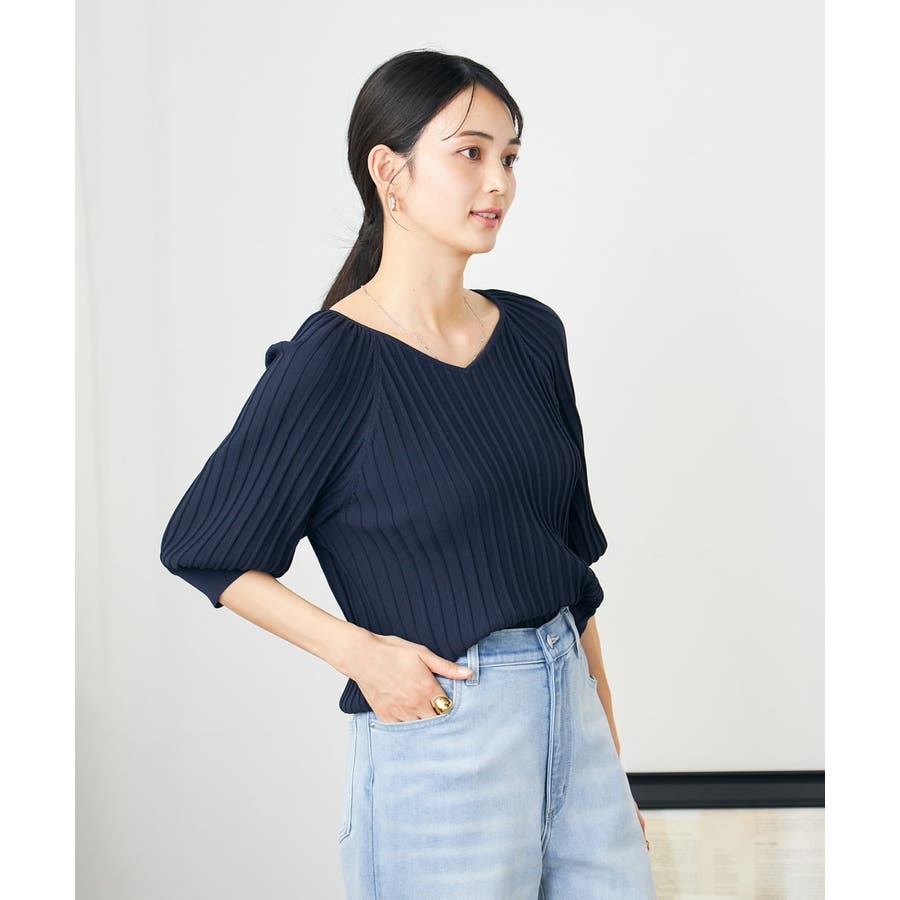 ・程よい開きが女性らしく顔周りがスッキリ見える浅Vネック