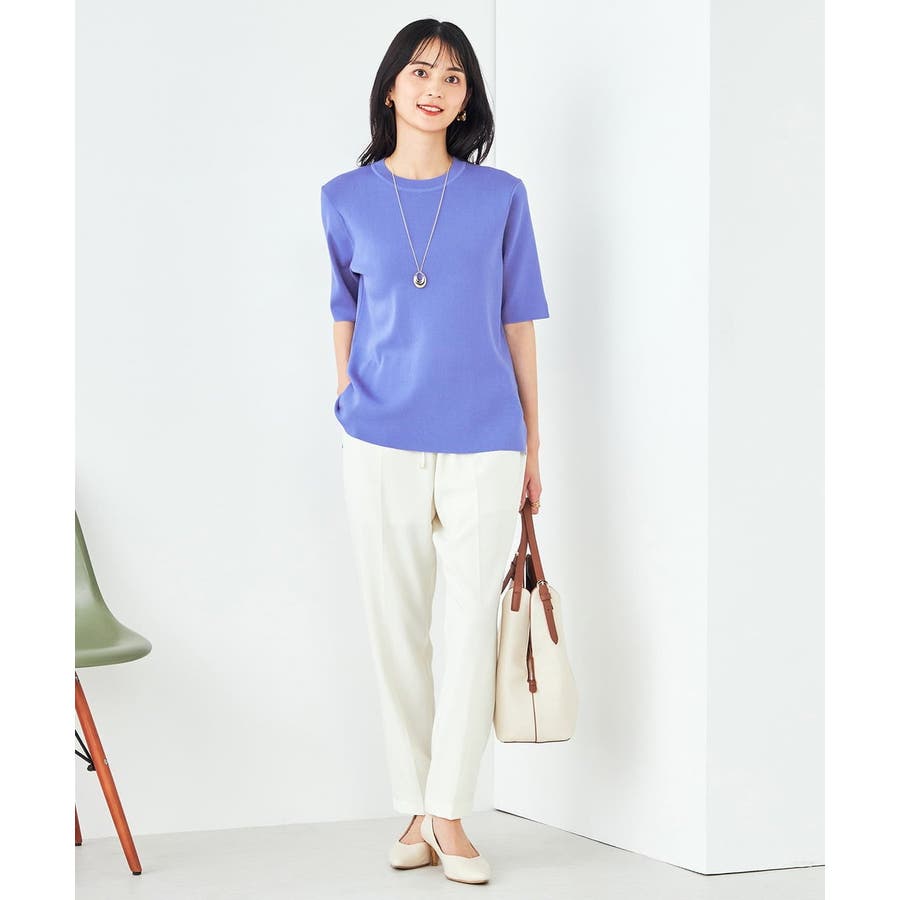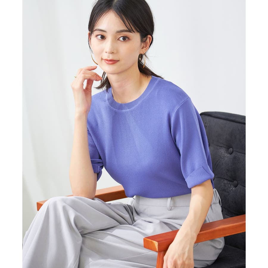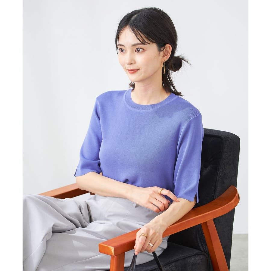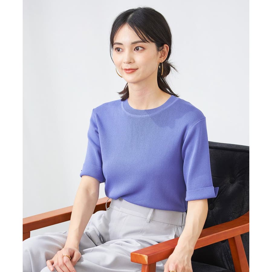 【接触冷感/UVカット/洗える】クルーネック美ラクるサマーニット
