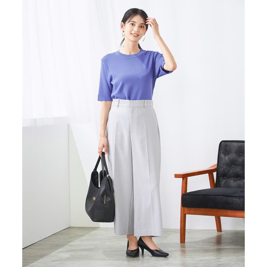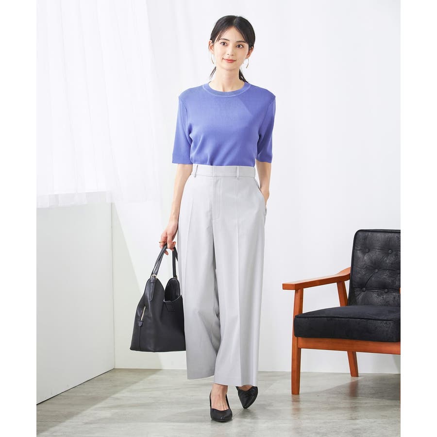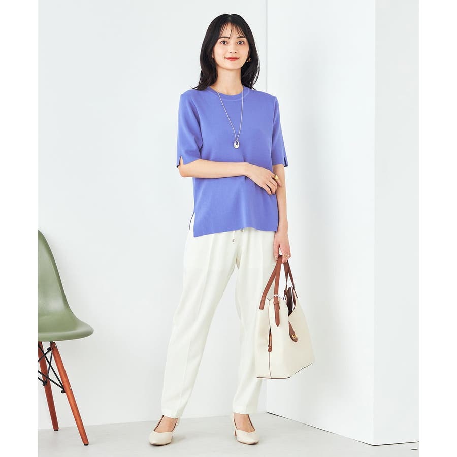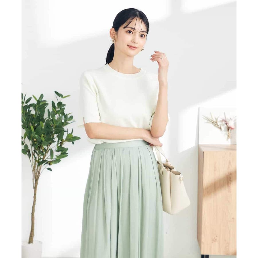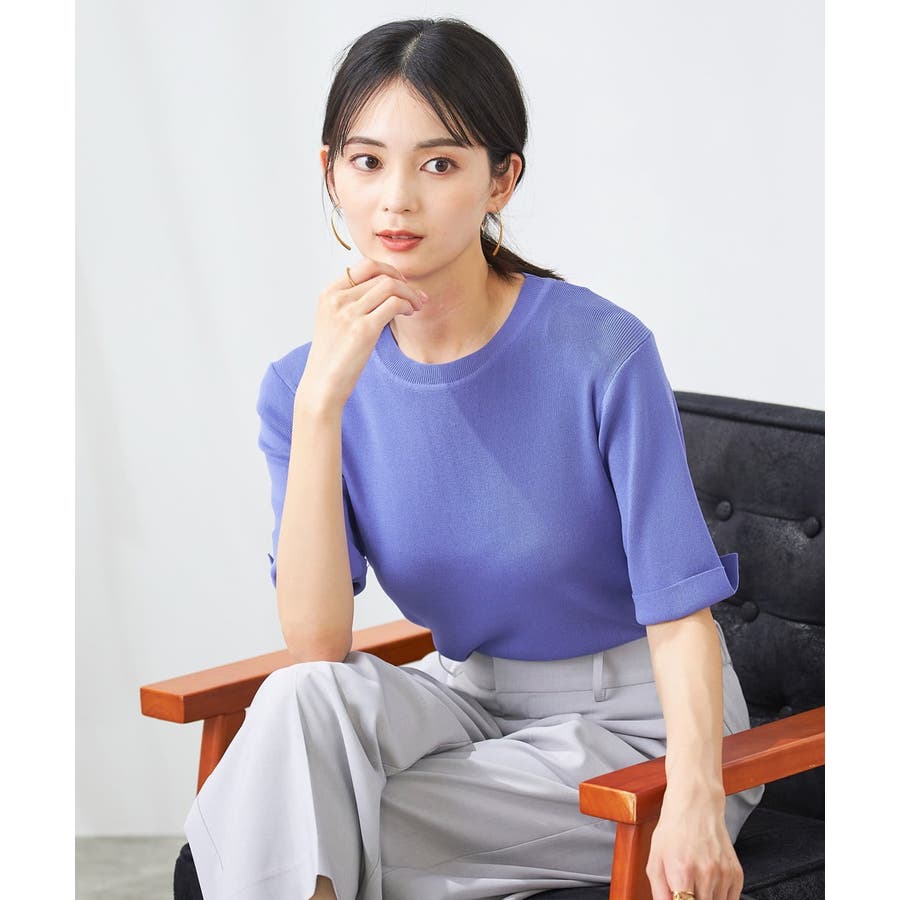 【接触冷感/UVカット/洗える】クルーネック美ラクるサマーニット