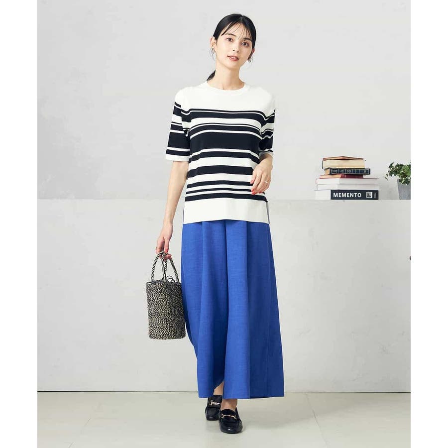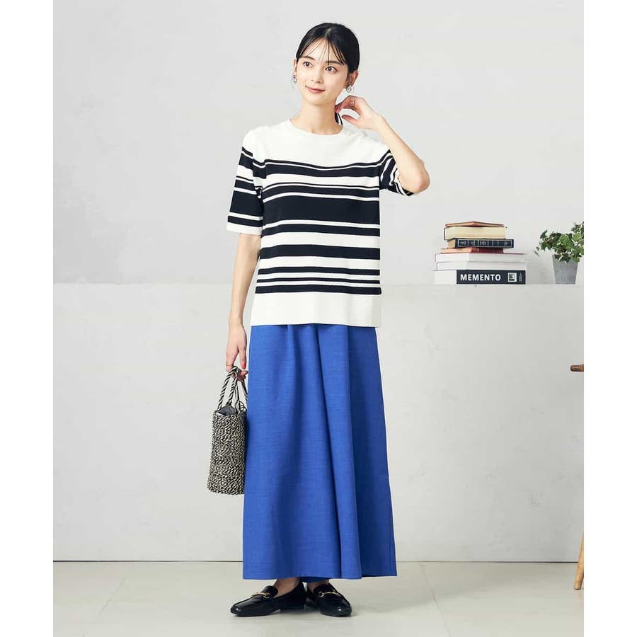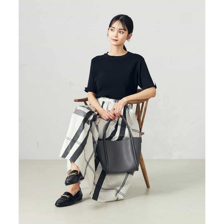 シンプルデザインを活かして柄スカートとも相性抜群。