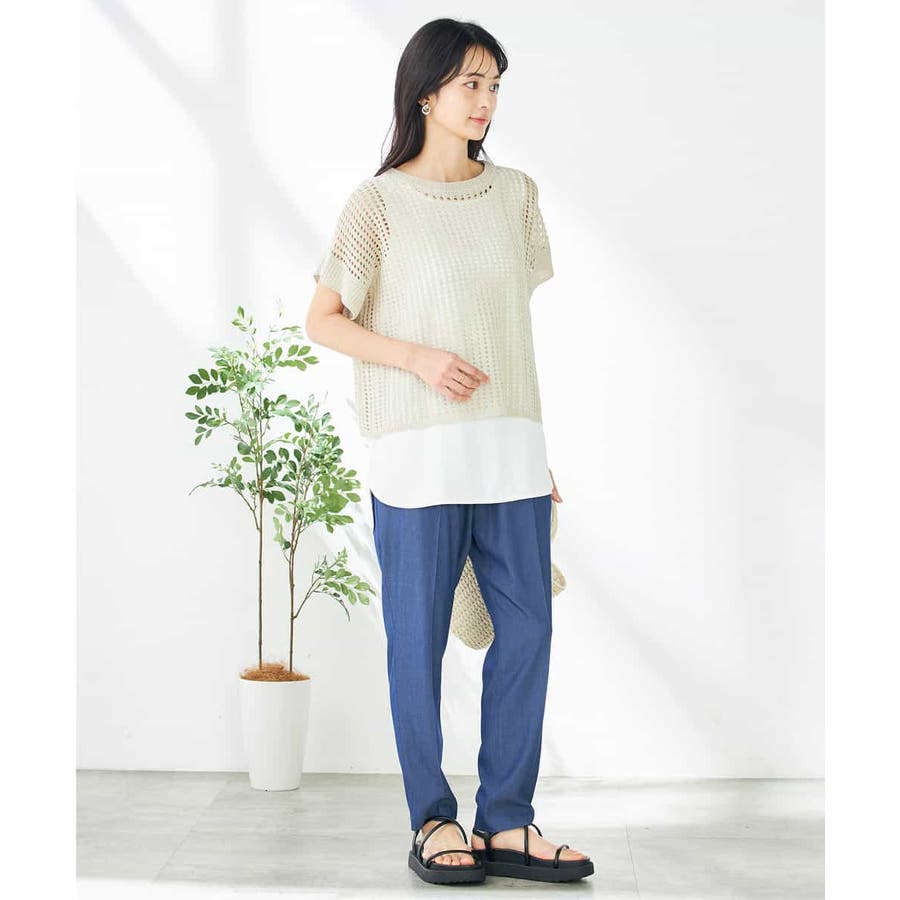 ベーシックなテーパードパンツやデニム、サテンスカートなど幅広いボトムと相性抜群。