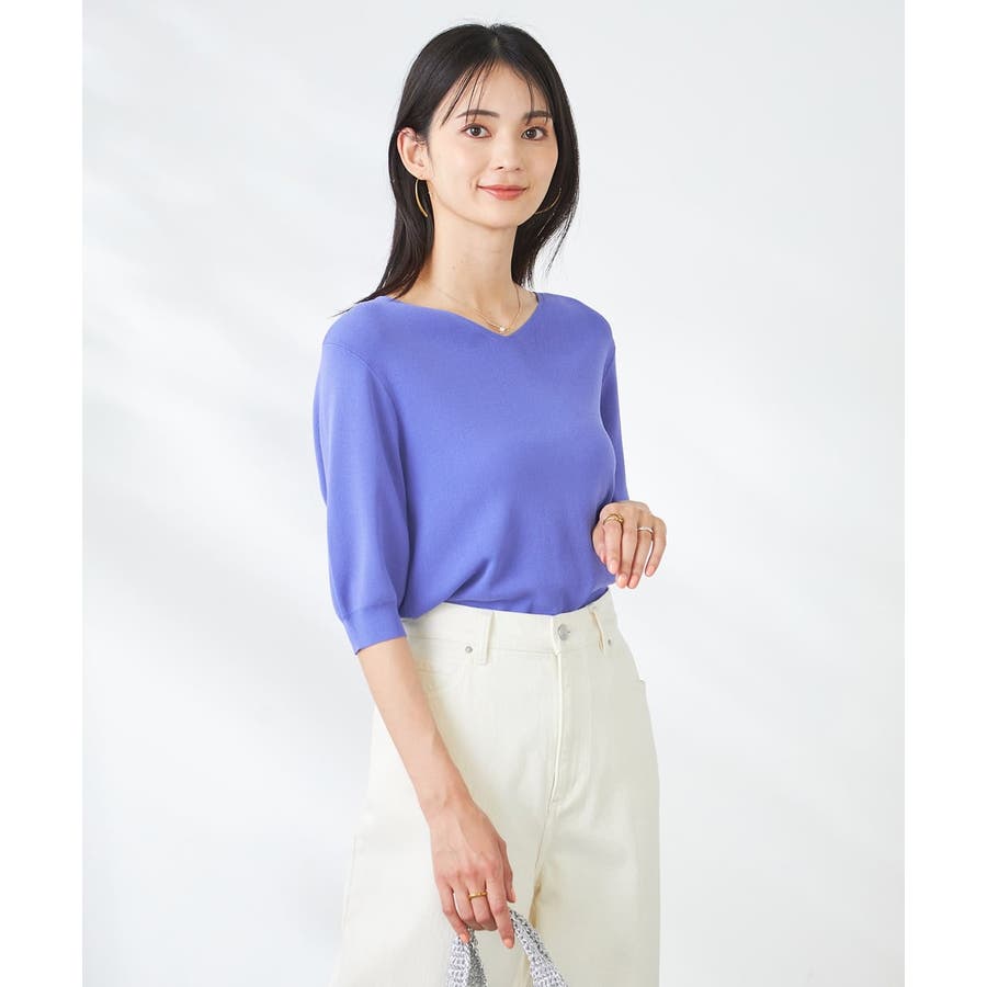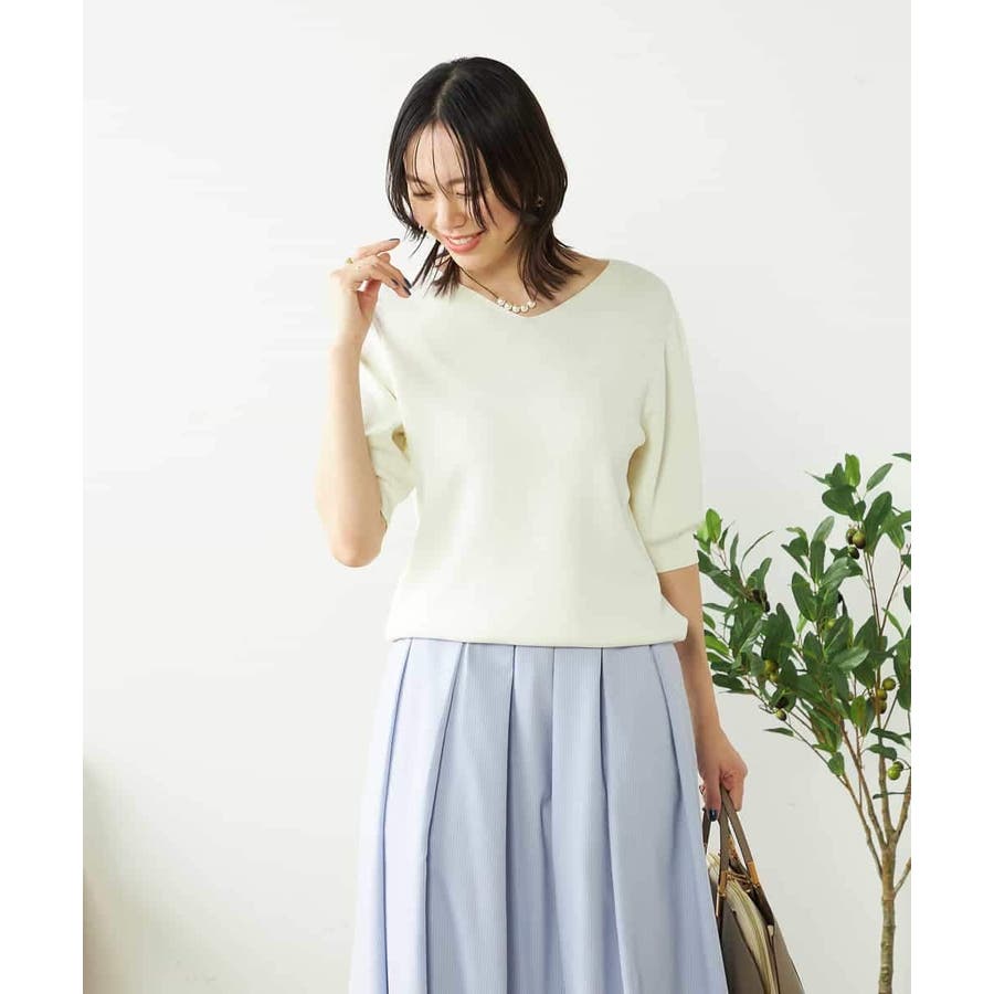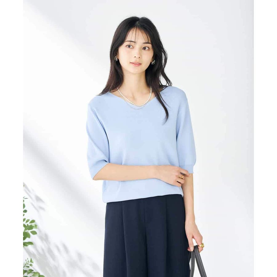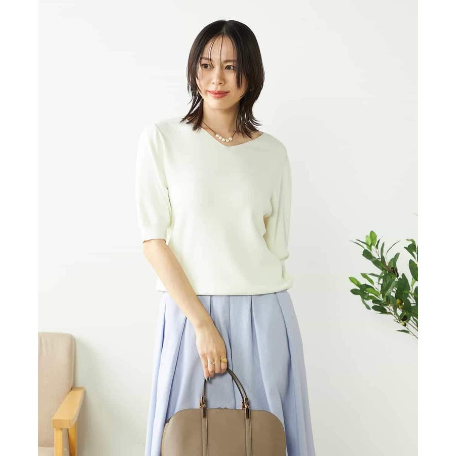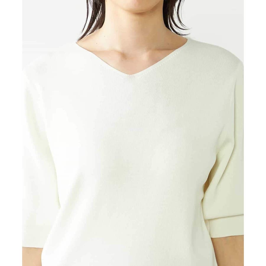 【接触冷感/UVカット/洗える】Vネックハーフスリーブ美ラクるサマーニット