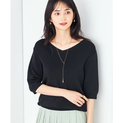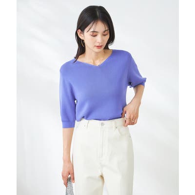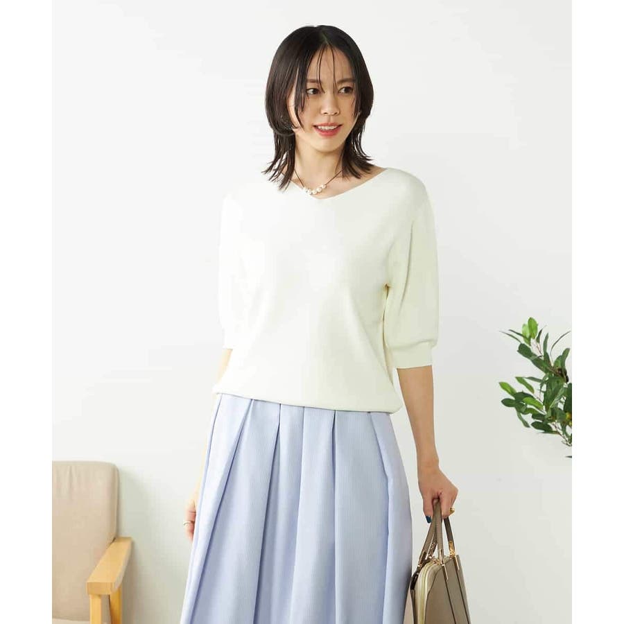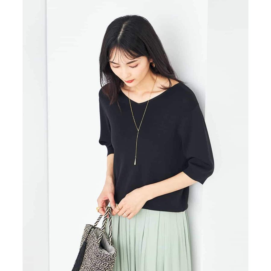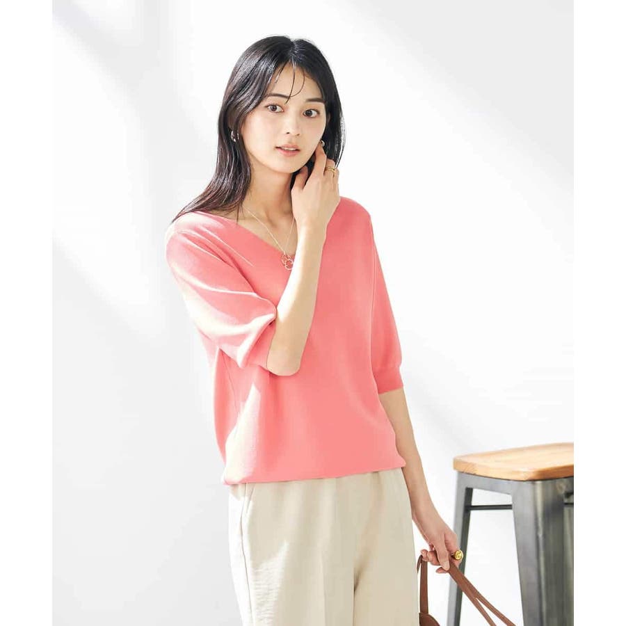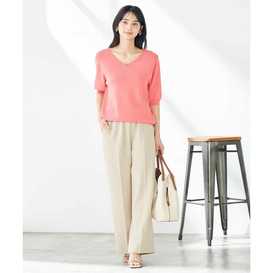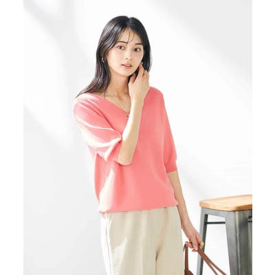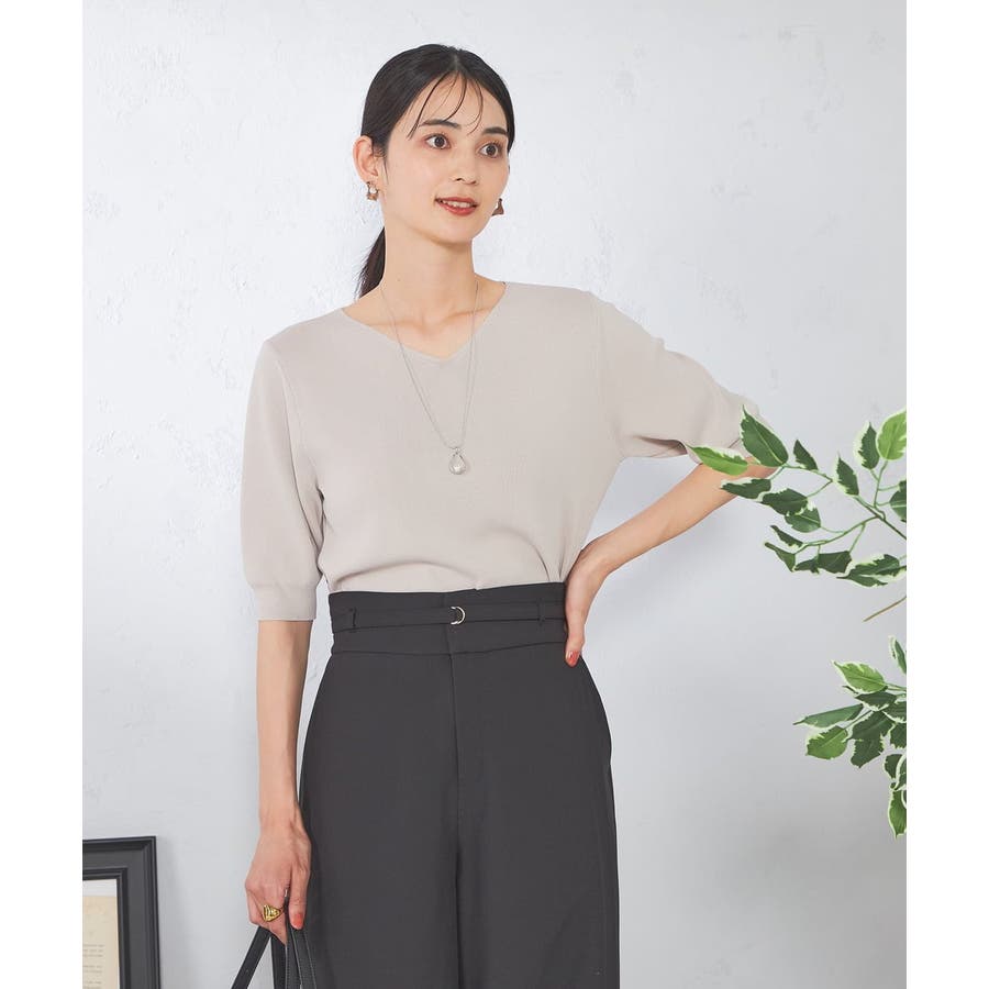 【接触冷感/UVカット/洗える】Vネックハーフスリーブ美ラクるサマーニット