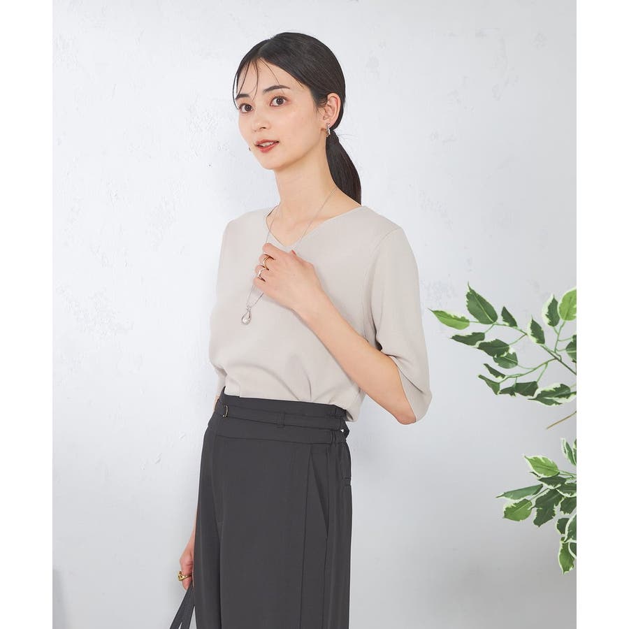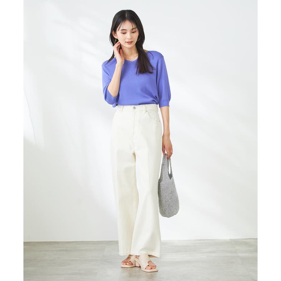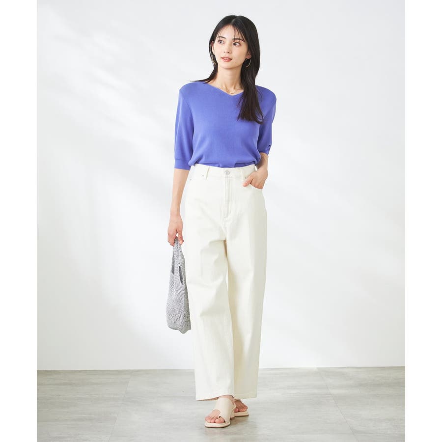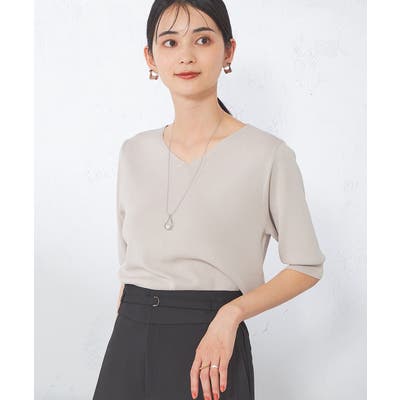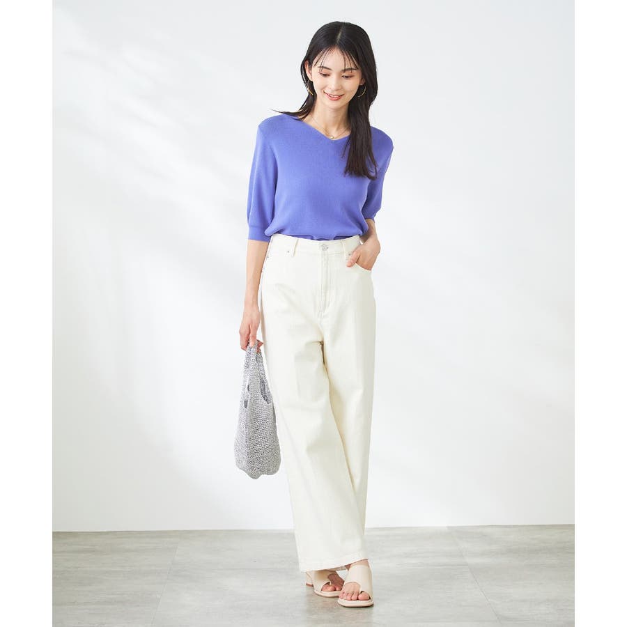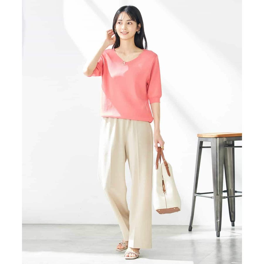 【接触冷感/UVカット/洗える】Vネックハーフスリーブ美ラクるサマーニット