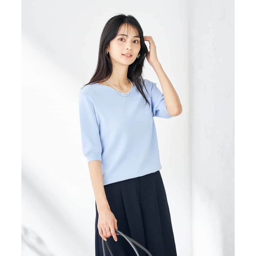 ジャケットのインナーにも着やすく、通勤時も着回せるのがうれしいポイント。
