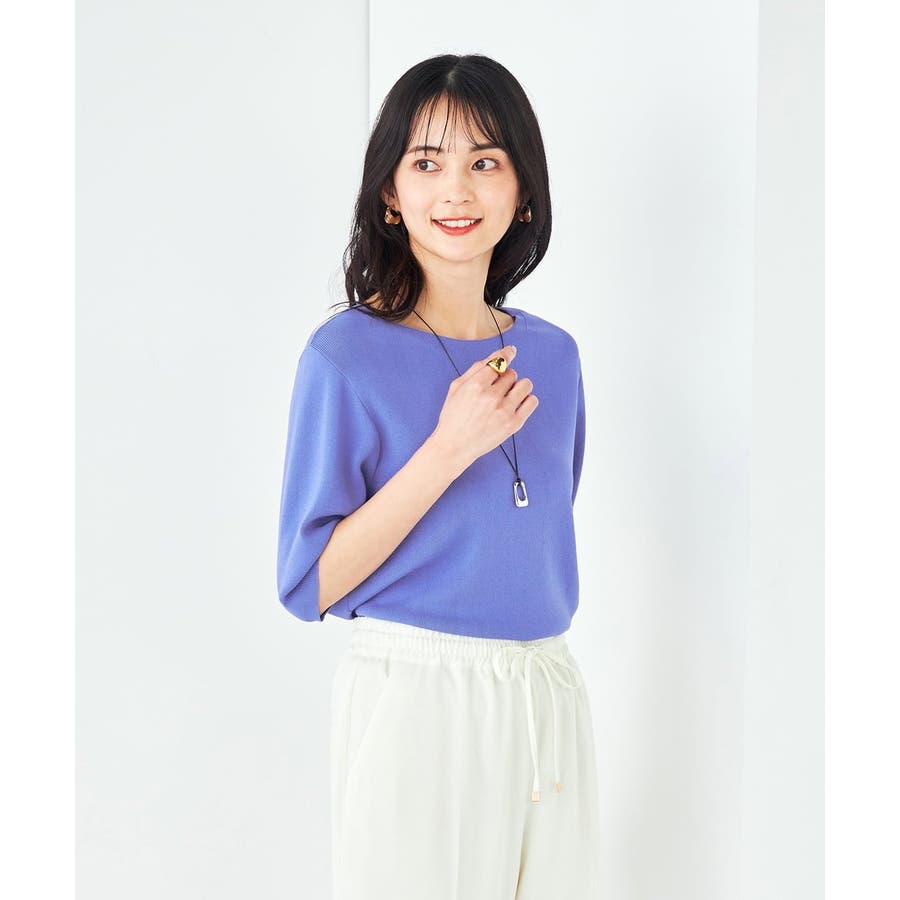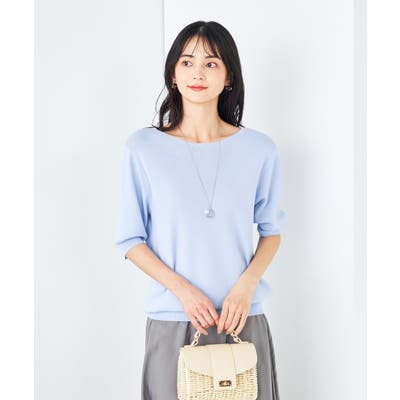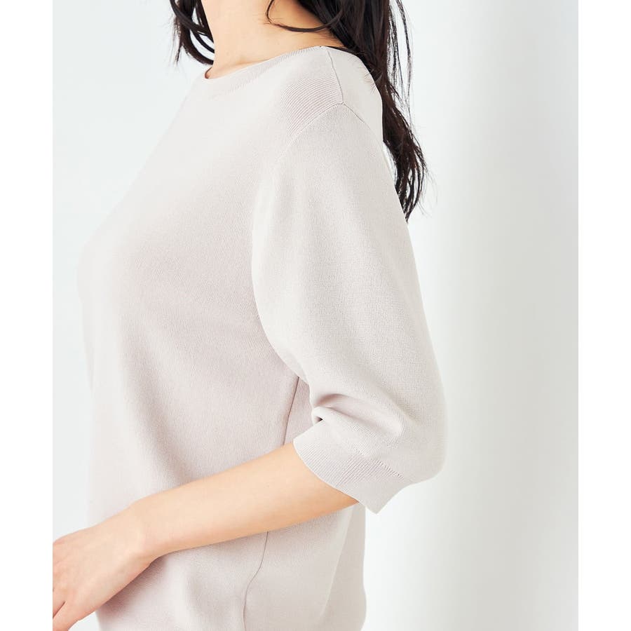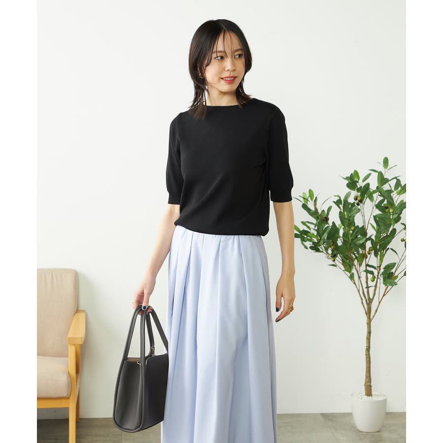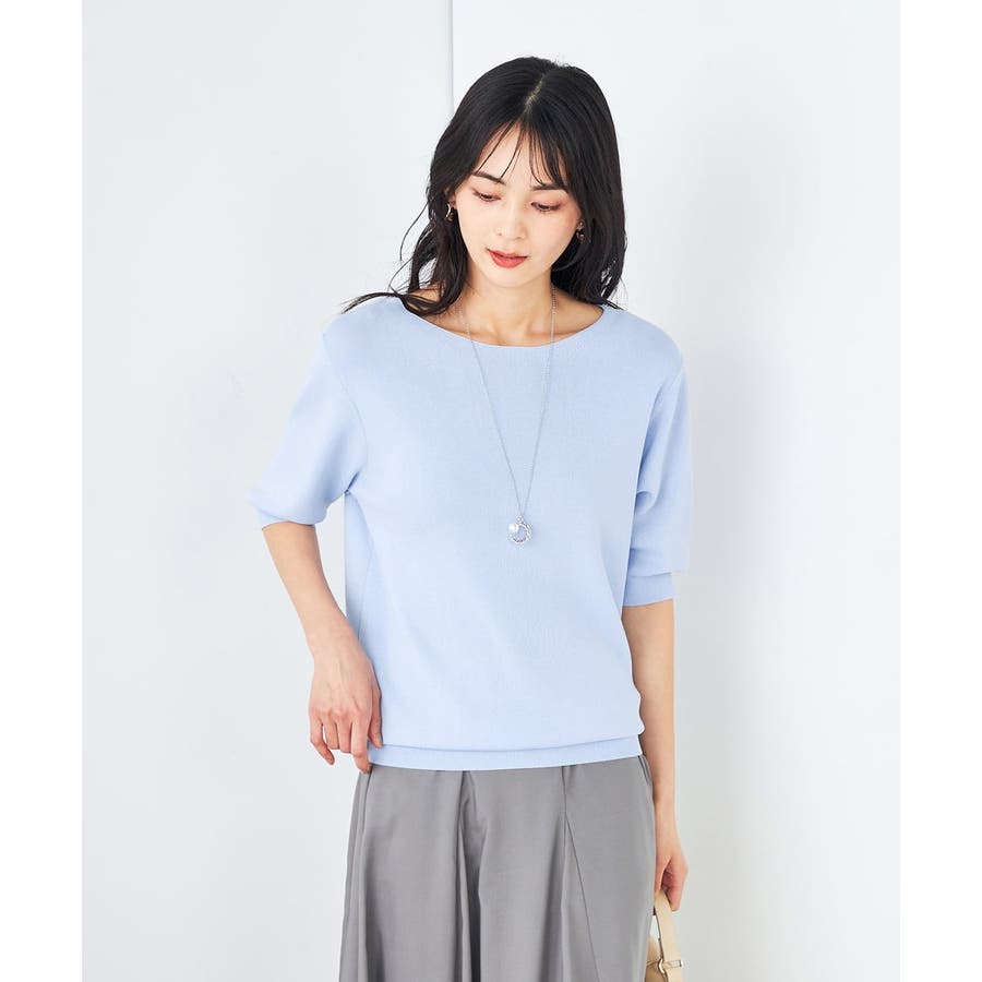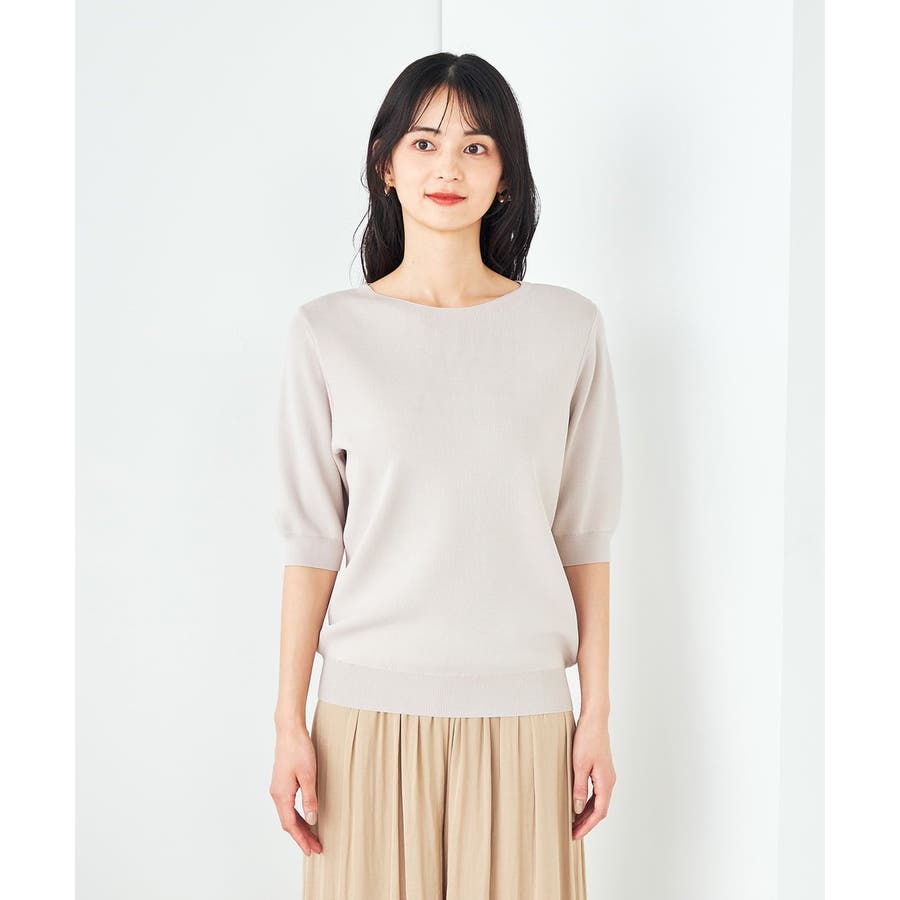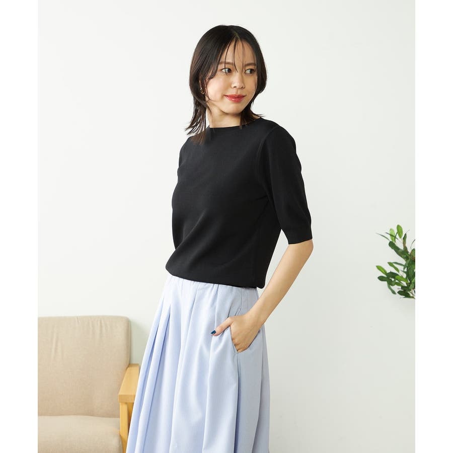 【接触冷感/UVカット/洗える】ボートネックハーフスリーブ美ラクるサマーニット