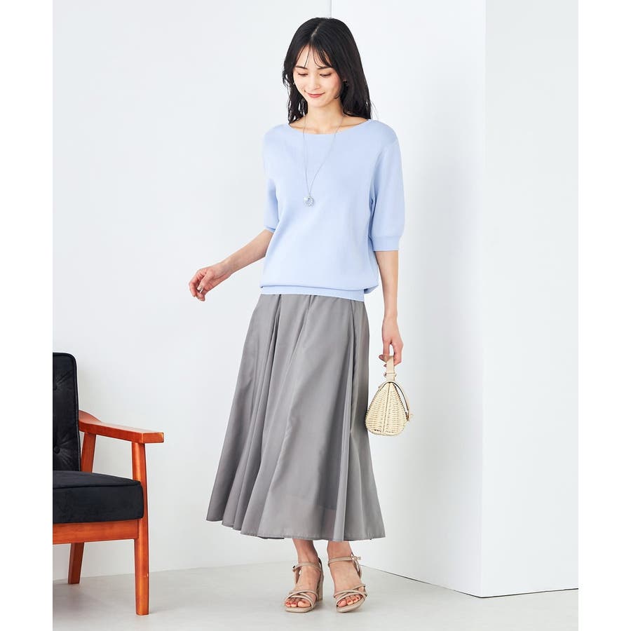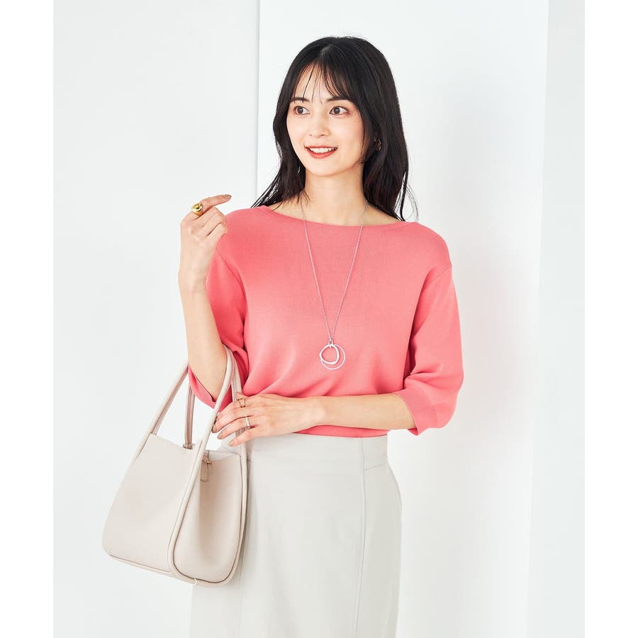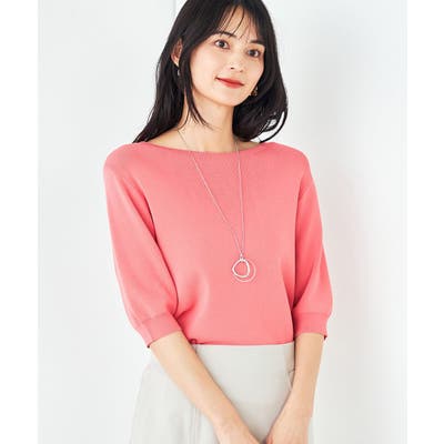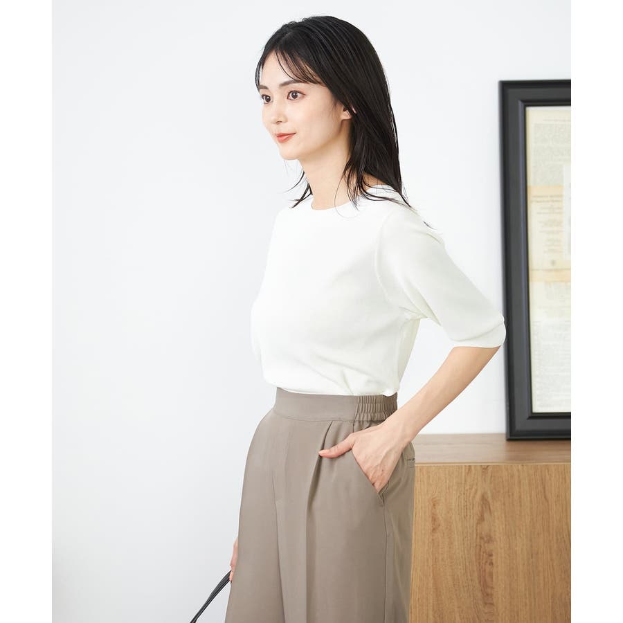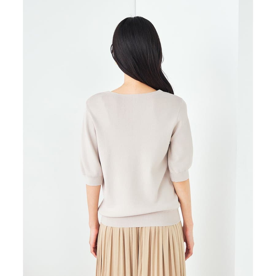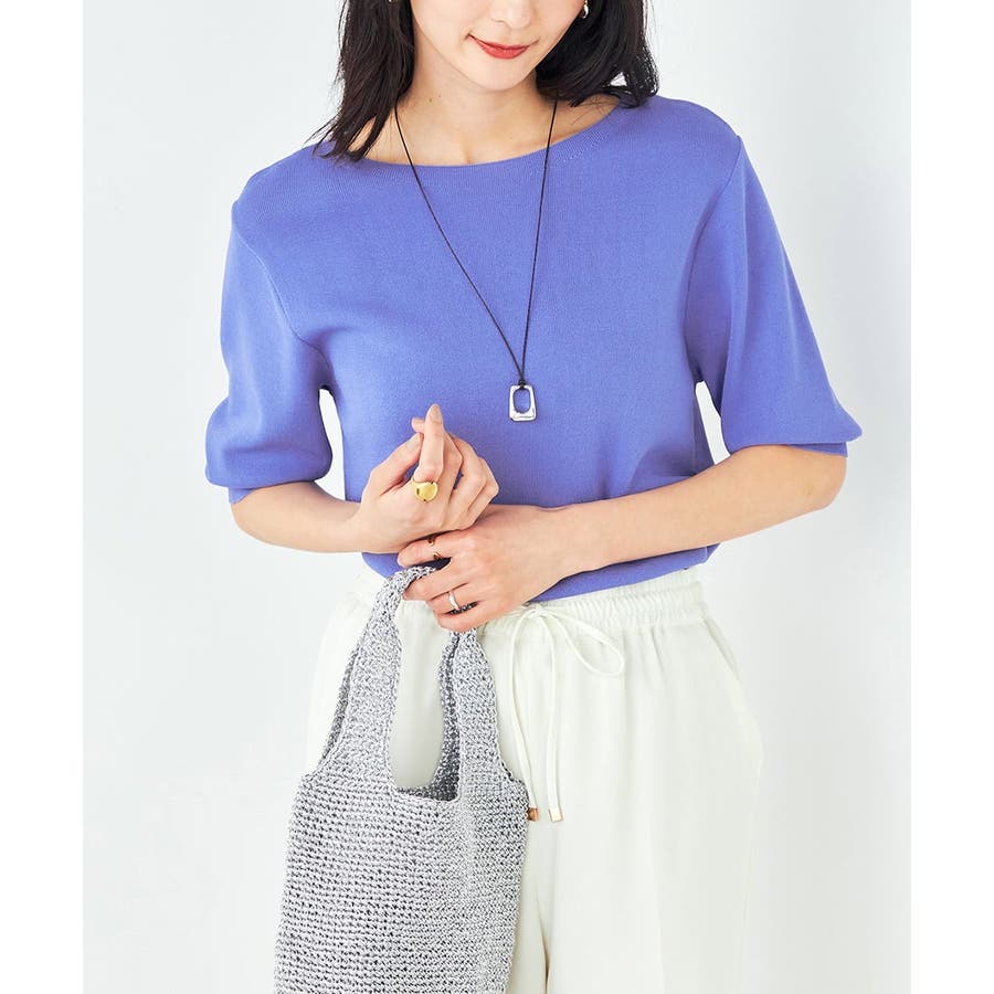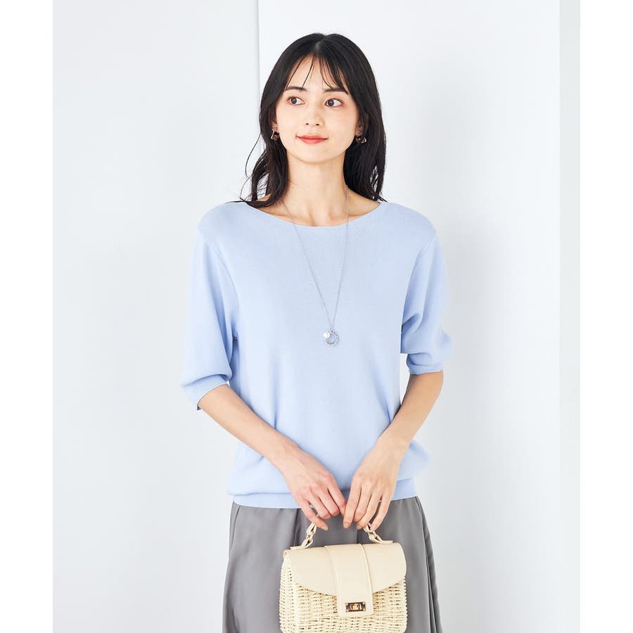 【接触冷感/UVカット/洗える】ボートネックハーフスリーブ美ラクるサマーニット