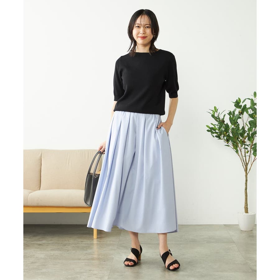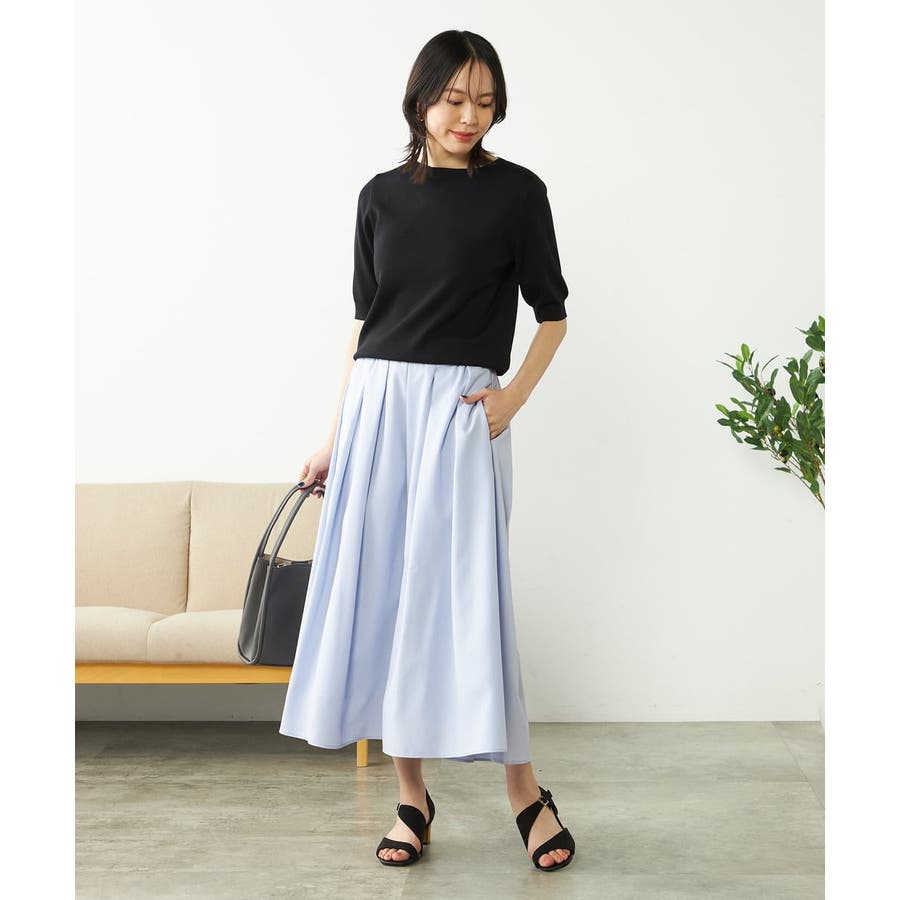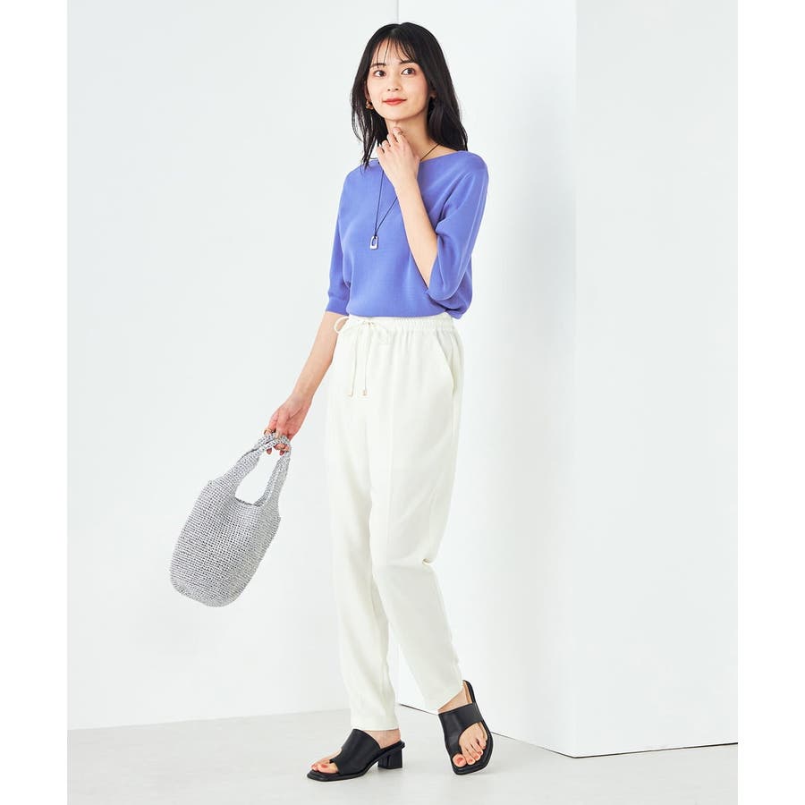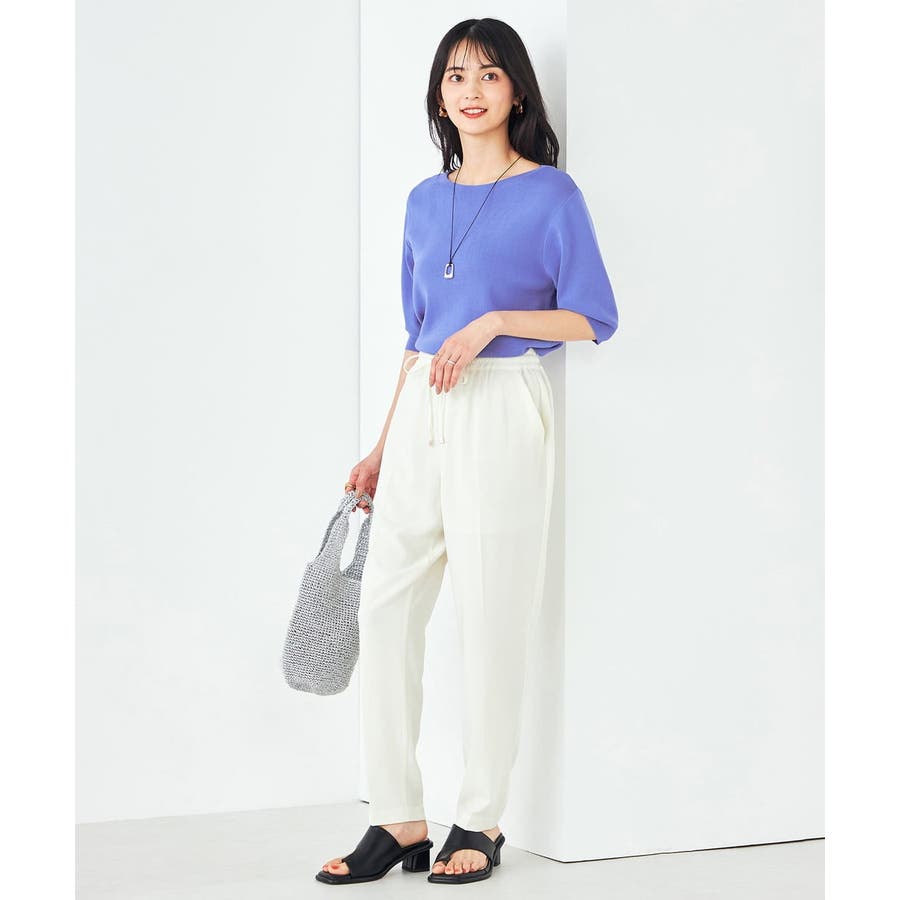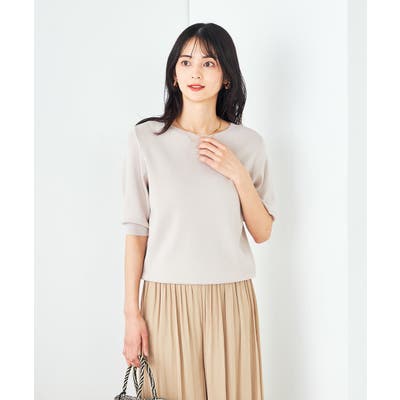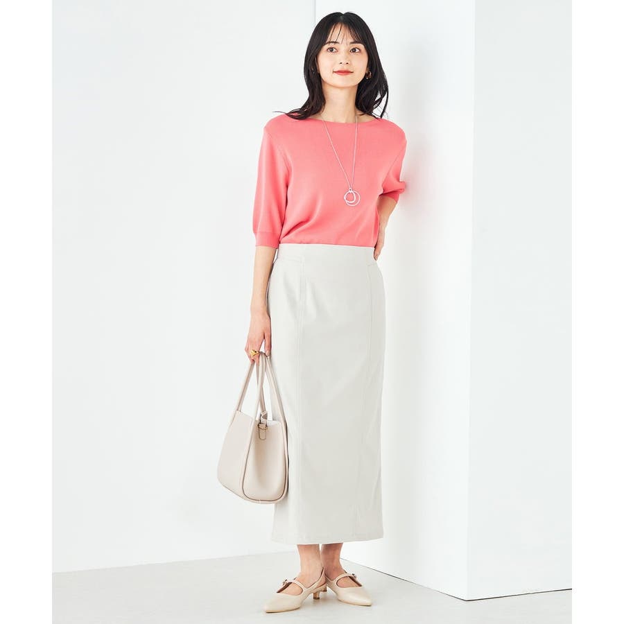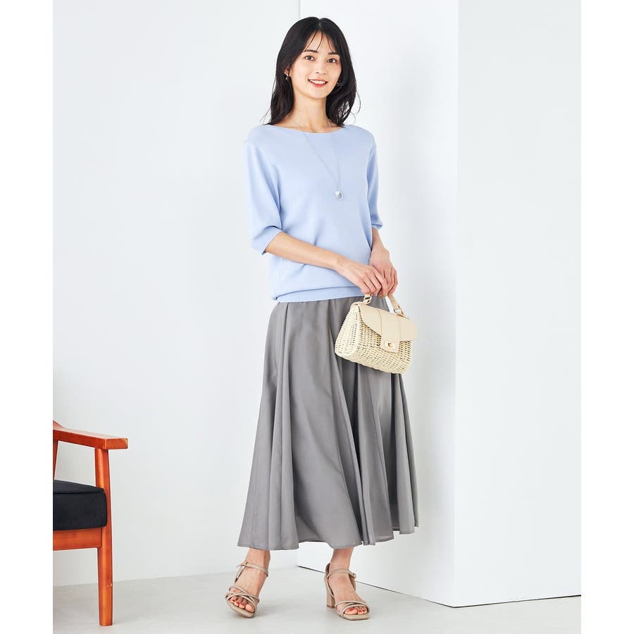 【接触冷感/UVカット/洗える】ボートネックハーフスリーブ美ラクるサマーニット