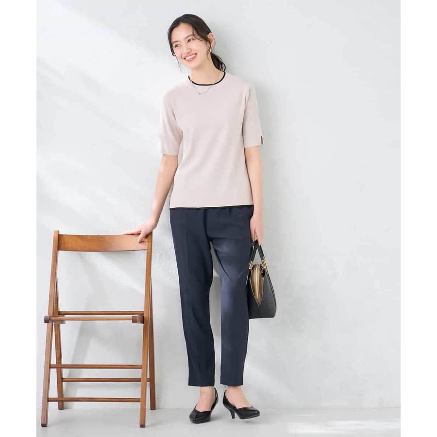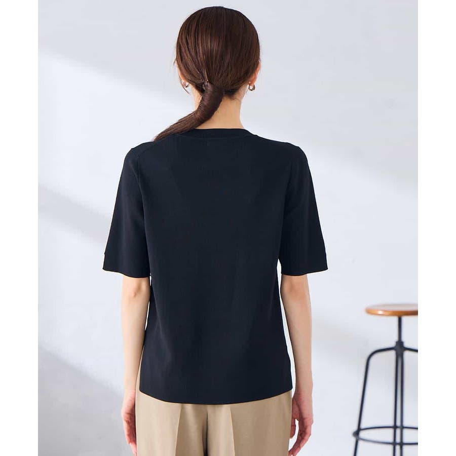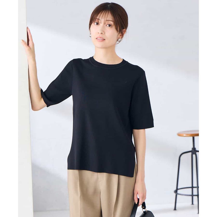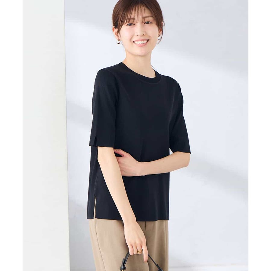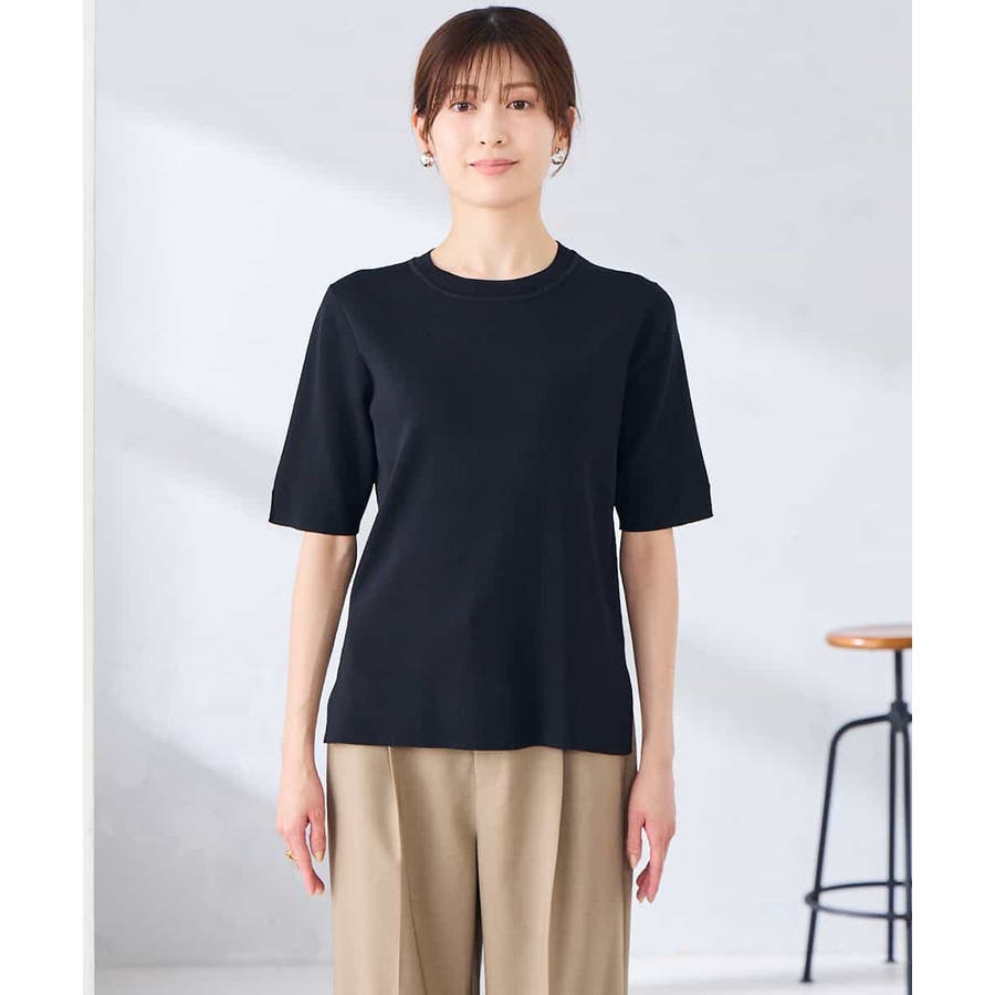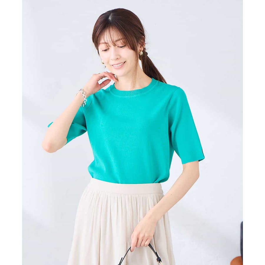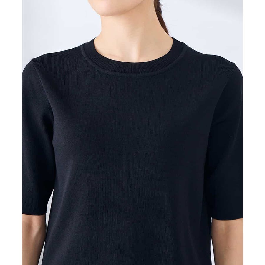 ハーフスリーブクルーネックサマーニット【洗える/接触冷感/UVカット】