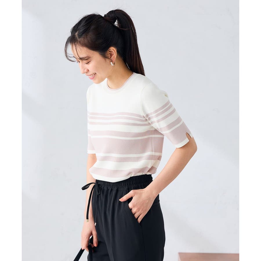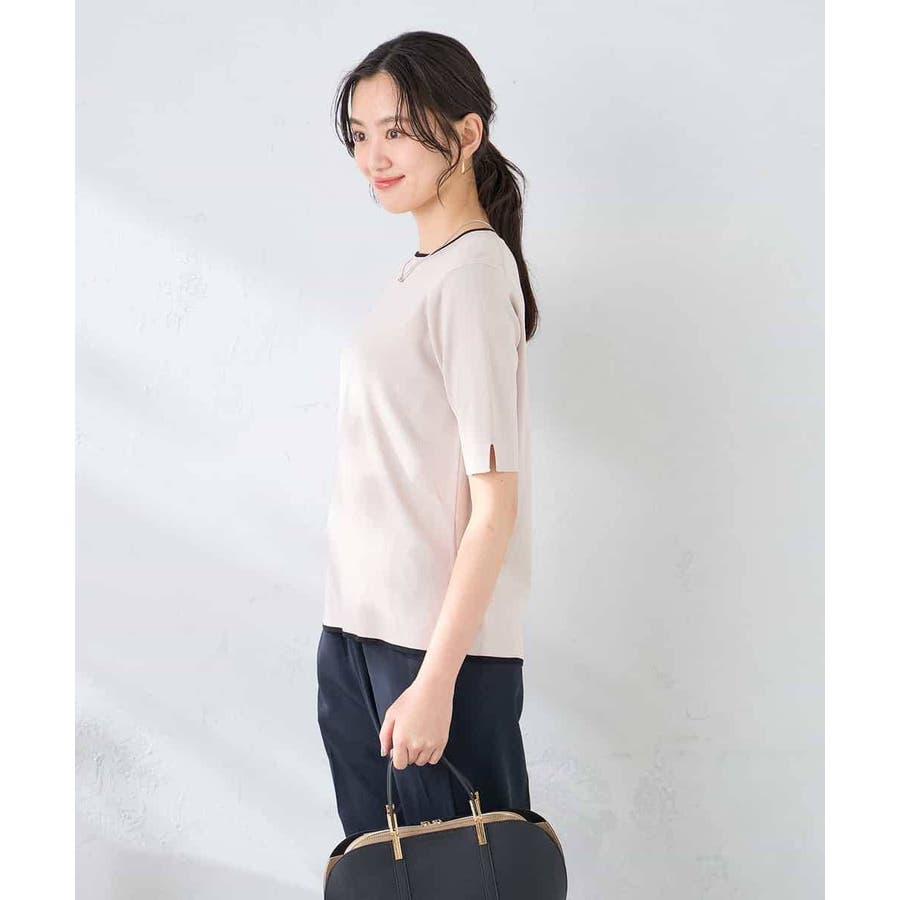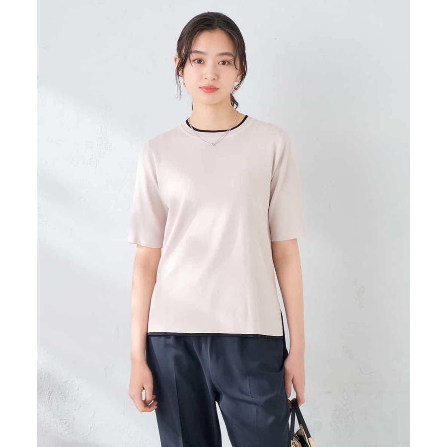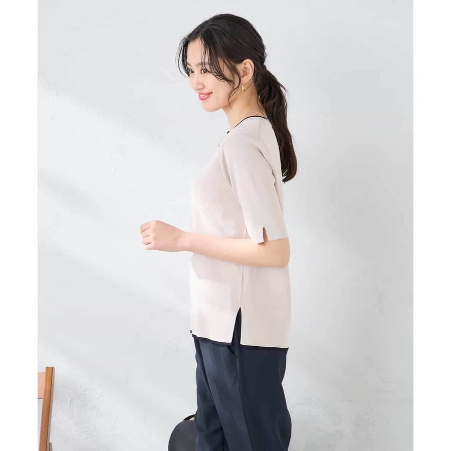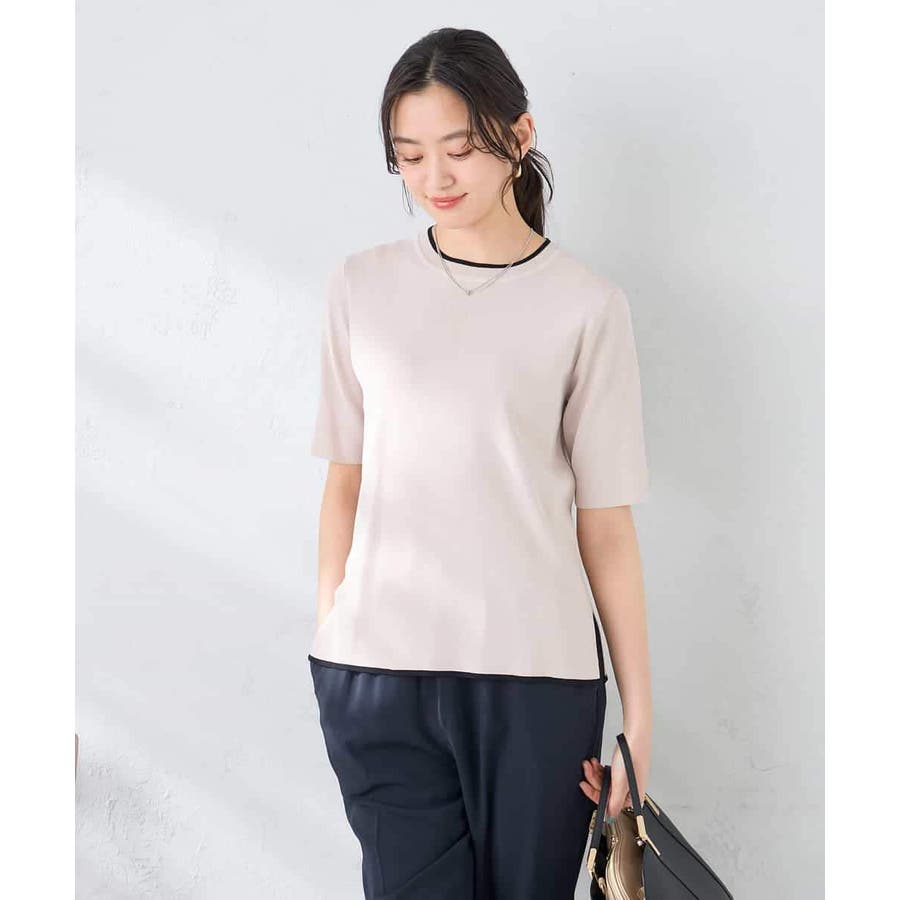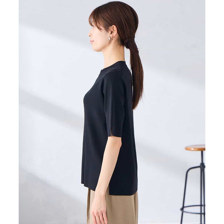 ハーフスリーブクルーネックサマーニット【洗える/接触冷感/UVカット】
