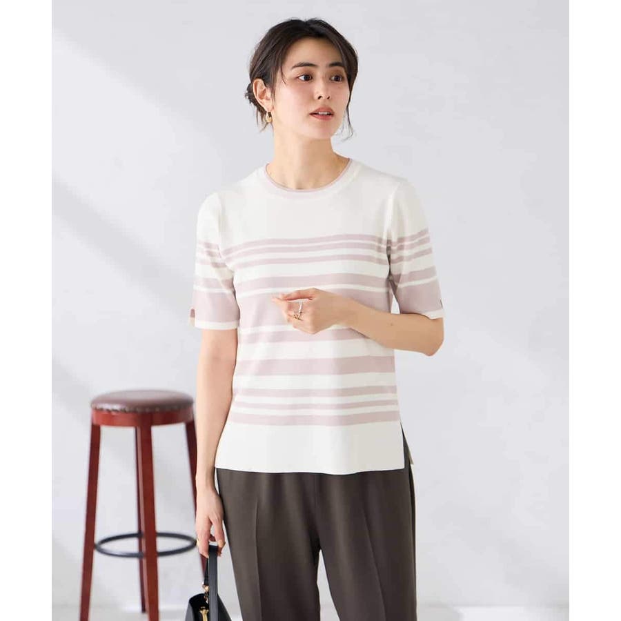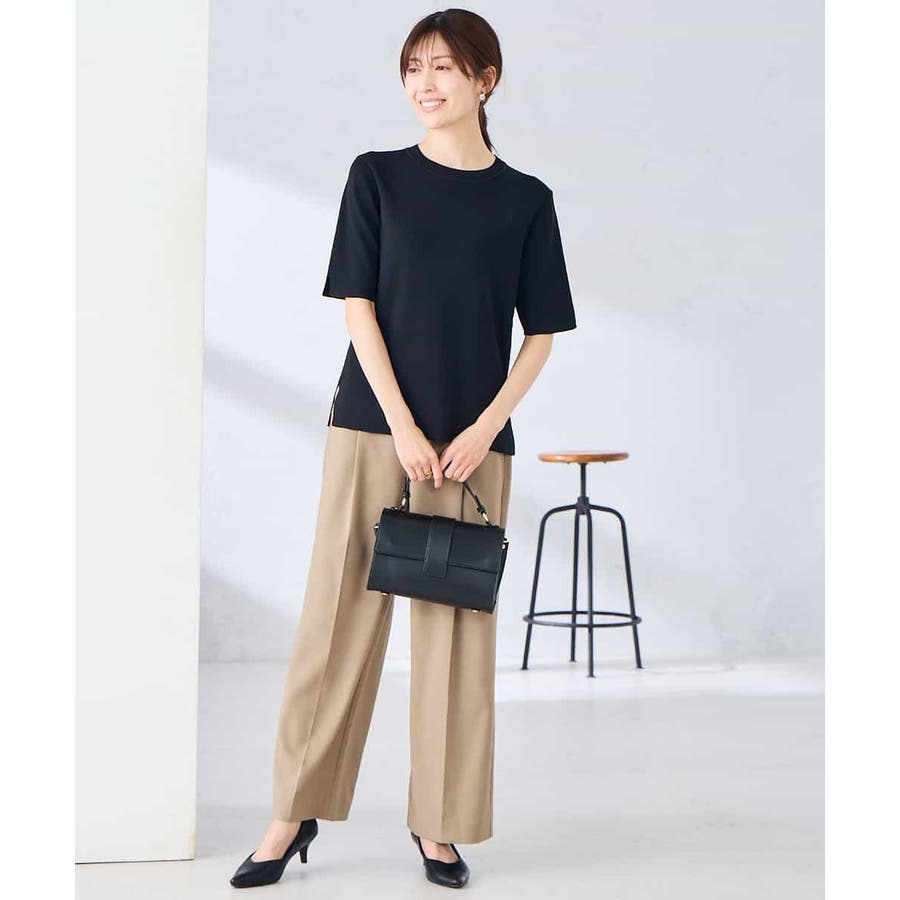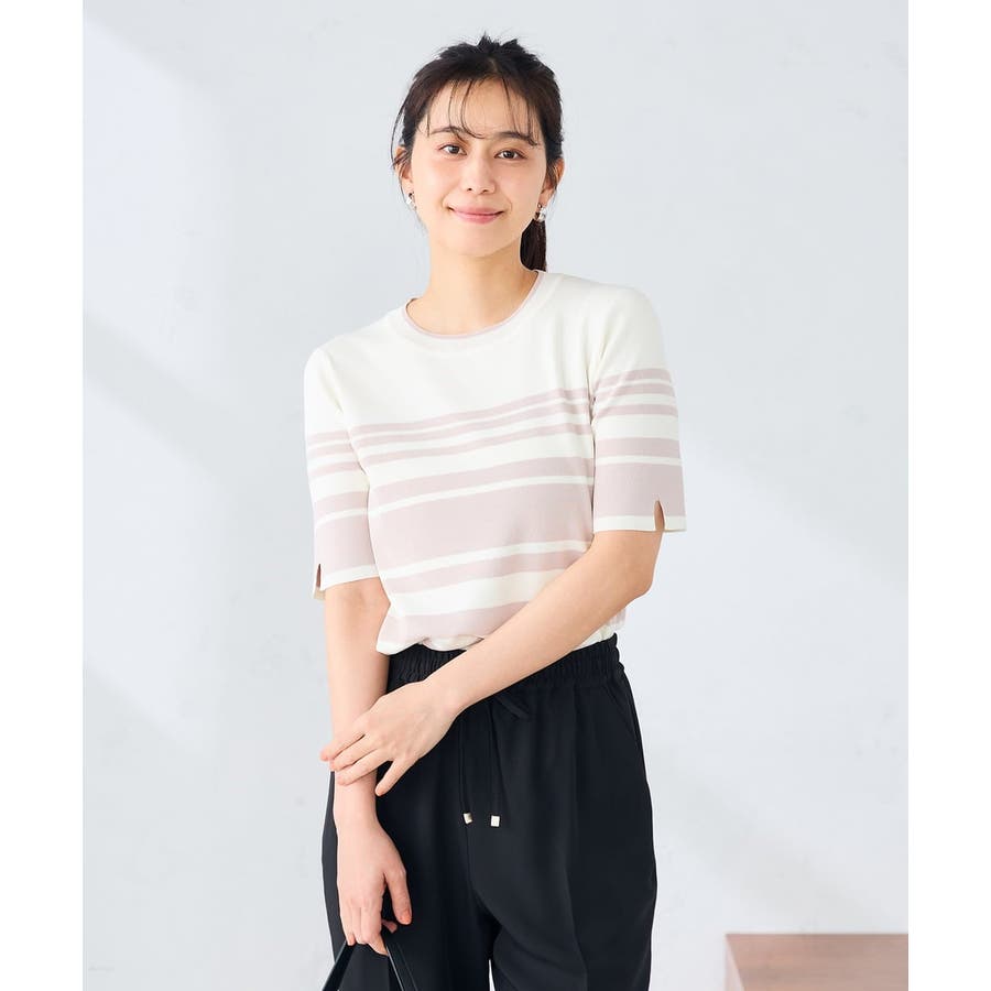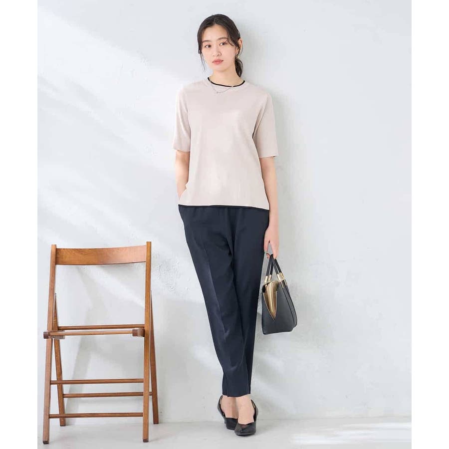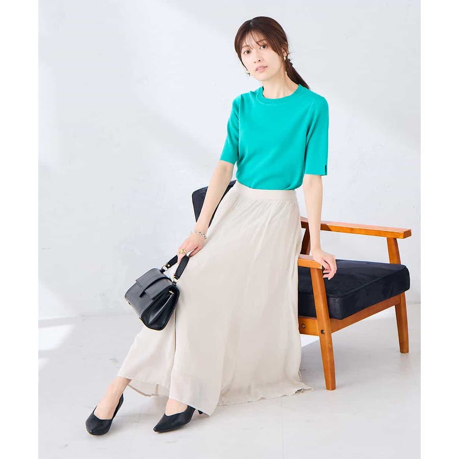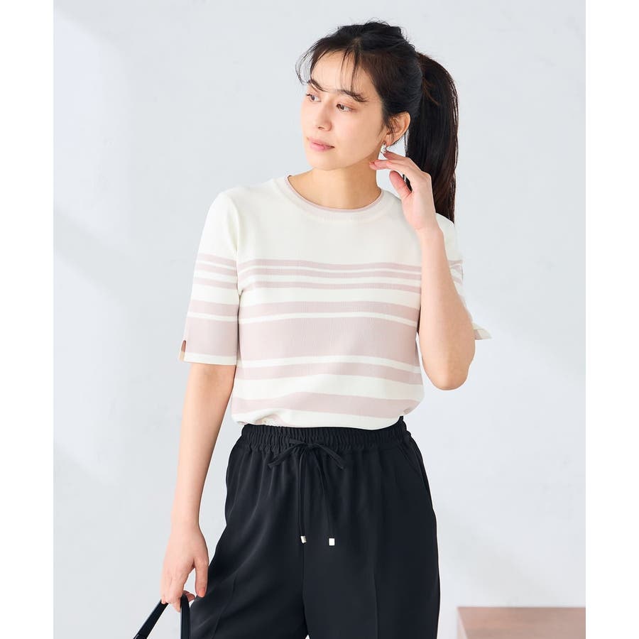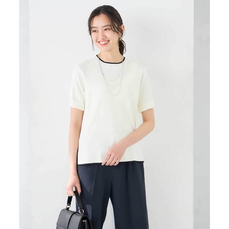ハーフスリーブクルーネックサマーニット【洗える/接触冷感/UVカット】