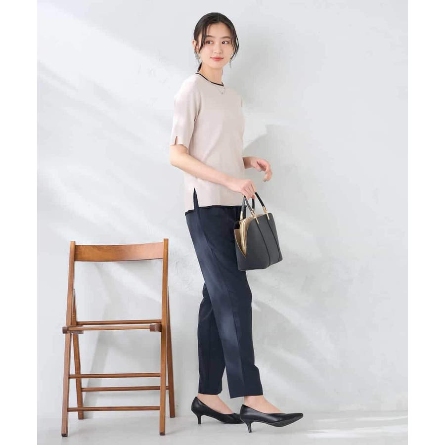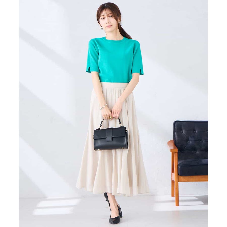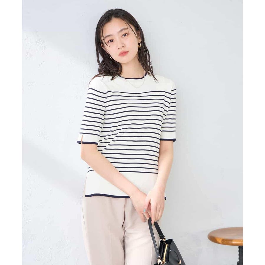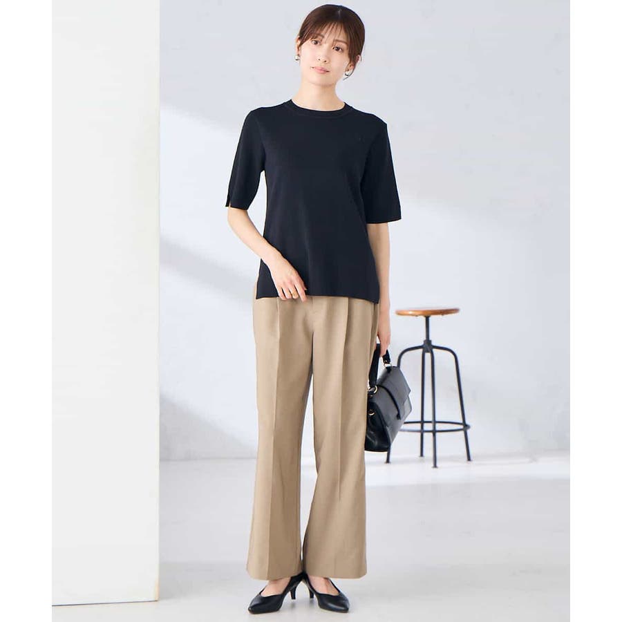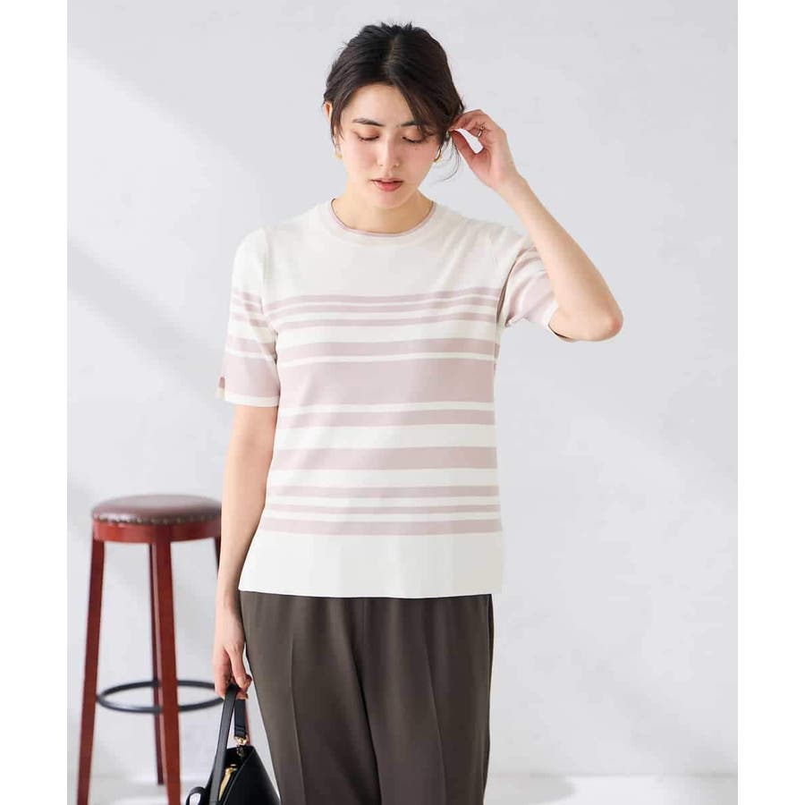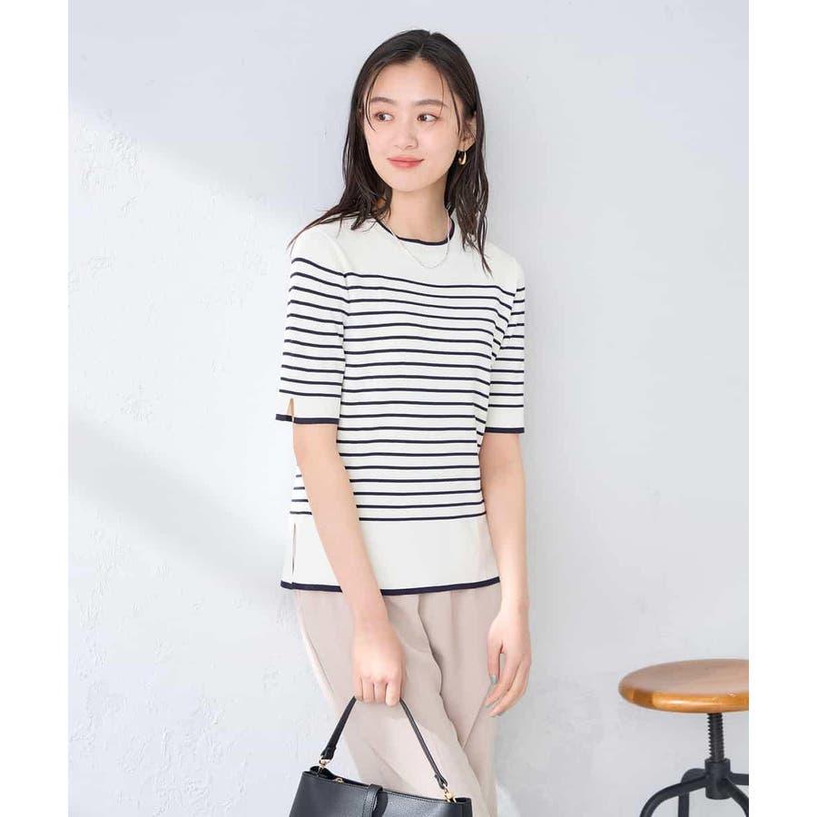 ハーフスリーブクルーネックサマーニット【洗える/接触冷感/UVカット】
