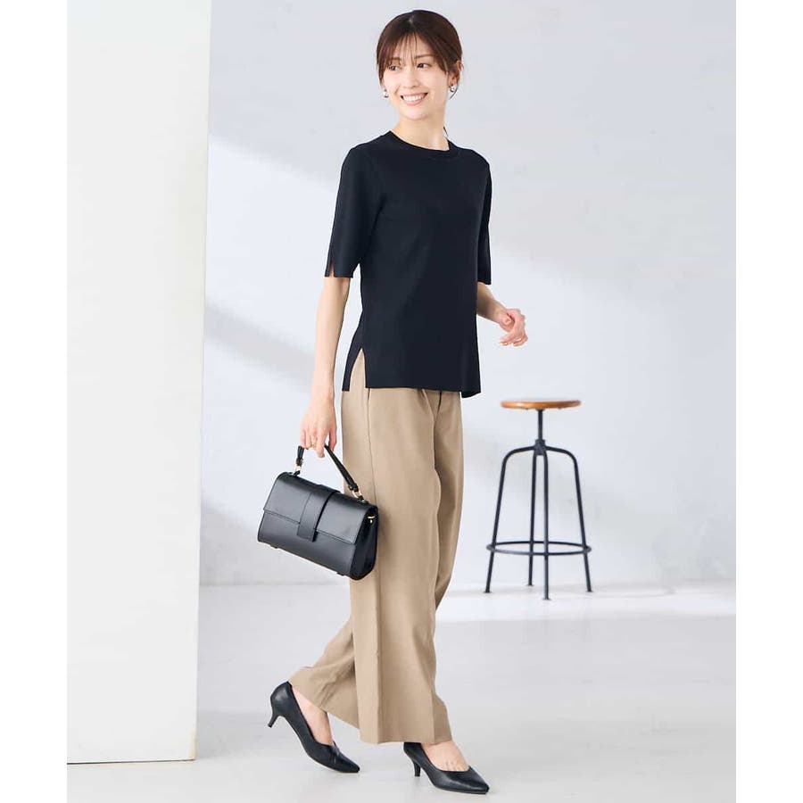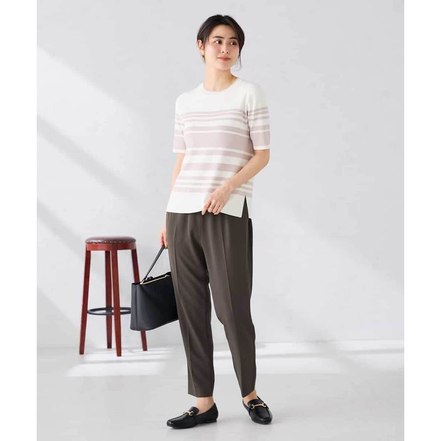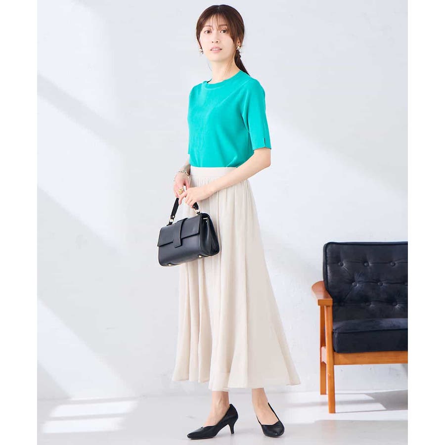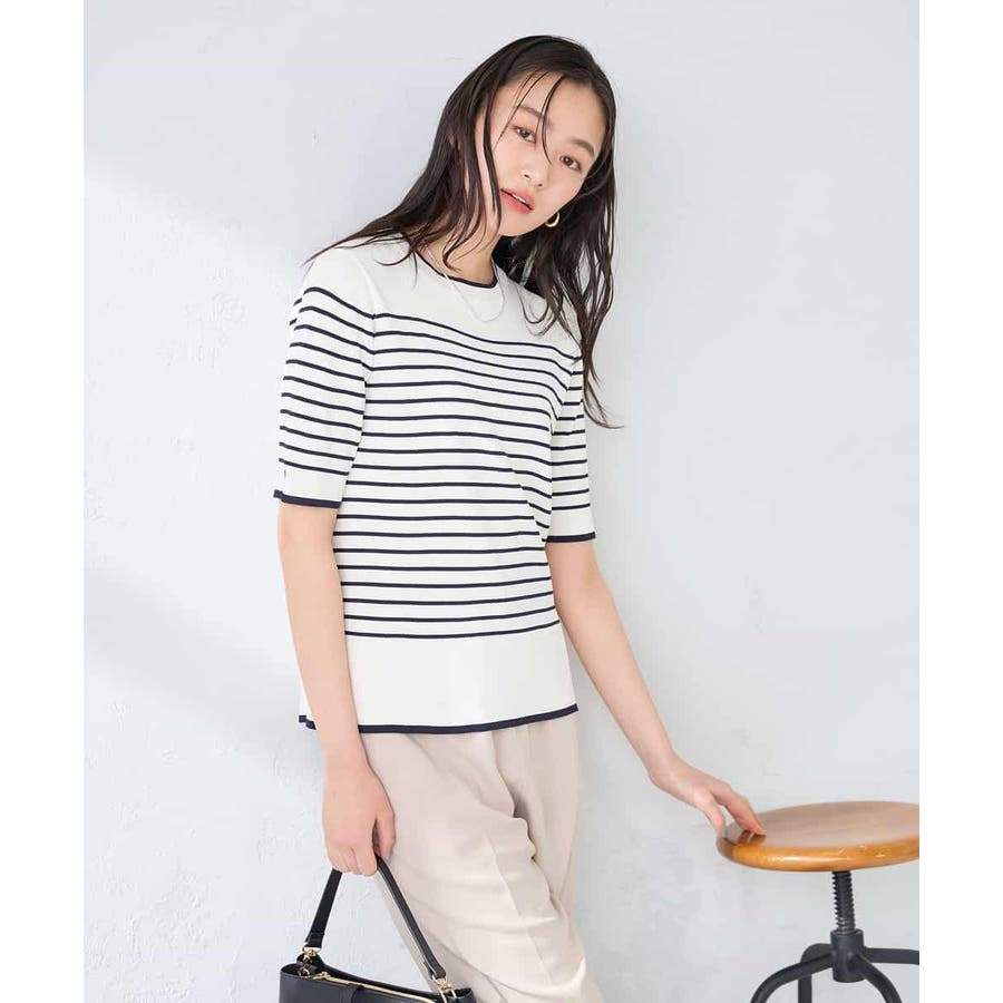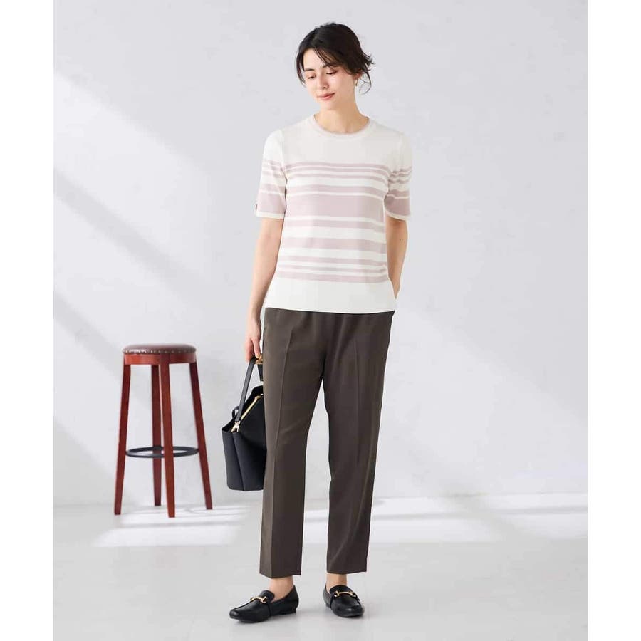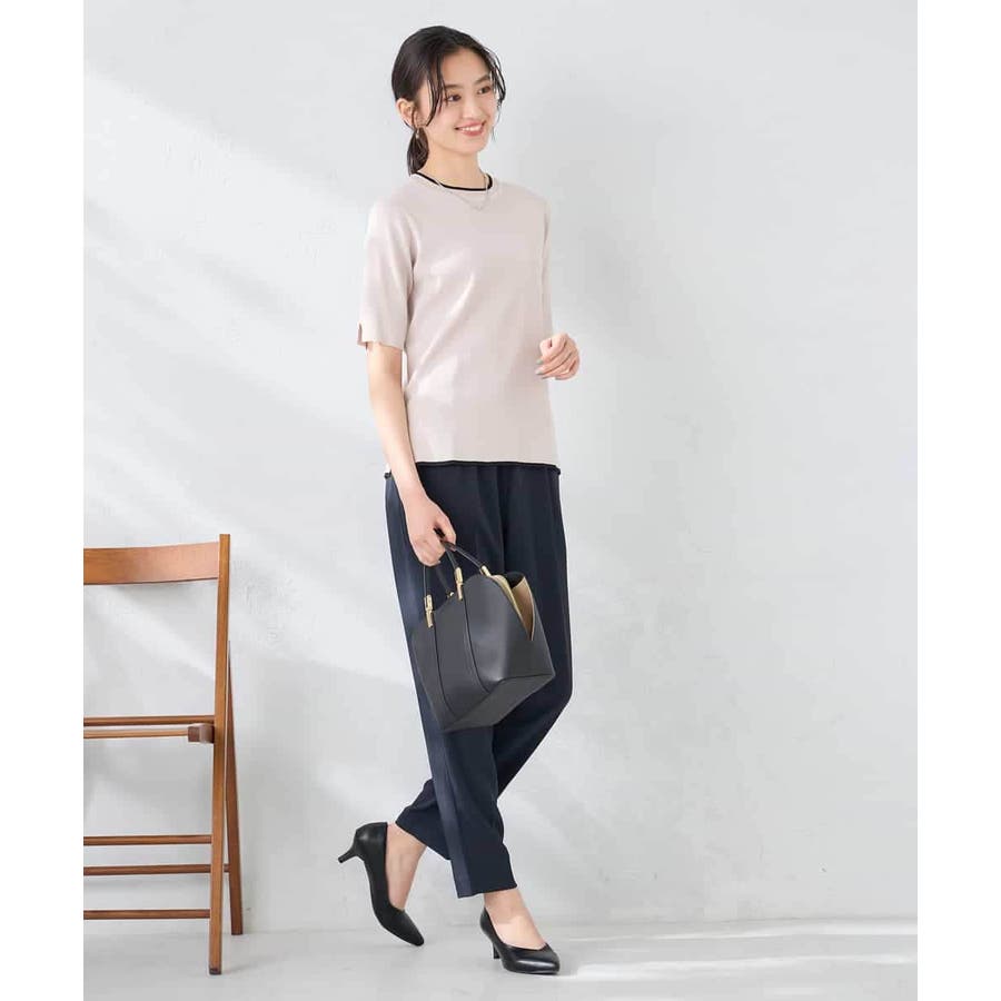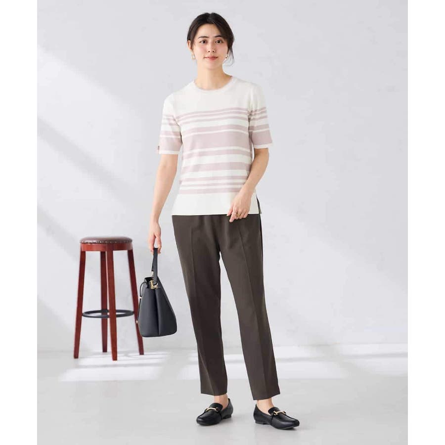 ハーフスリーブクルーネックサマーニット【洗える/接触冷感/UVカット】