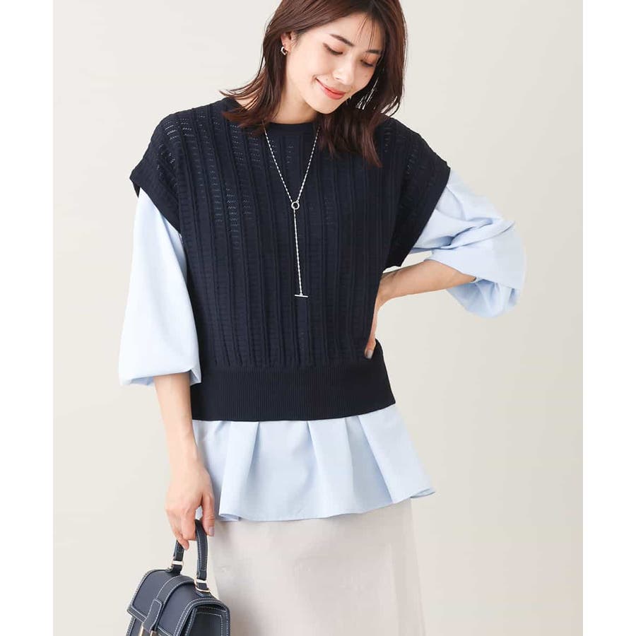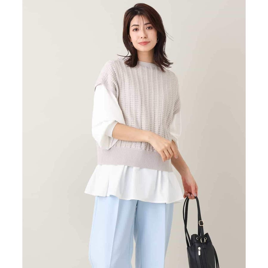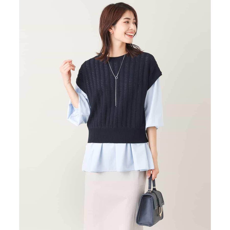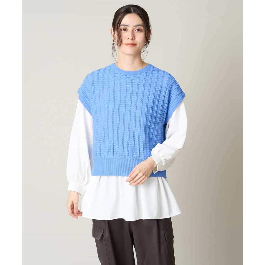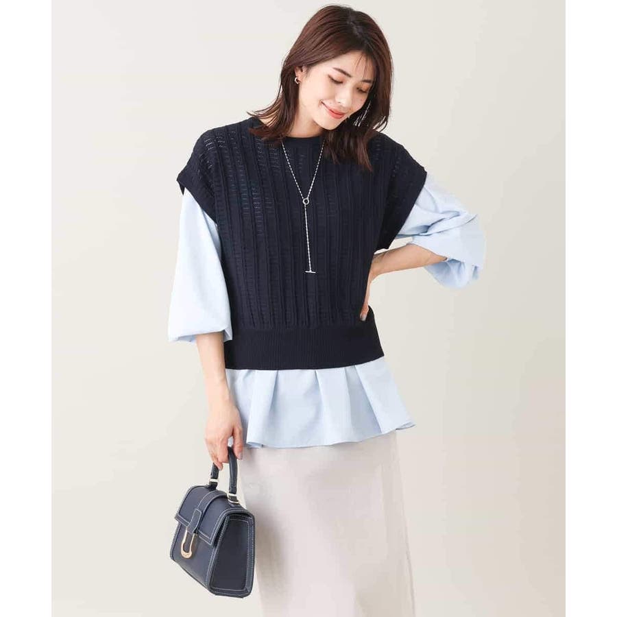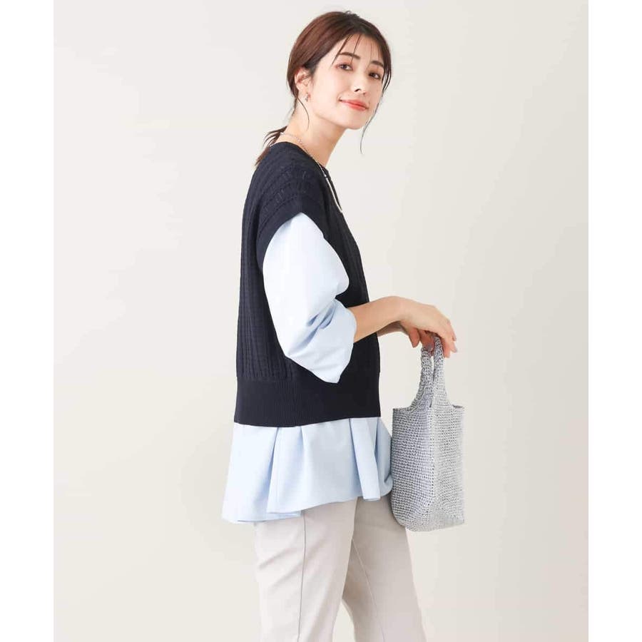 【2SET/洗える】ニットベスト+ペプラムブラウス